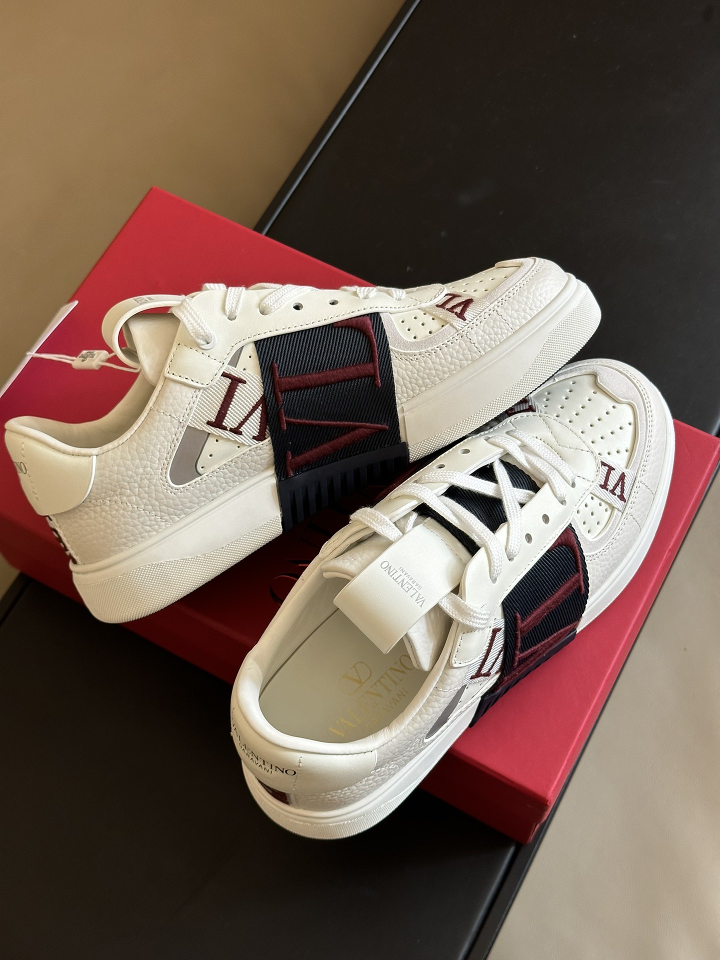 This shoes is AAAAA 1:1 quality (superb). Materials used are identical to the original ones. Valentino trademark marks are indistinguishable to the authentic. Photos take by actual shoes, what you receive will be 100% same with our photos.