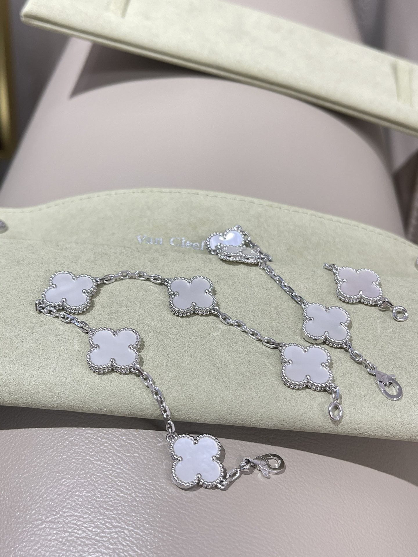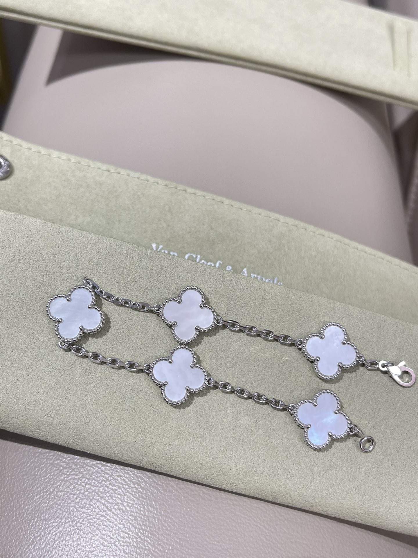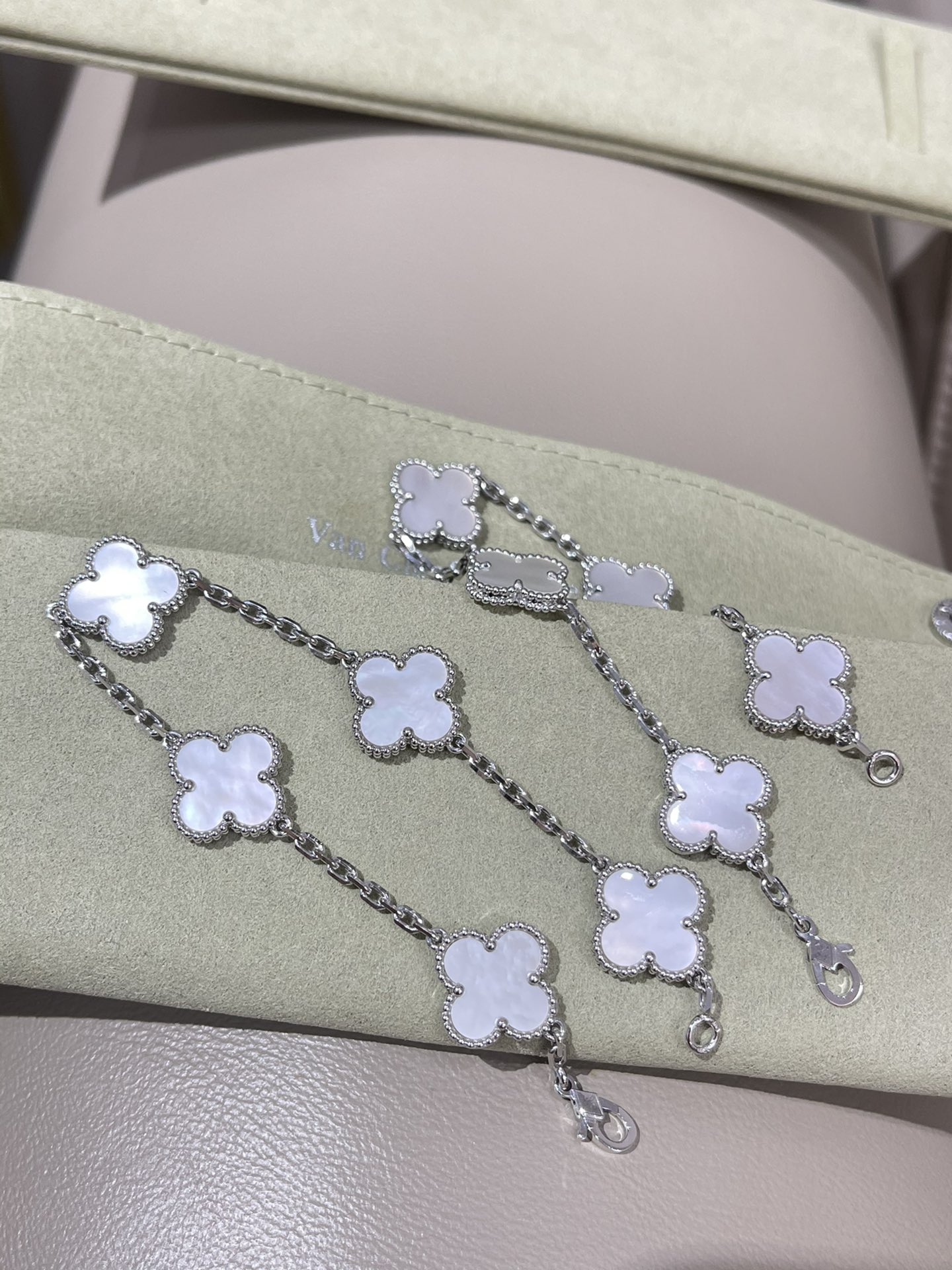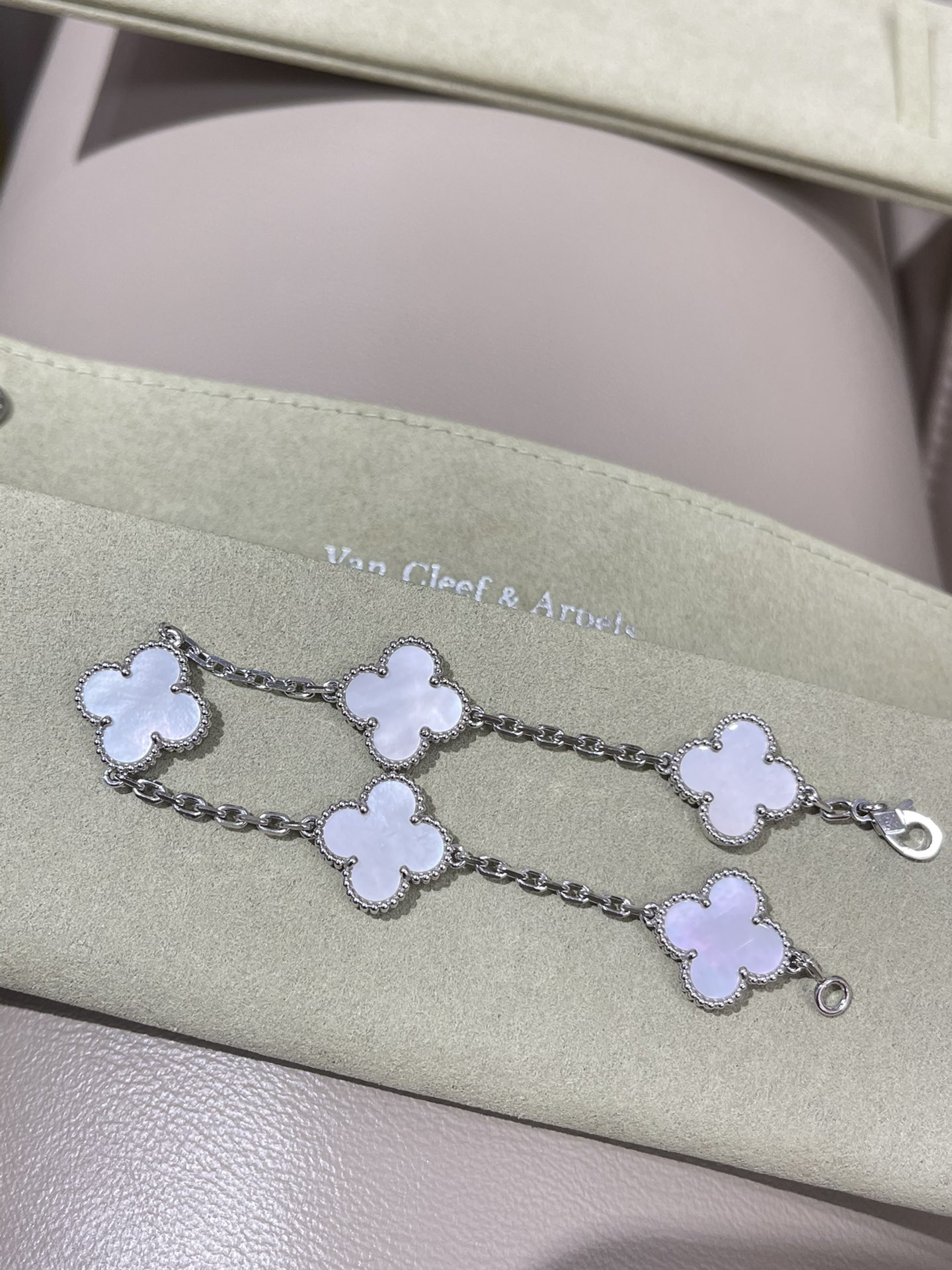 This jewelry is AAAAA 1:1 quality (superb). Materials used are identical to the original ones. Van Cleef & Arpels trademark marks are indistinguishable to the authentic. Photos take by actual jewelry, what you receive will be 100% same with our photos.