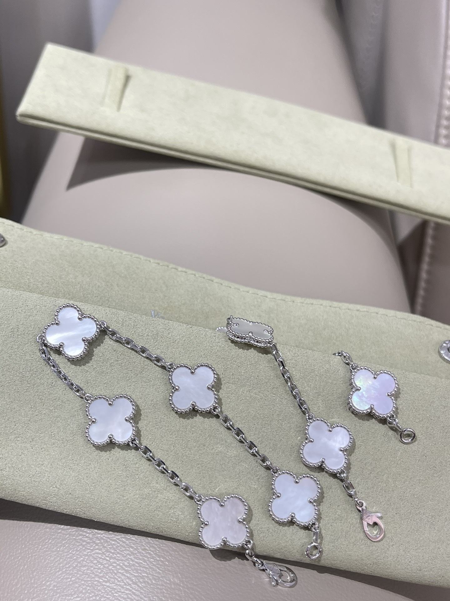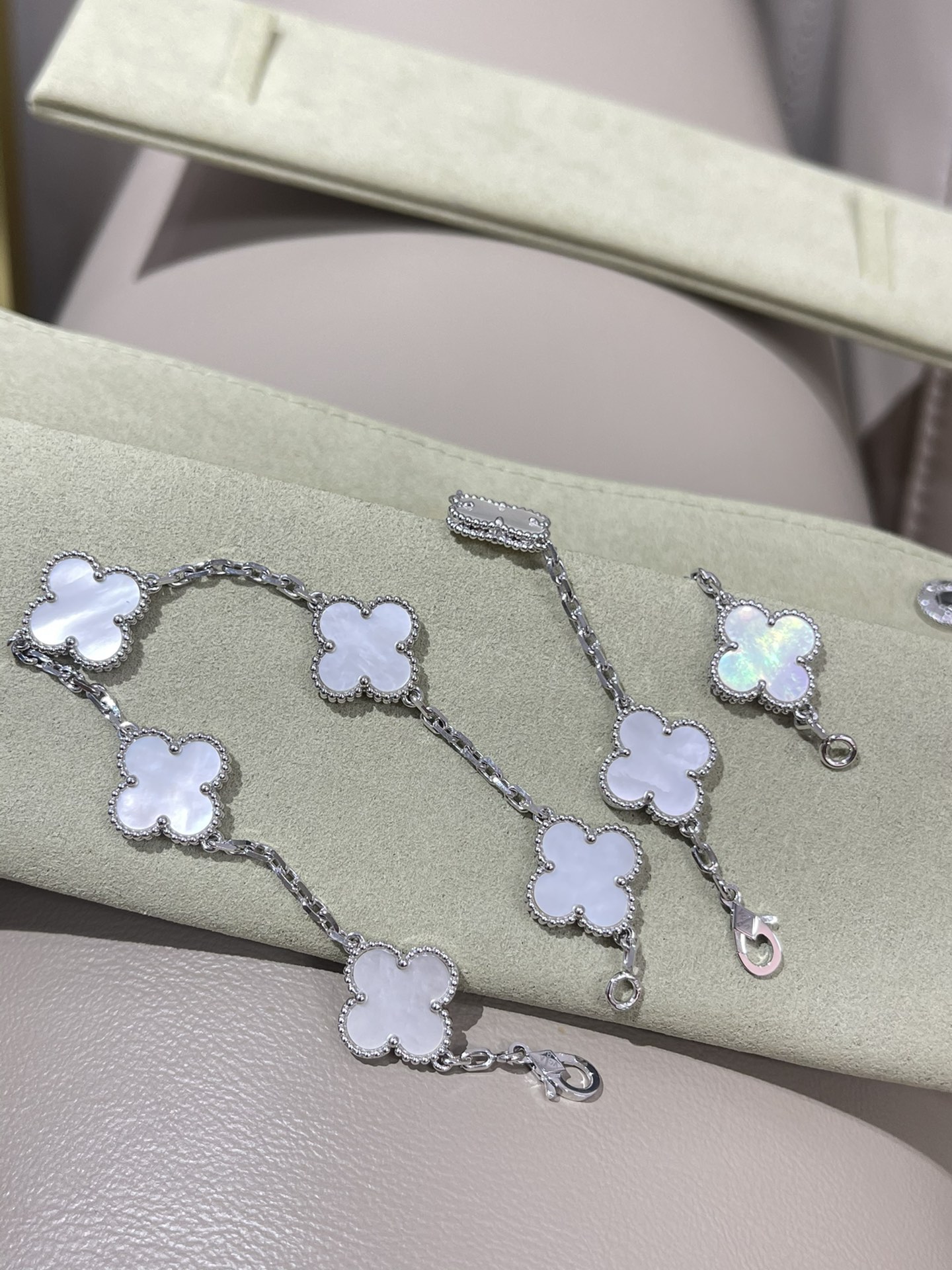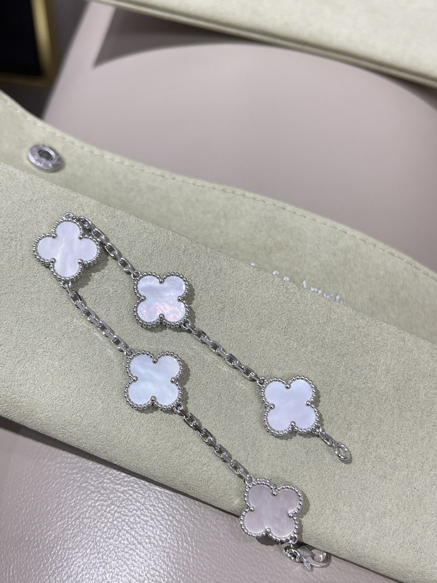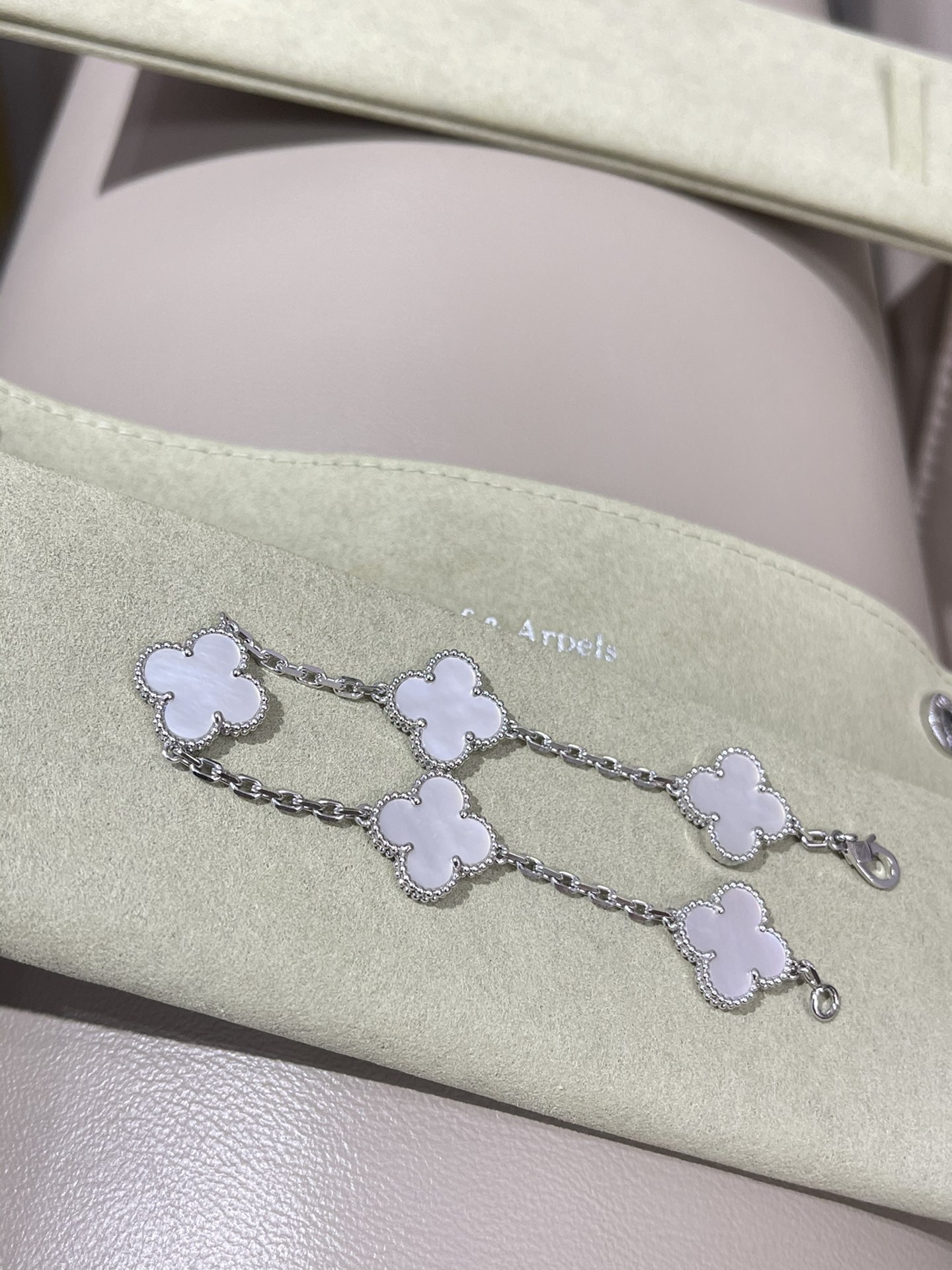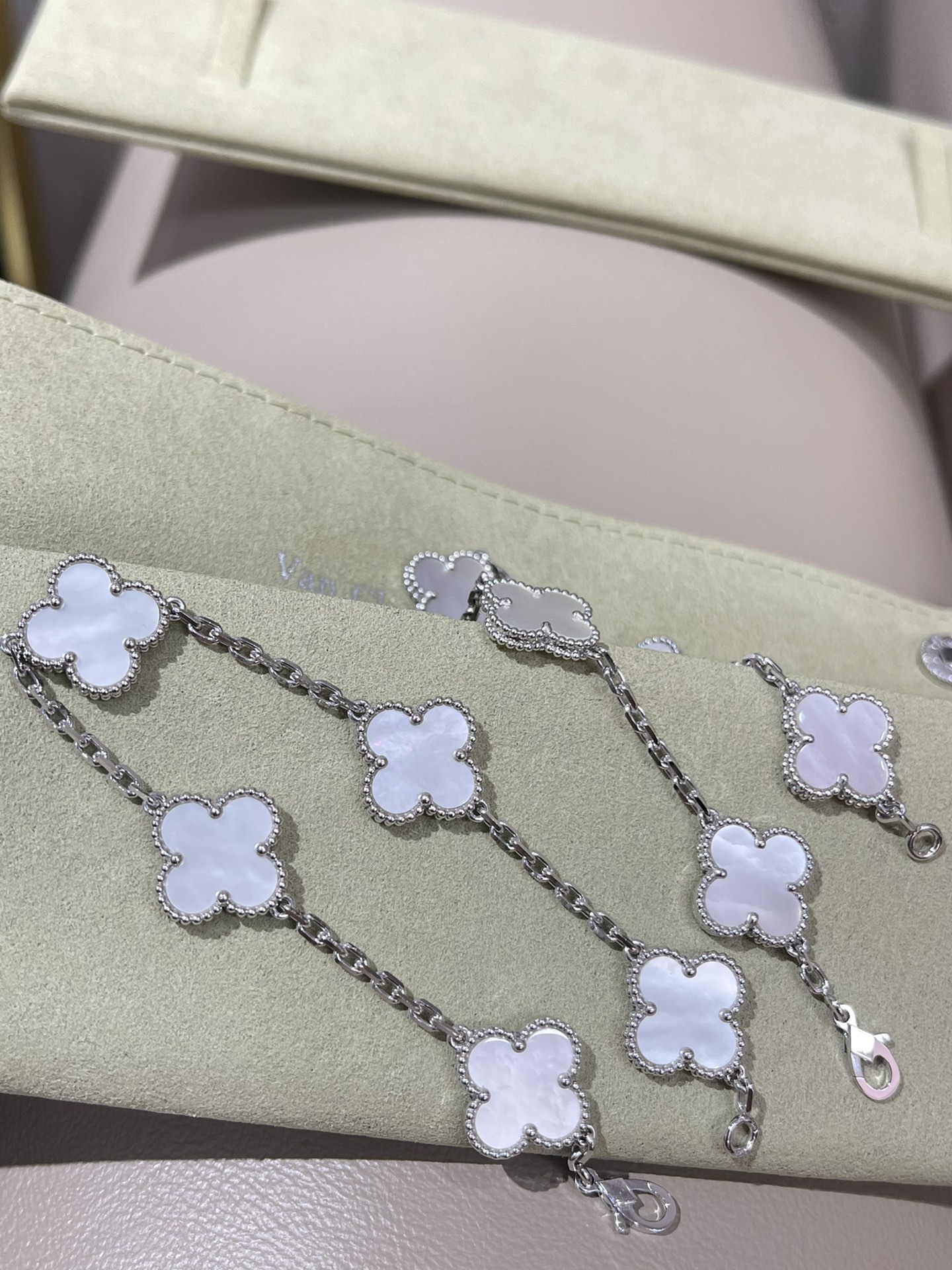This jewelry is AAAAA 1:1 quality (superb). Materials used are identical to the original ones. Van Cleef & Arpels trademark marks are indistinguishable to the authentic. Photos take by actual jewelry, what you receive will be 100% same with our photos.