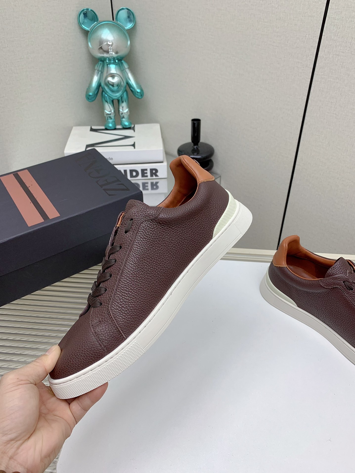 This shoes is AAAAA 1:1 quality (superb). Materials used are identical to the original ones. Zegna trademark marks are indistinguishable to the authentic. Photos take by actual shoes, what you receive will be 100% same with our photos.