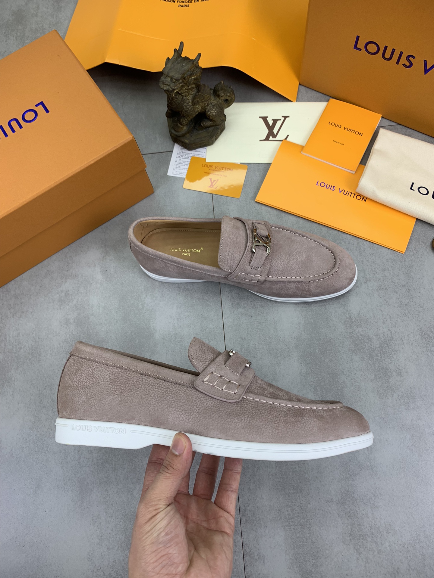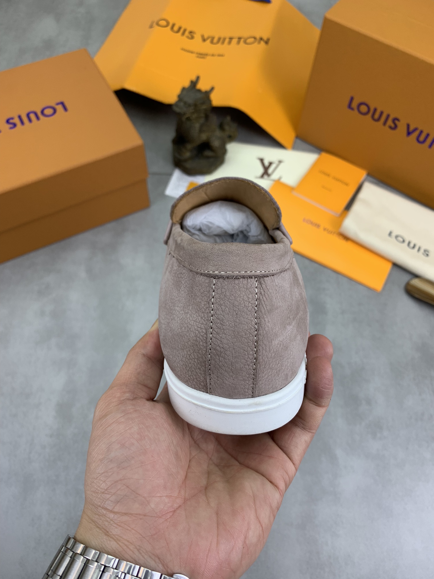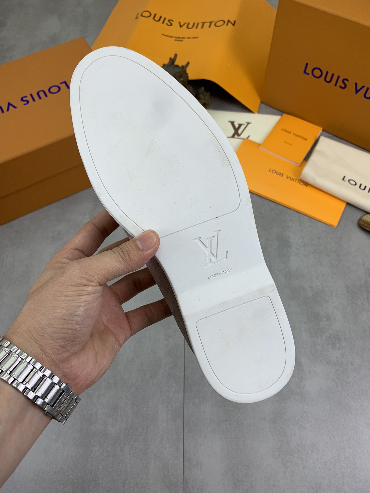 This shoes is AAAAA 1:1 quality (superb). Materials used are identical to the original ones. Louis Vuitton trademark marks are indistinguishable to the authentic. Photos take by actual shoes, what you receive will be 100% same with our photos.