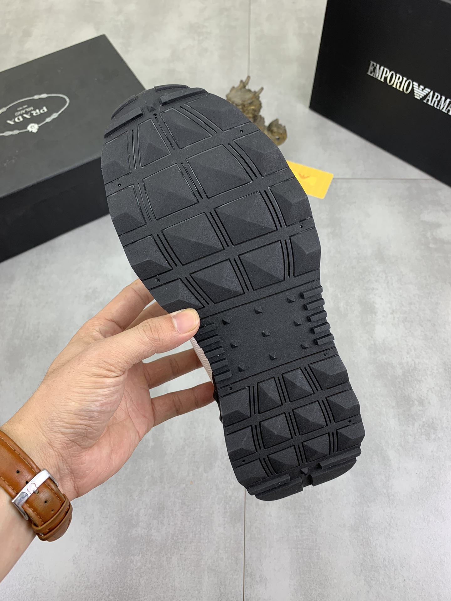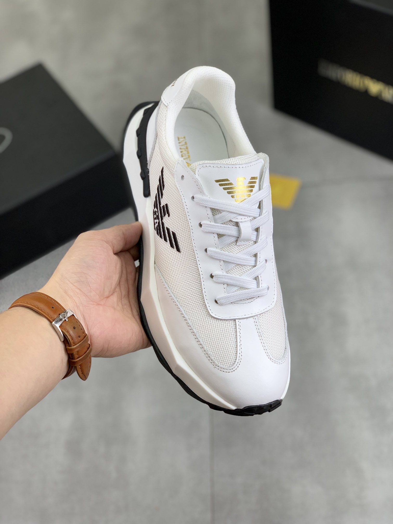 This shoes is AAAAA 1:1 quality (superb). Materials used are identical to the original ones. Armani trademark marks are indistinguishable to the authentic. Photos take by actual shoes, what you receive will be 100% same with our photos.