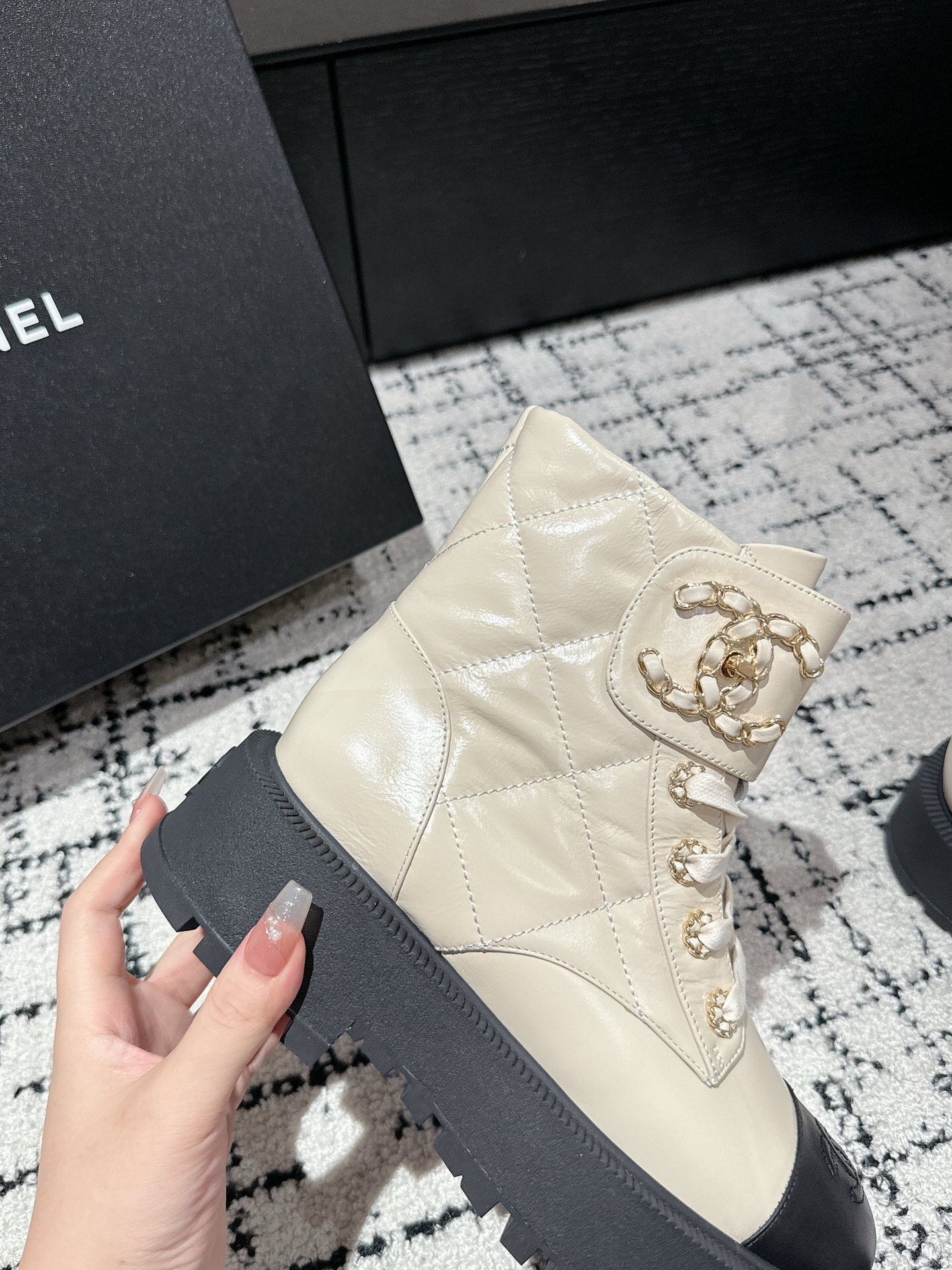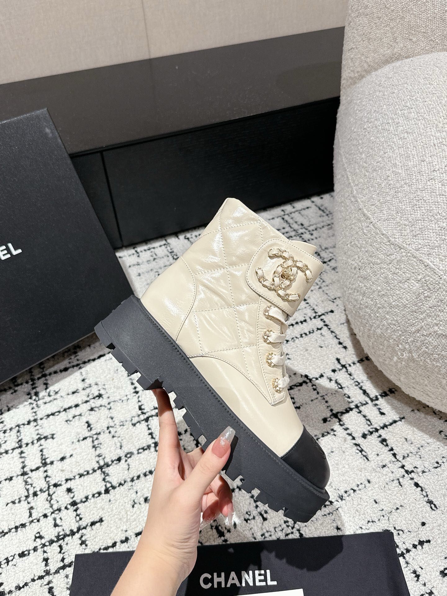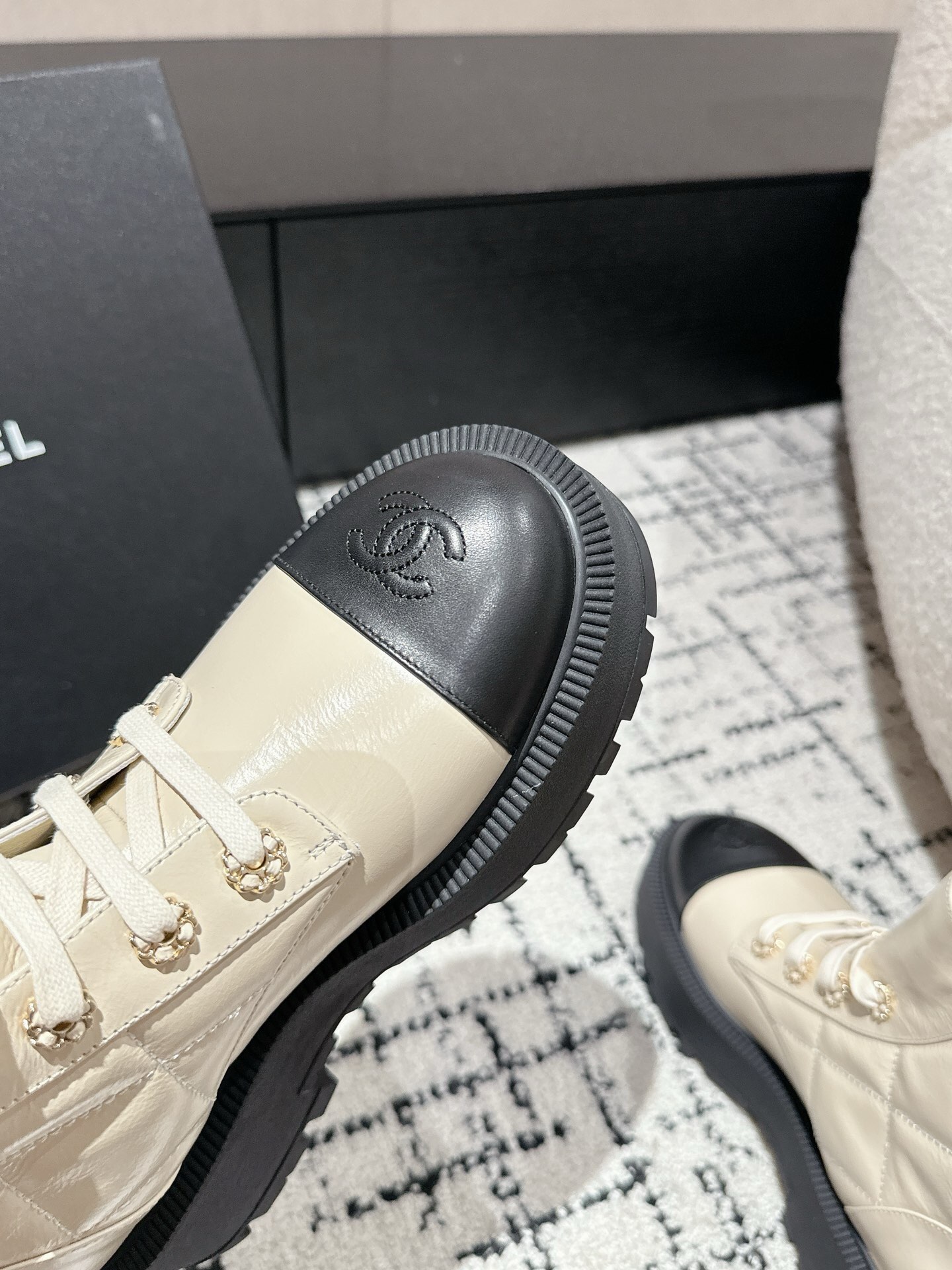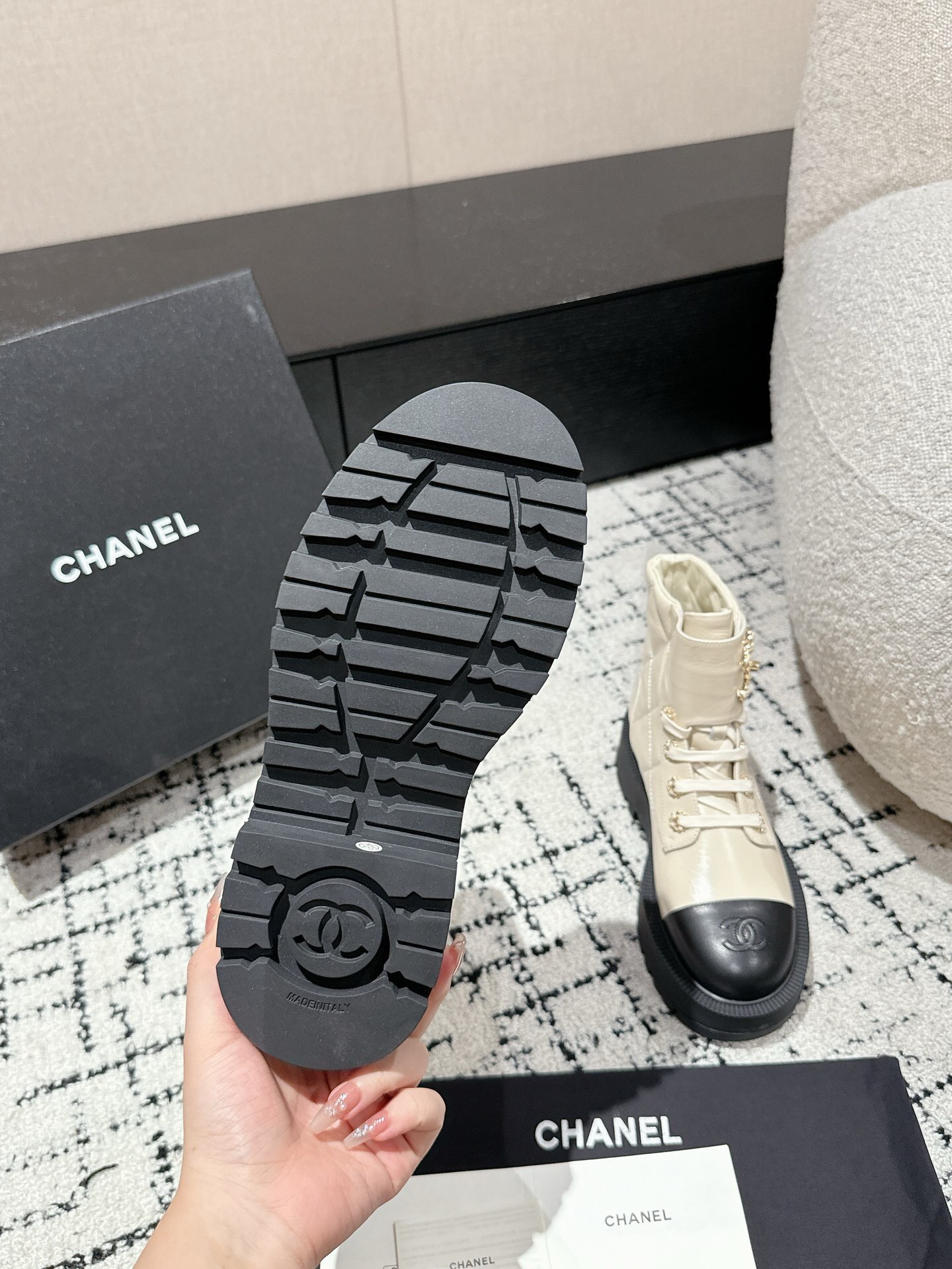 This shoes is AAAAA 1:1 quality (superb). Materials used are identical to the original ones. Chanel trademark marks are indistinguishable to the authentic. Photos take by actual shoes, what you receive will be 100% same with our photos.