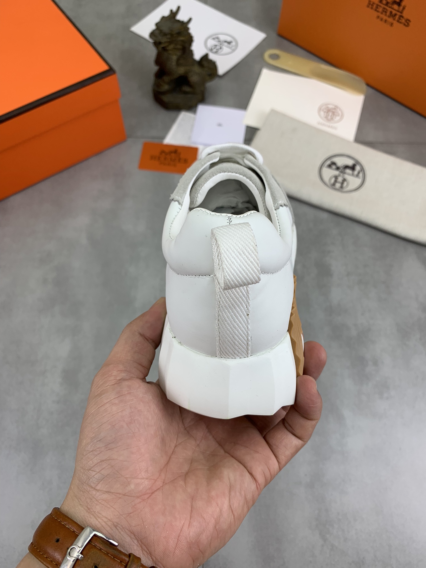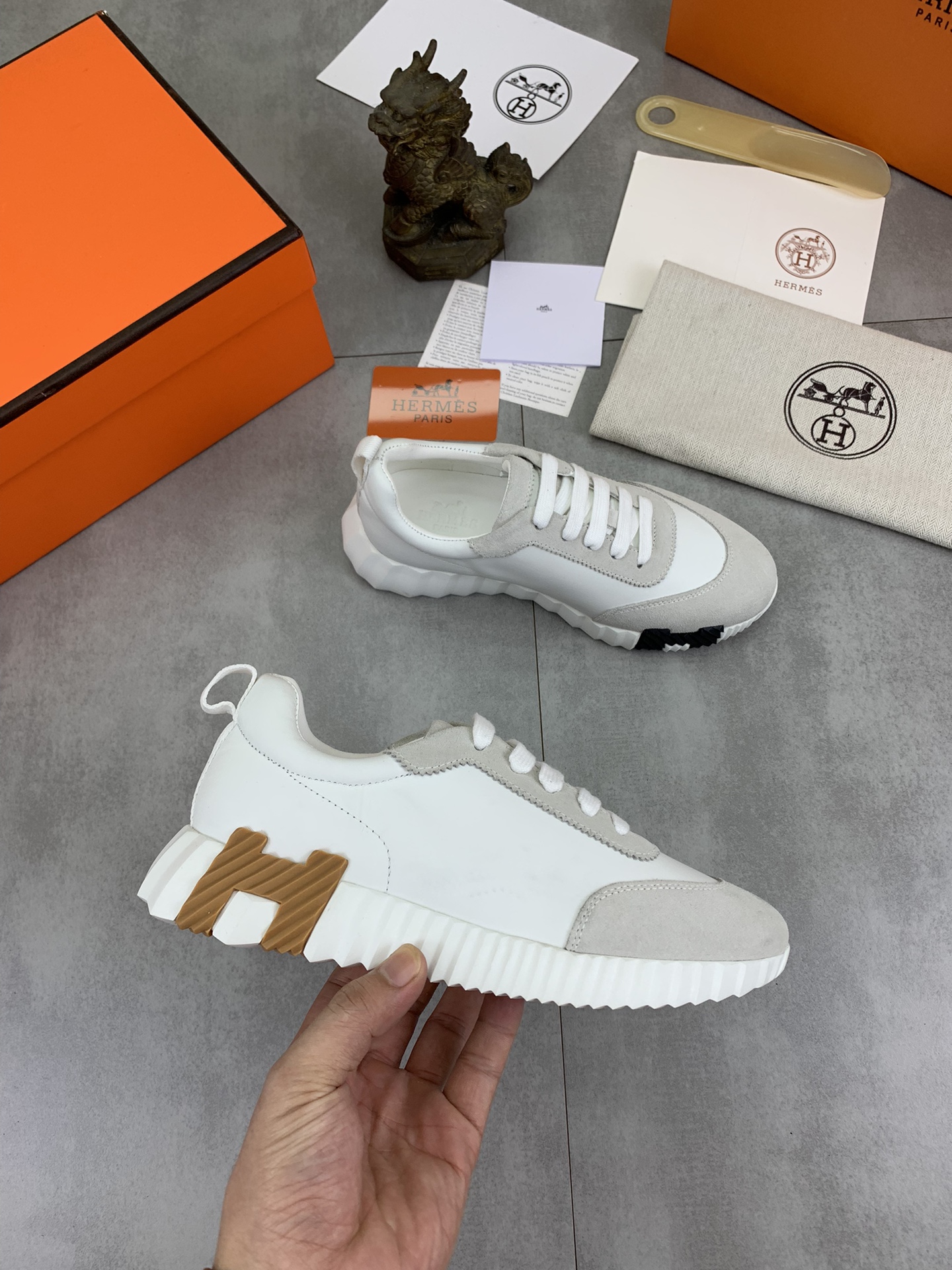 This shoes is AAAAA 1:1 quality (superb). Materials used are identical to the original ones. Hermes trademark marks are indistinguishable to the authentic. Photos take by actual shoes, what you receive will be 100% same with our photos.