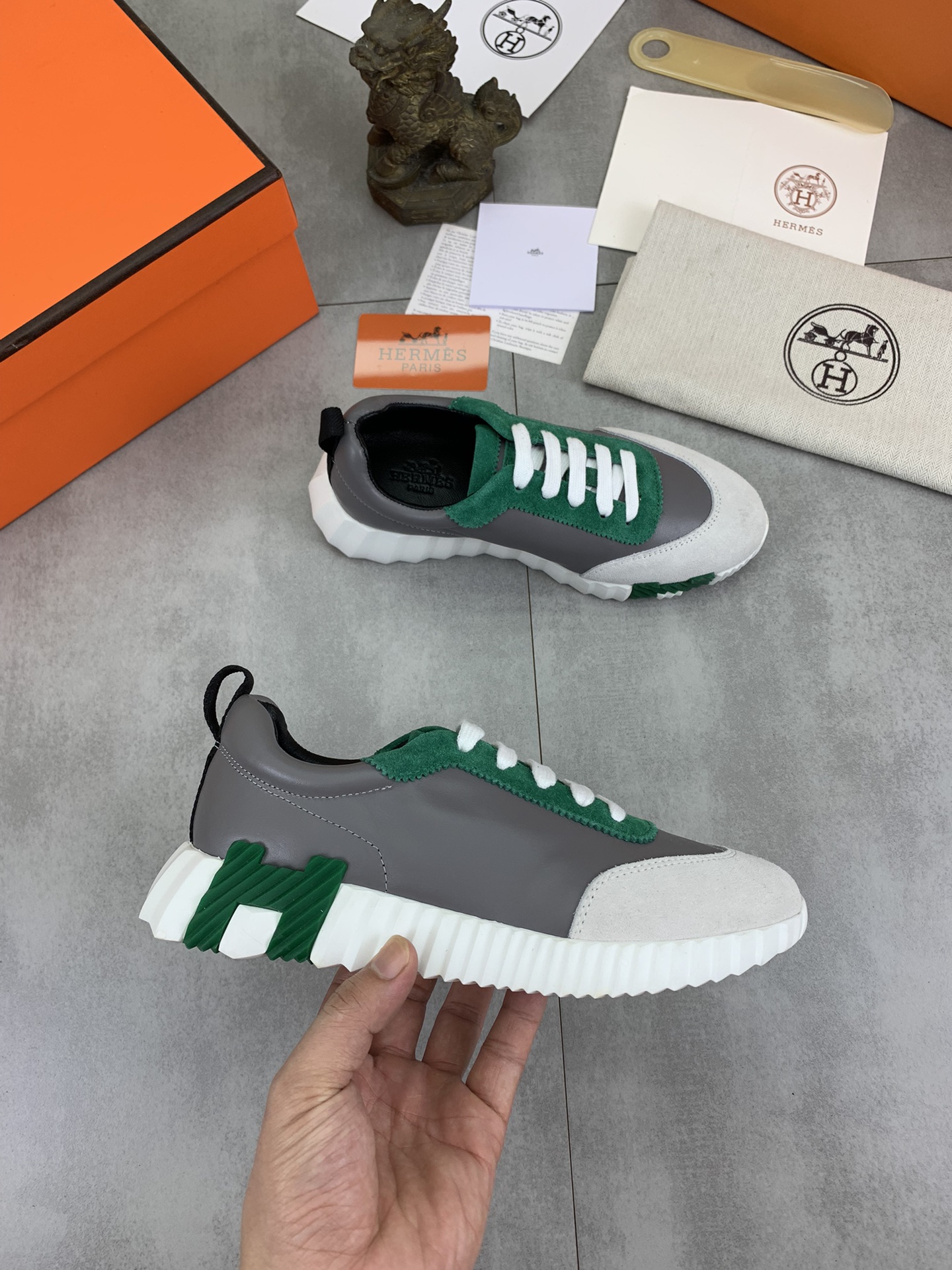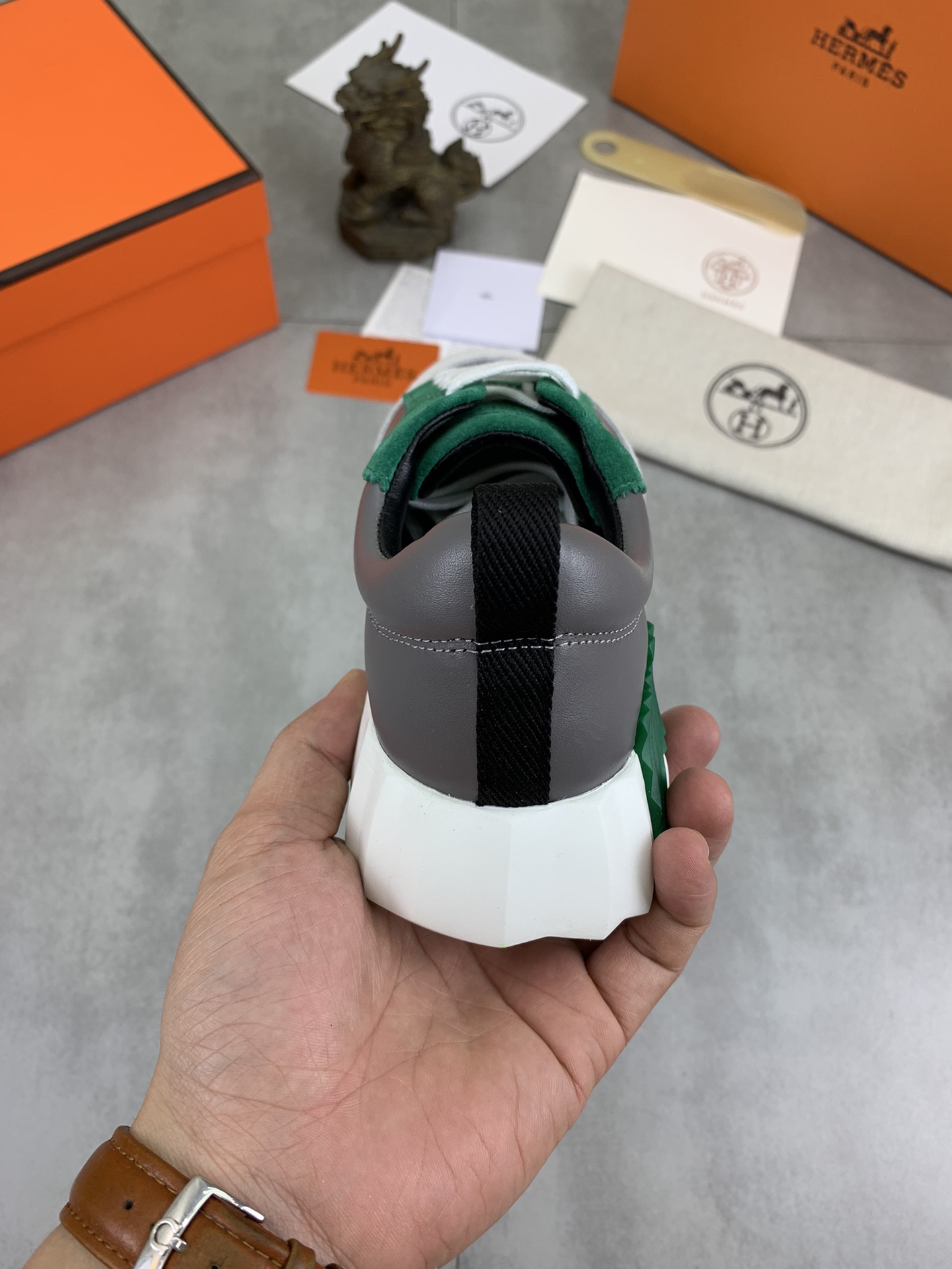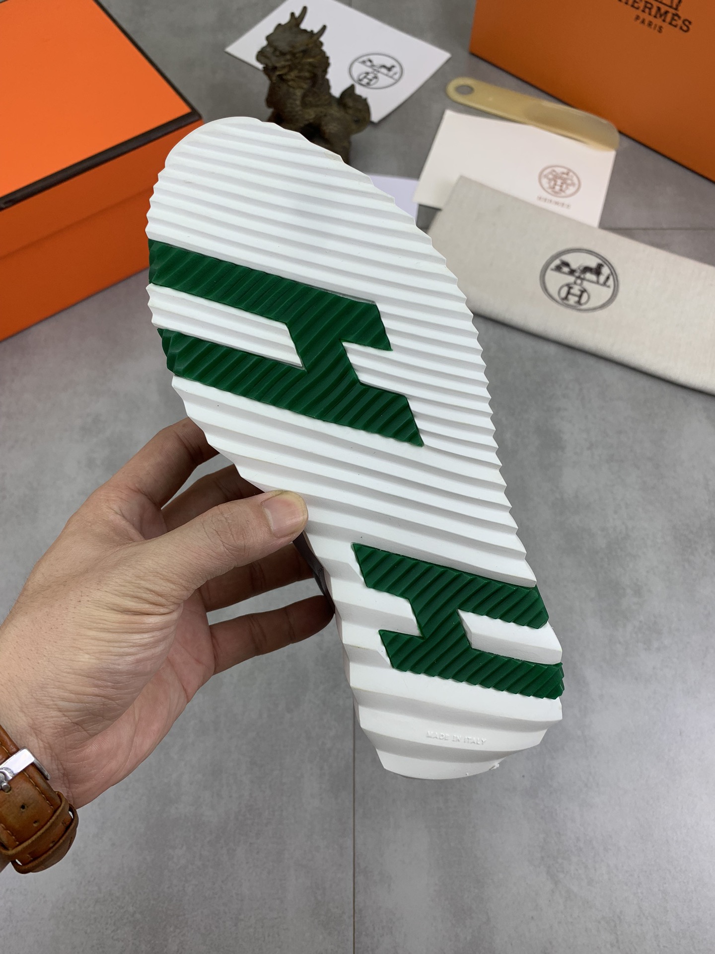 This shoes is AAAAA 1:1 quality (superb). Materials used are identical to the original ones. Hermes trademark marks are indistinguishable to the authentic. Photos take by actual shoes, what you receive will be 100% same with our photos.