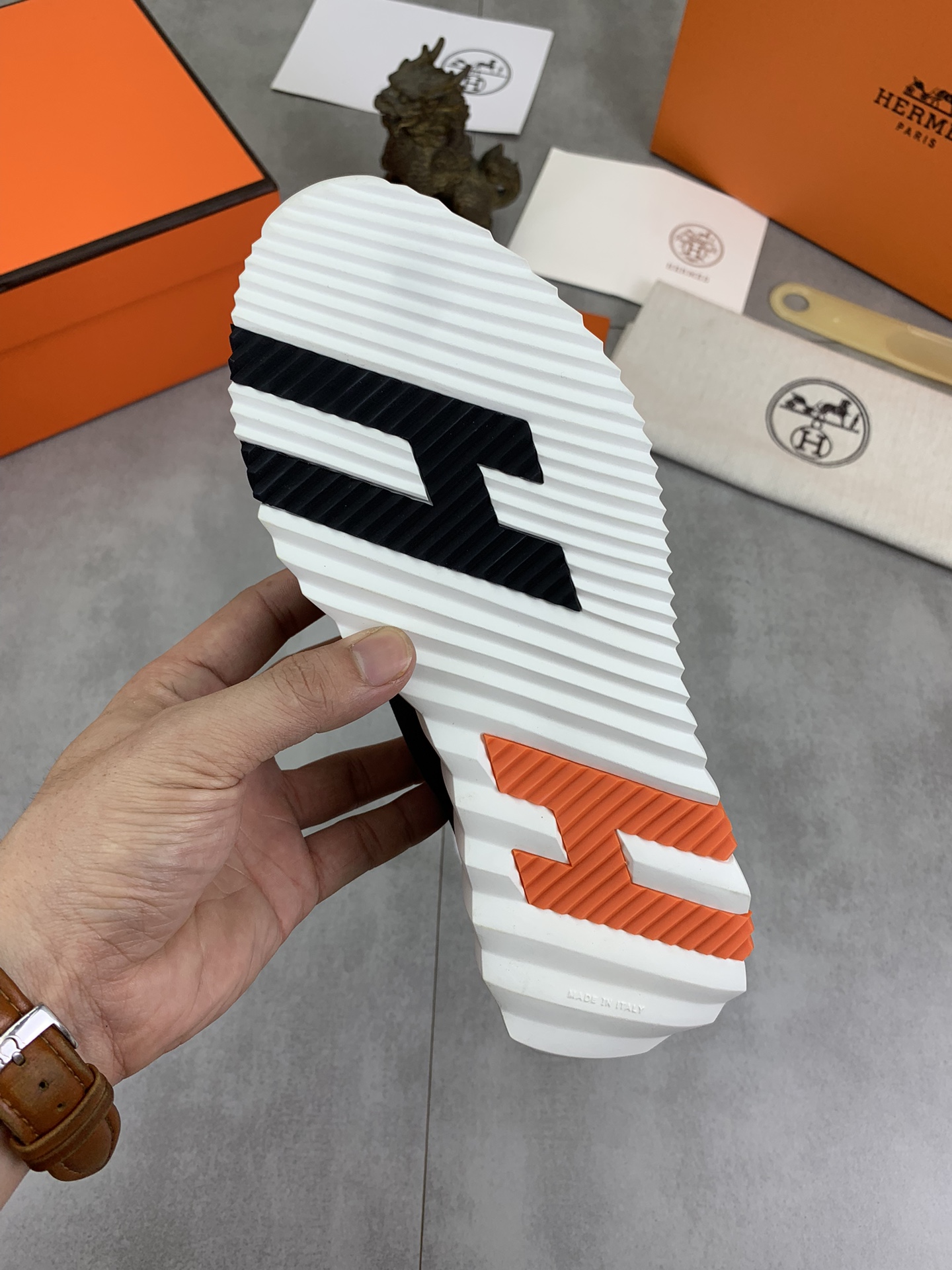 This shoes is AAAAA 1:1 quality (superb). Materials used are identical to the original ones. Hermes trademark marks are indistinguishable to the authentic. Photos take by actual shoes, what you receive will be 100% same with our photos.
