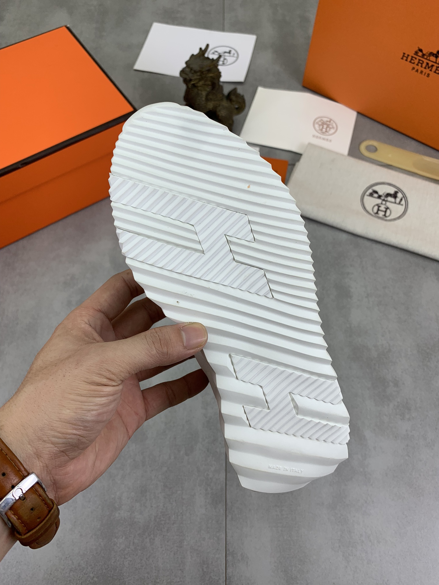 This shoes is AAAAA 1:1 quality (superb). Materials used are identical to the original ones. Hermes trademark marks are indistinguishable to the authentic. Photos take by actual shoes, what you receive will be 100% same with our photos.