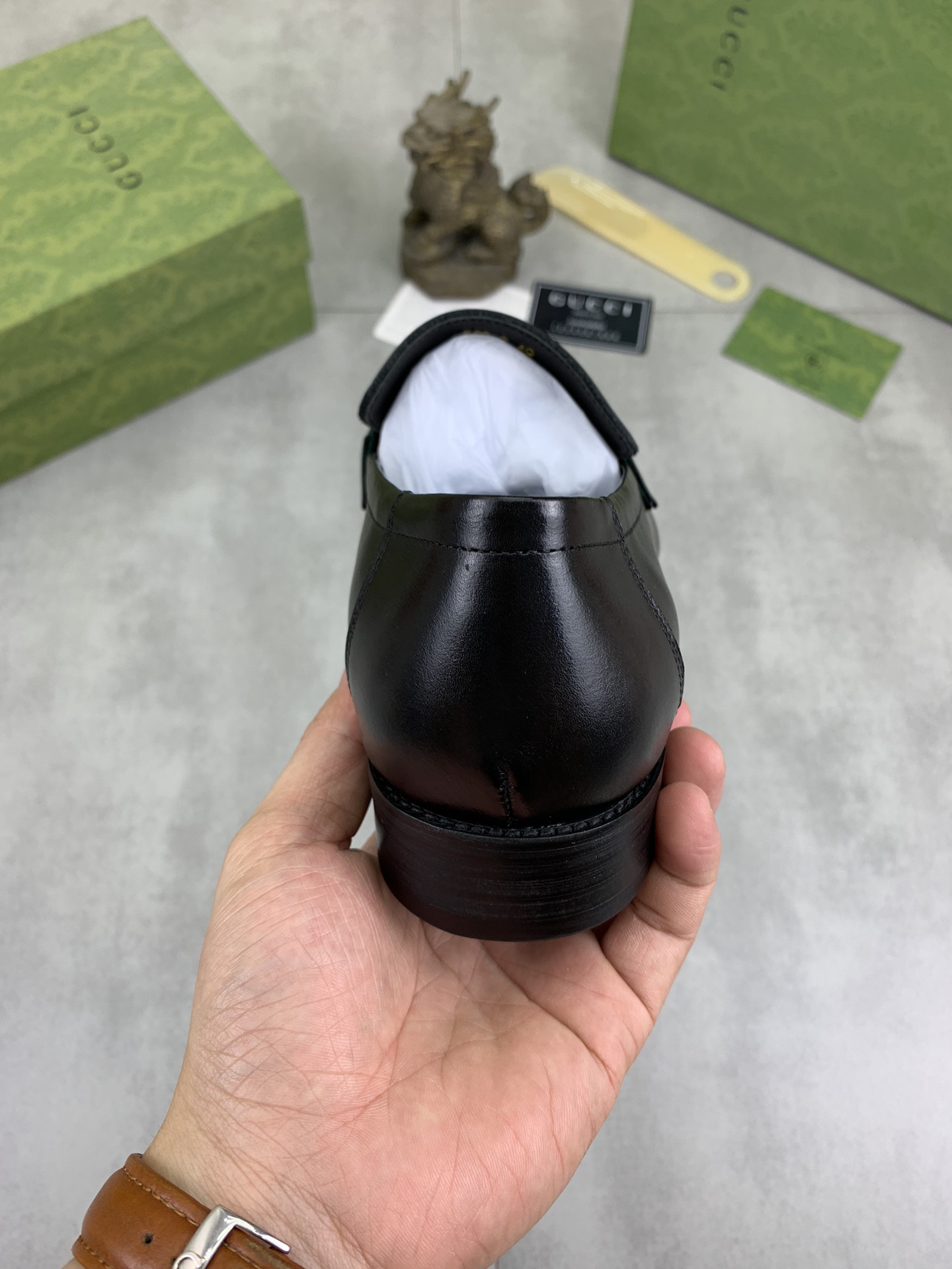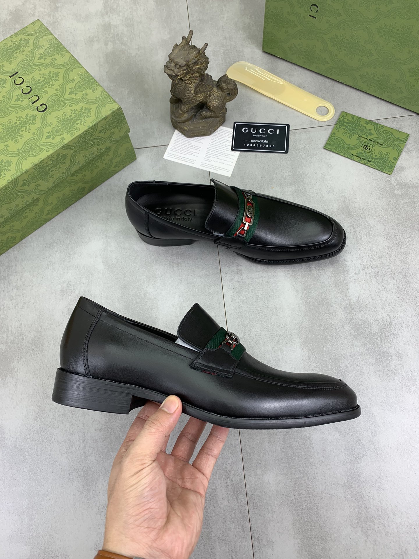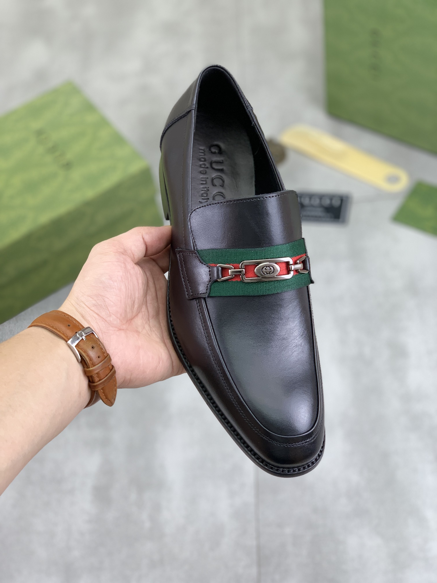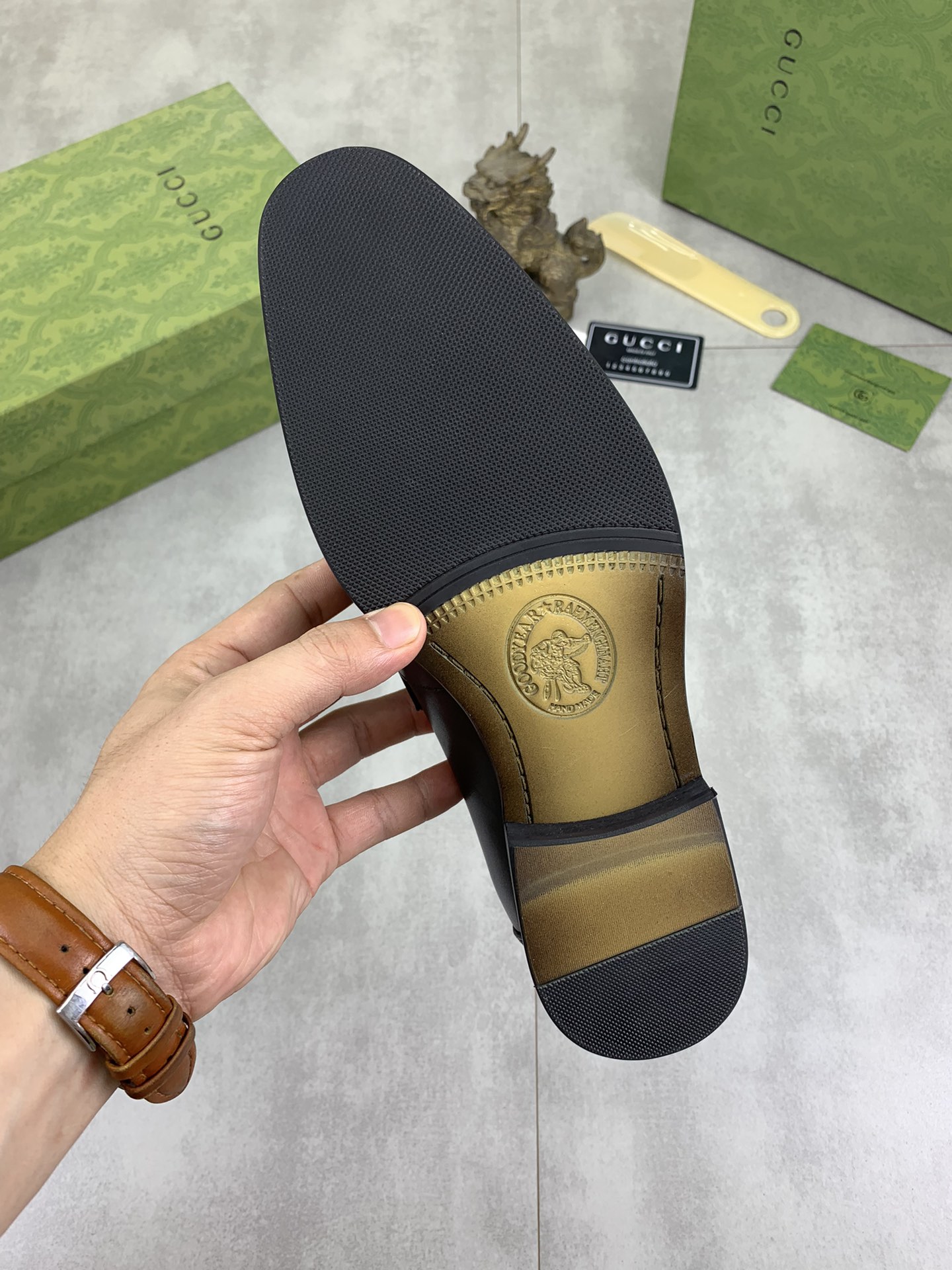 This shoes is AAAAA 1:1 quality (superb). Materials used are identical to the original ones. Gucci trademark marks are indistinguishable to the authentic. Photos take by actual shoes, what you receive will be 100% same with our photos.
