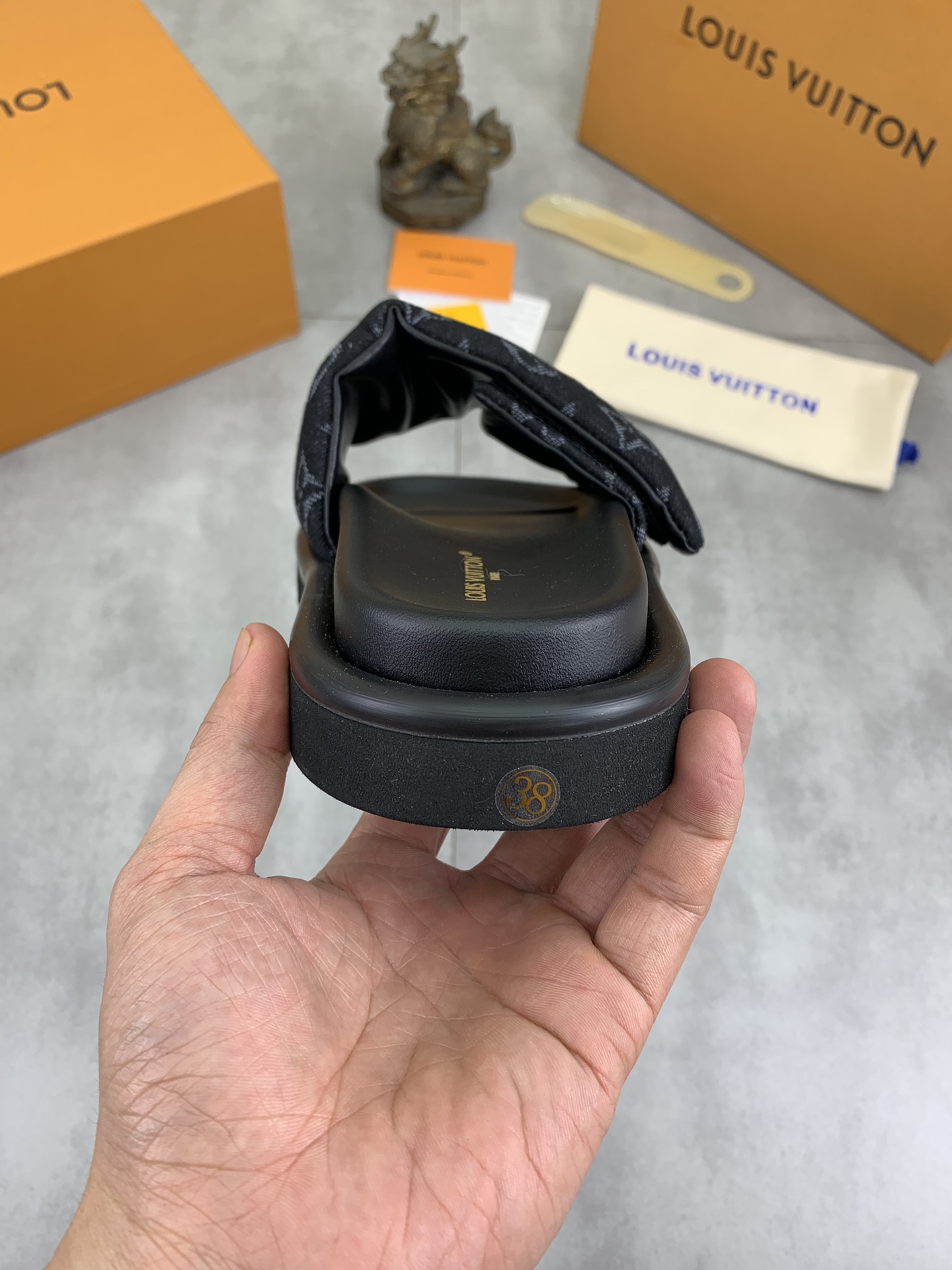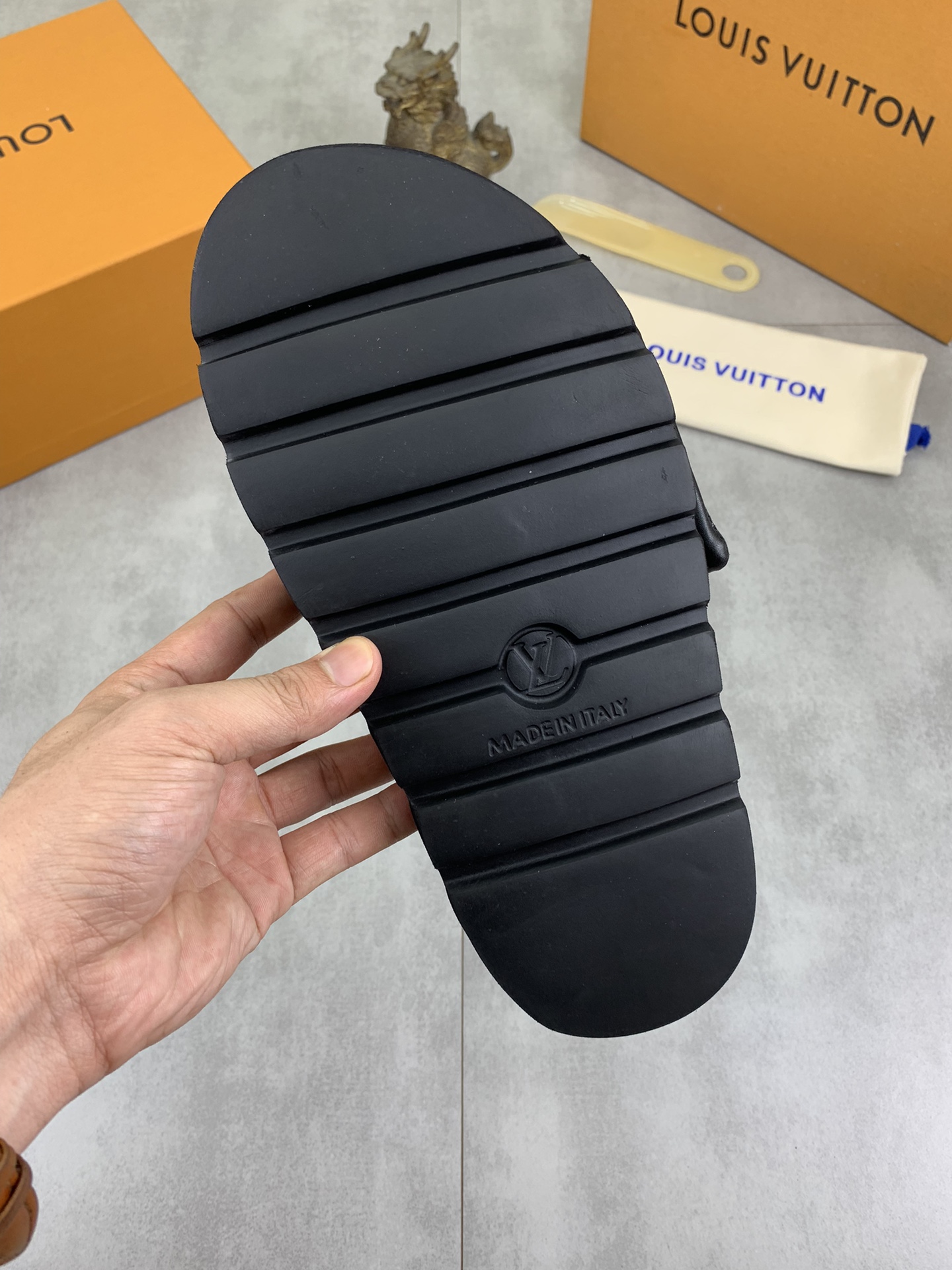 This shoes is AAAAA 1:1 quality (superb). Materials used are identical to the original ones. Louis Vuitton trademark marks are indistinguishable to the authentic. Photos take by actual shoes, what you receive will be 100% same with our photos.