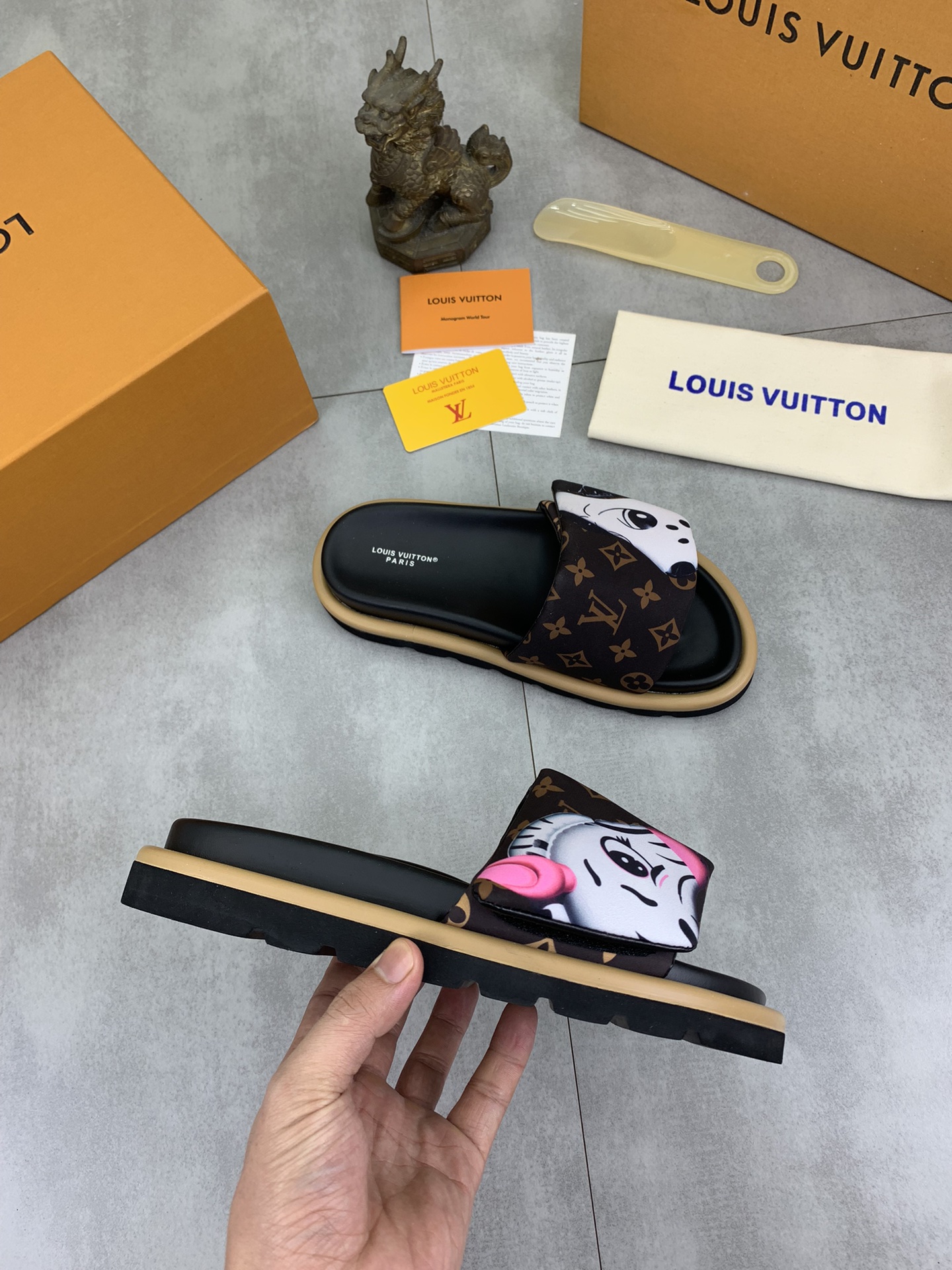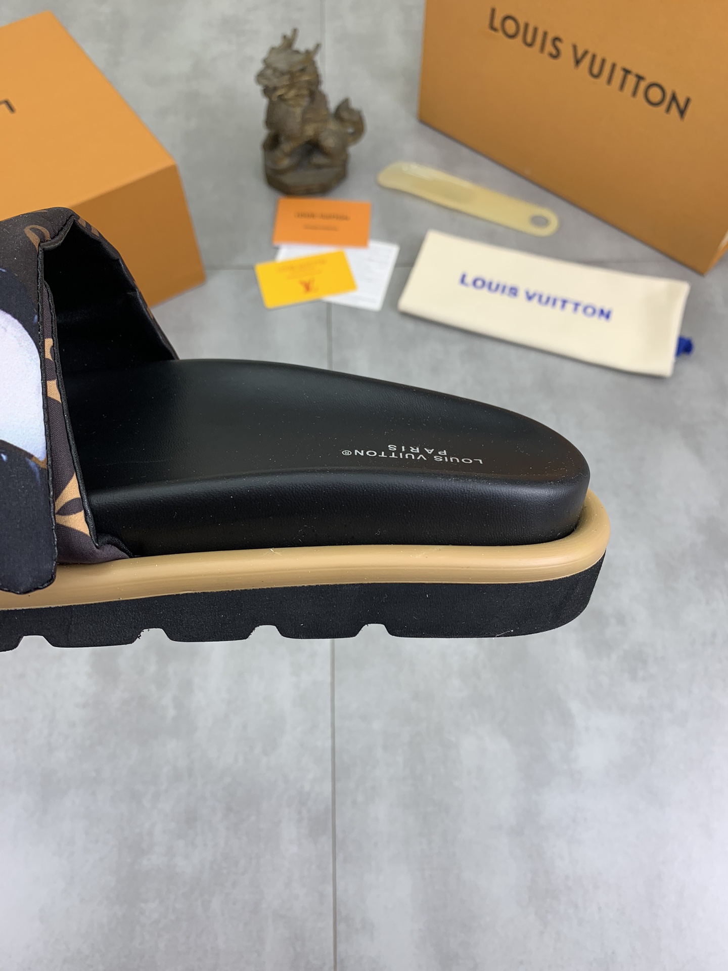 This shoes is AAAAA 1:1 quality (superb). Materials used are identical to the original ones. Louis Vuitton trademark marks are indistinguishable to the authentic. Photos take by actual shoes, what you receive will be 100% same with our photos.