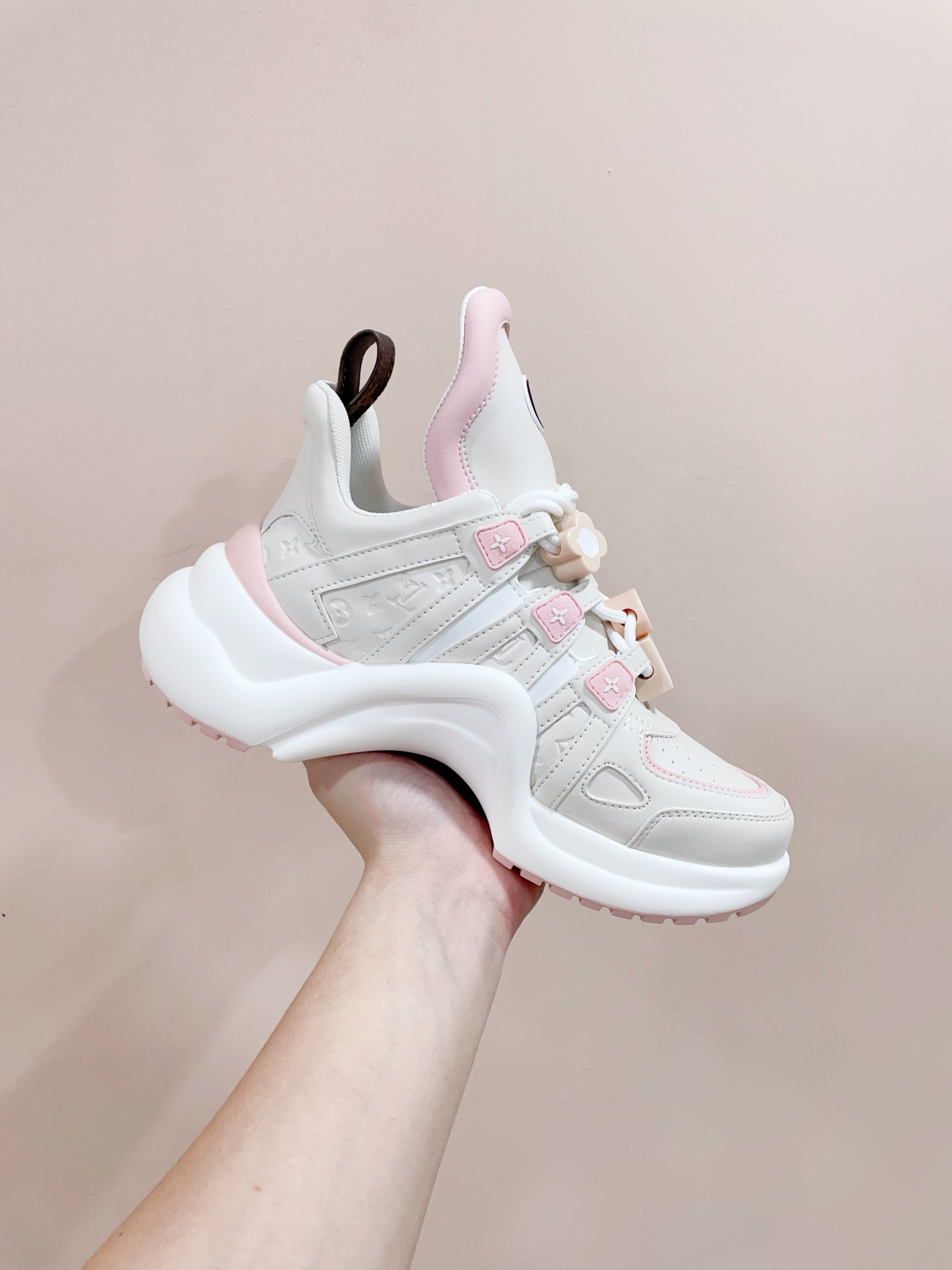 This shoes is AAAAA 1:1 quality (superb). Materials used are identical to the original ones. Louis Vuitton trademark marks are indistinguishable to the authentic. Photos take by actual shoes, what you receive will be 100% same with our photos.