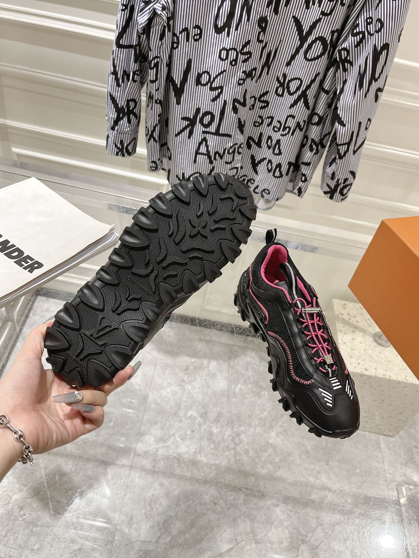 This shoes is AAAAA 1:1 quality (superb). Materials used are identical to the original ones. Louis Vuitton trademark marks are indistinguishable to the authentic. Photos take by actual shoes, what you receive will be 100% same with our photos.