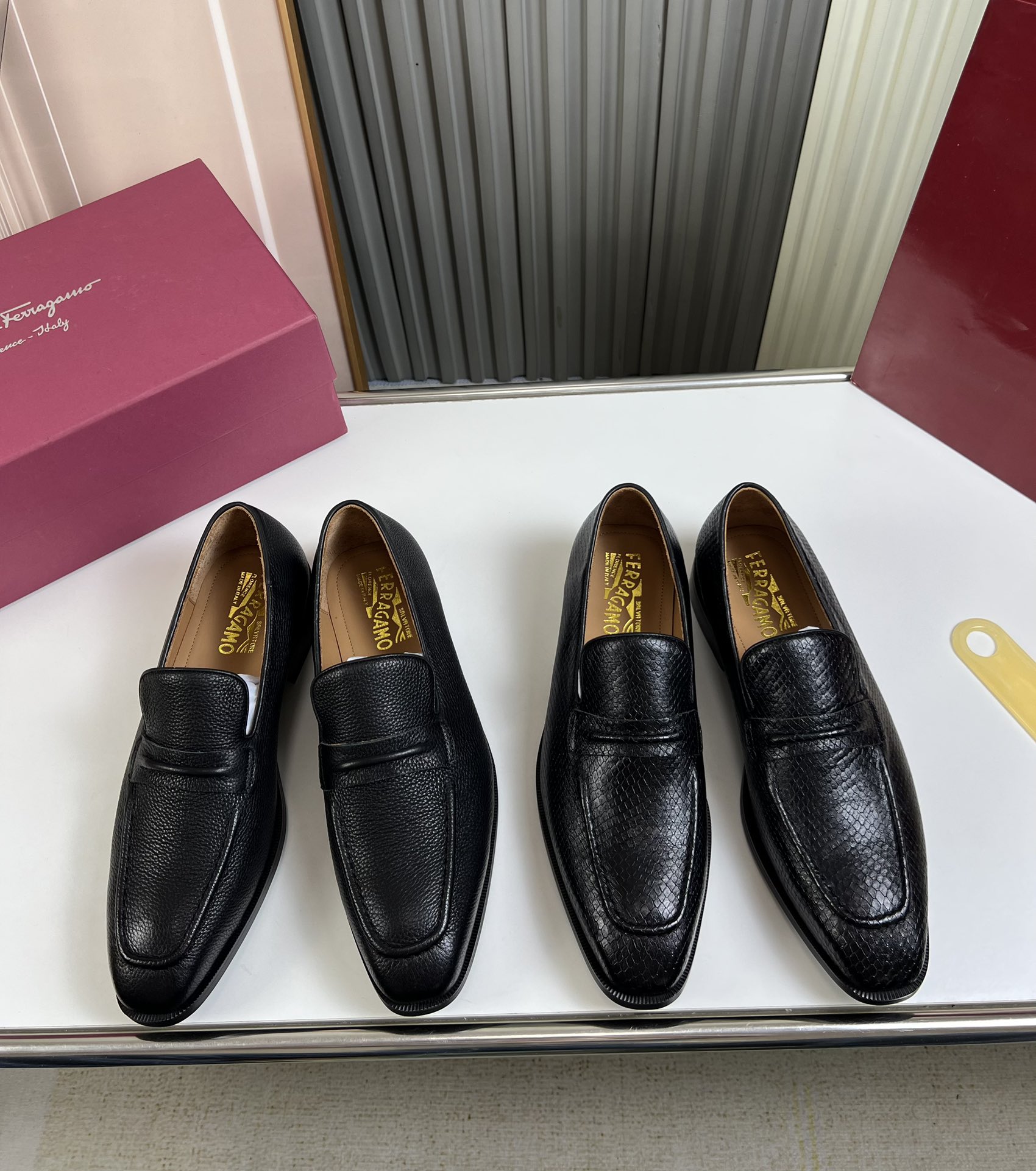 This shoes is AAAAA 1:1 quality (superb). Materials used are identical to the original ones. Salvatore Ferragamo trademark marks are indistinguishable to the authentic. Photos take by actual shoes, what you receive will be 100% same with our photos.