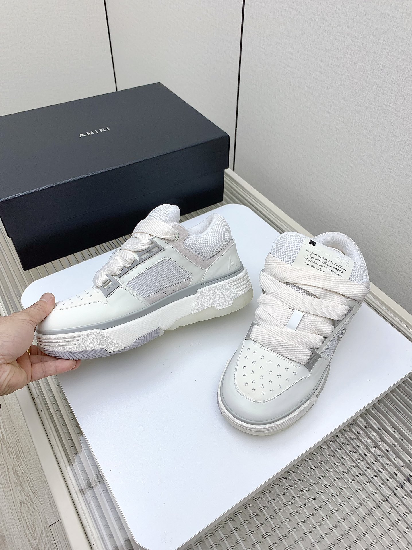This shoes is AAAAA 1:1 quality (superb). Materials used are identical to the original ones. AMIRI trademark marks are indistinguishable to the authentic. Photos take by actual shoes, what you receive will be 100% same with our photos.