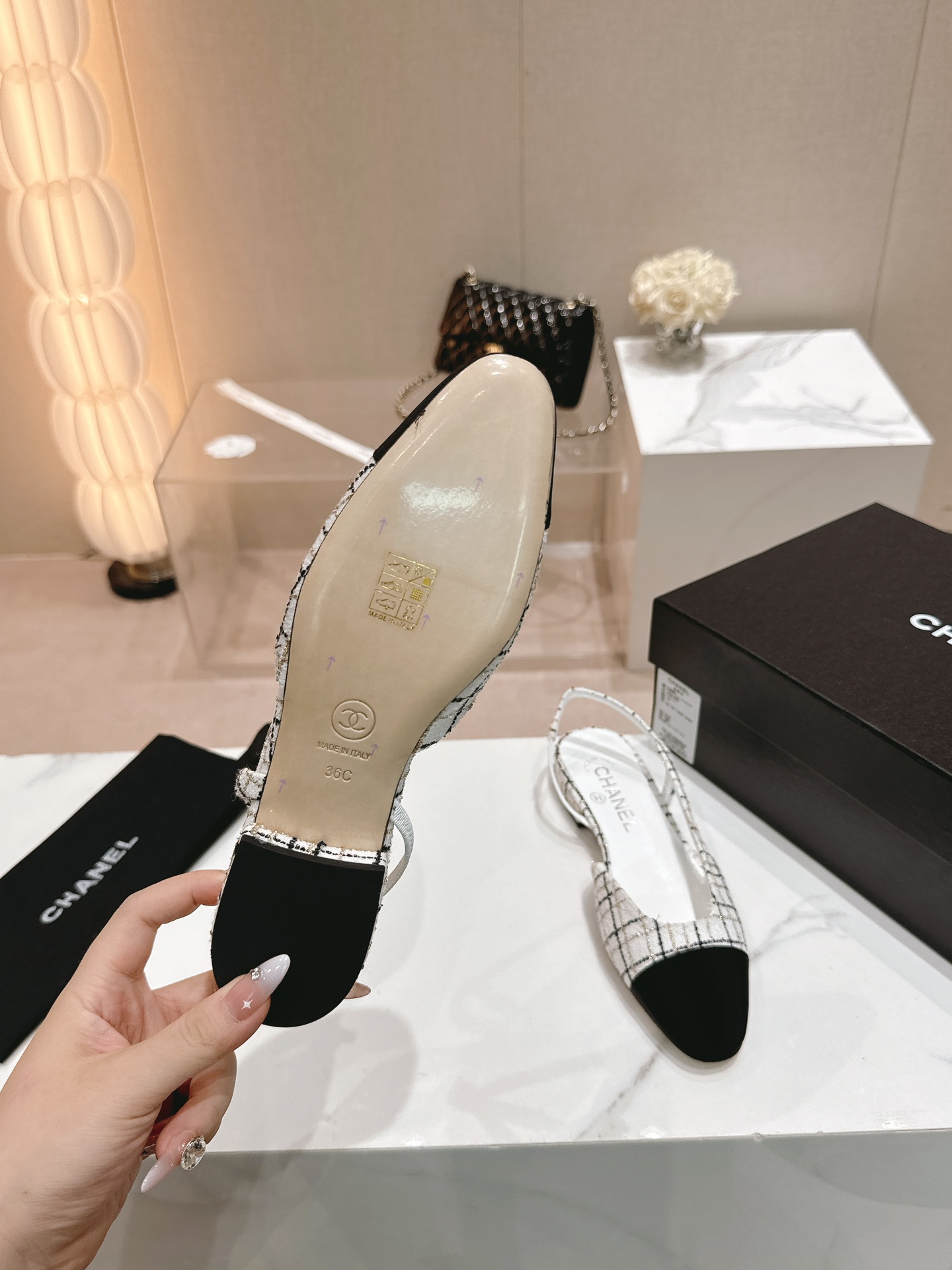 This shoes is AAAAA 1:1 quality (superb). Materials used are identical to the original ones. Chanel trademark marks are indistinguishable to the authentic. Photos take by actual shoes, what you receive will be 100% same with our photos.