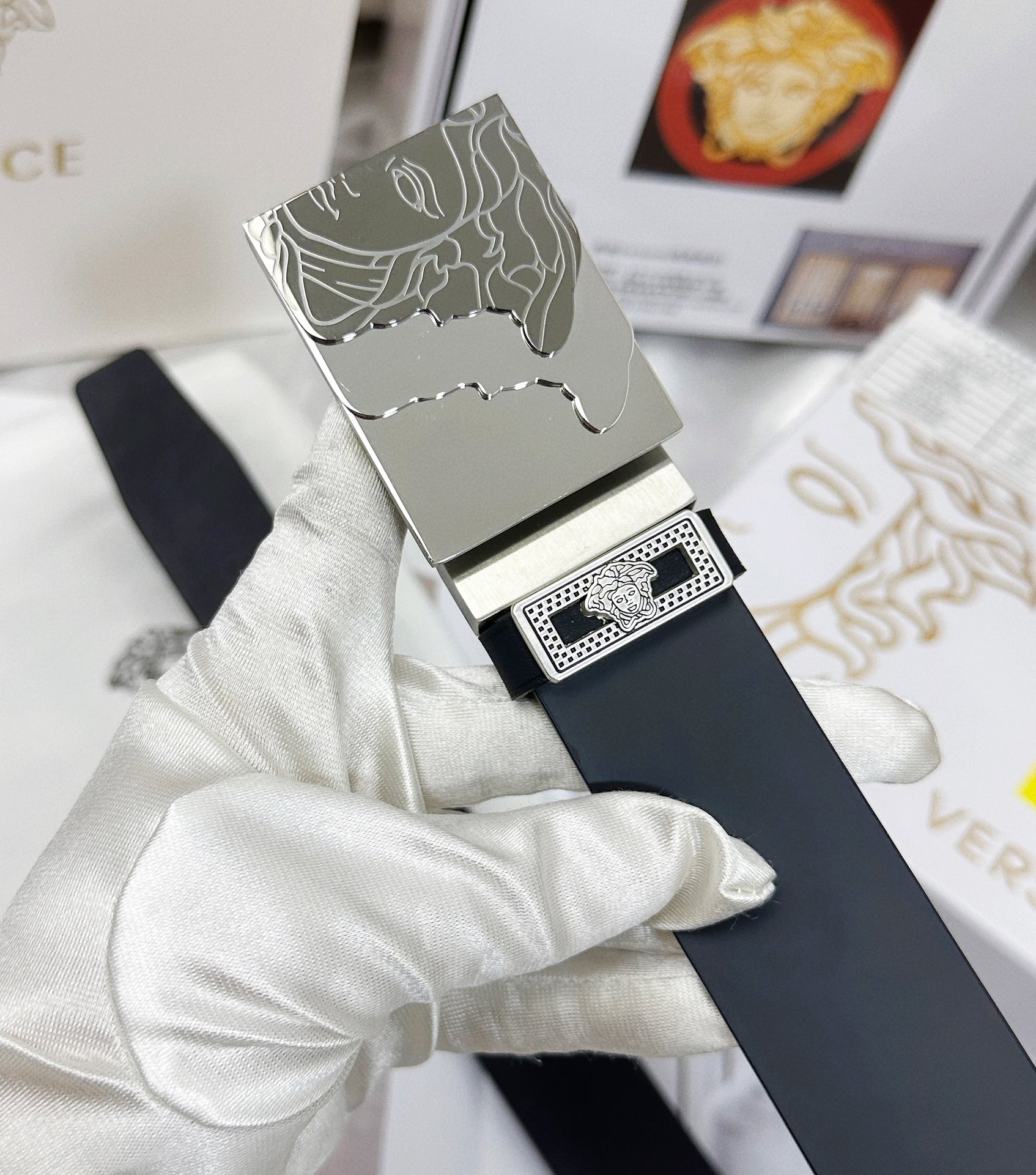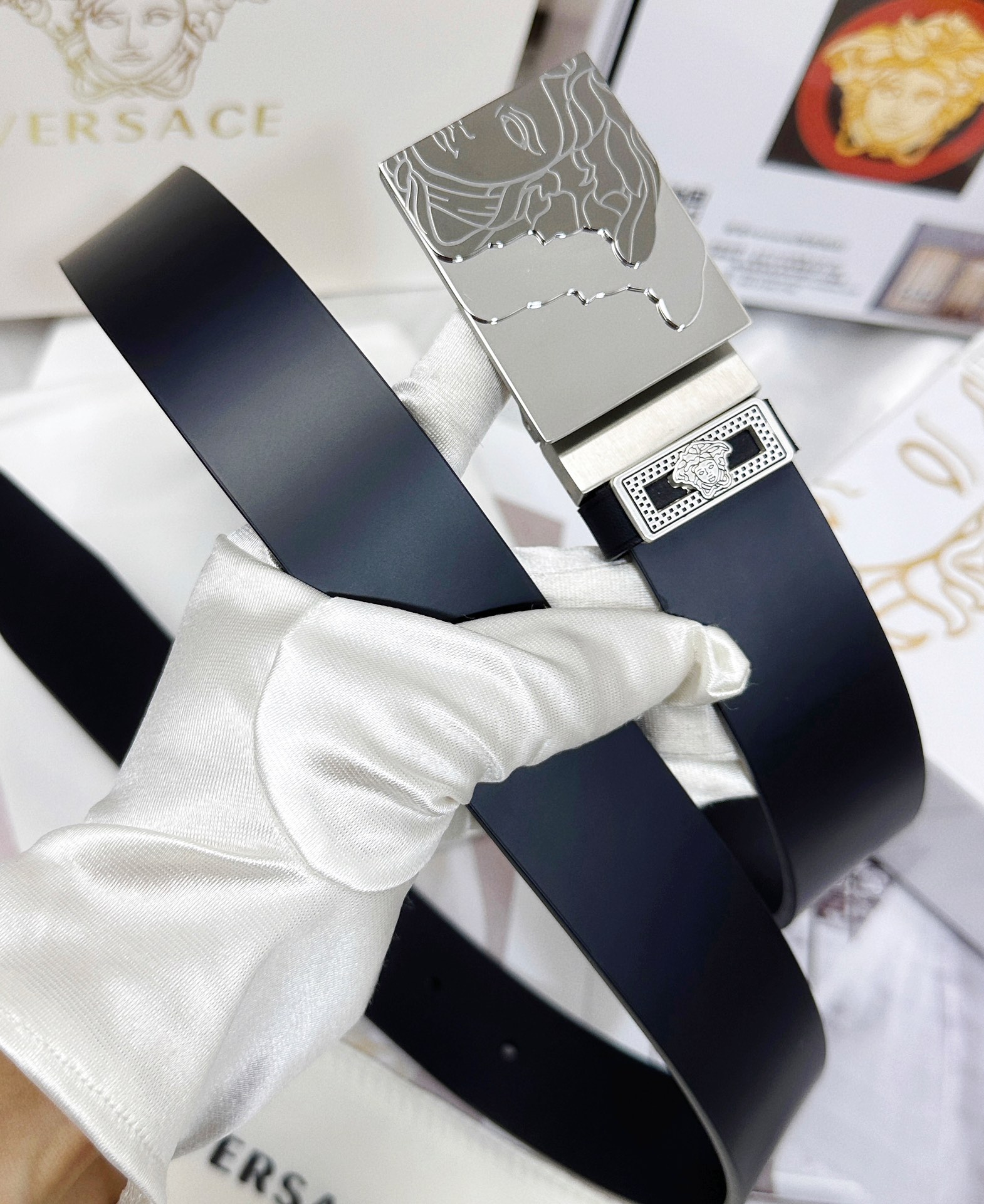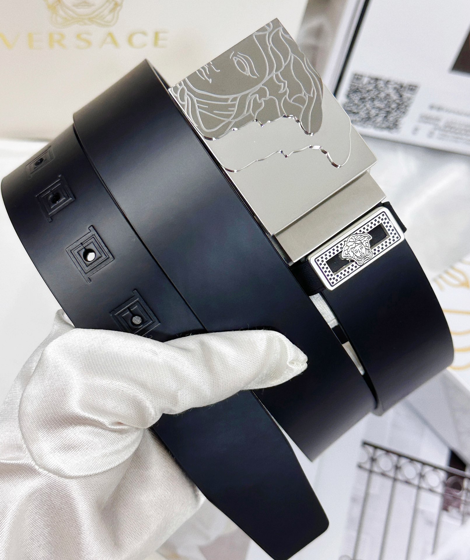 This belt is AAAAA 1:1 quality (superb). Materials used are identical to the original ones. Versace trademark marks are indistinguishable to the authentic. Photos take by actual belt, what you receive will be 100% same with our photos.