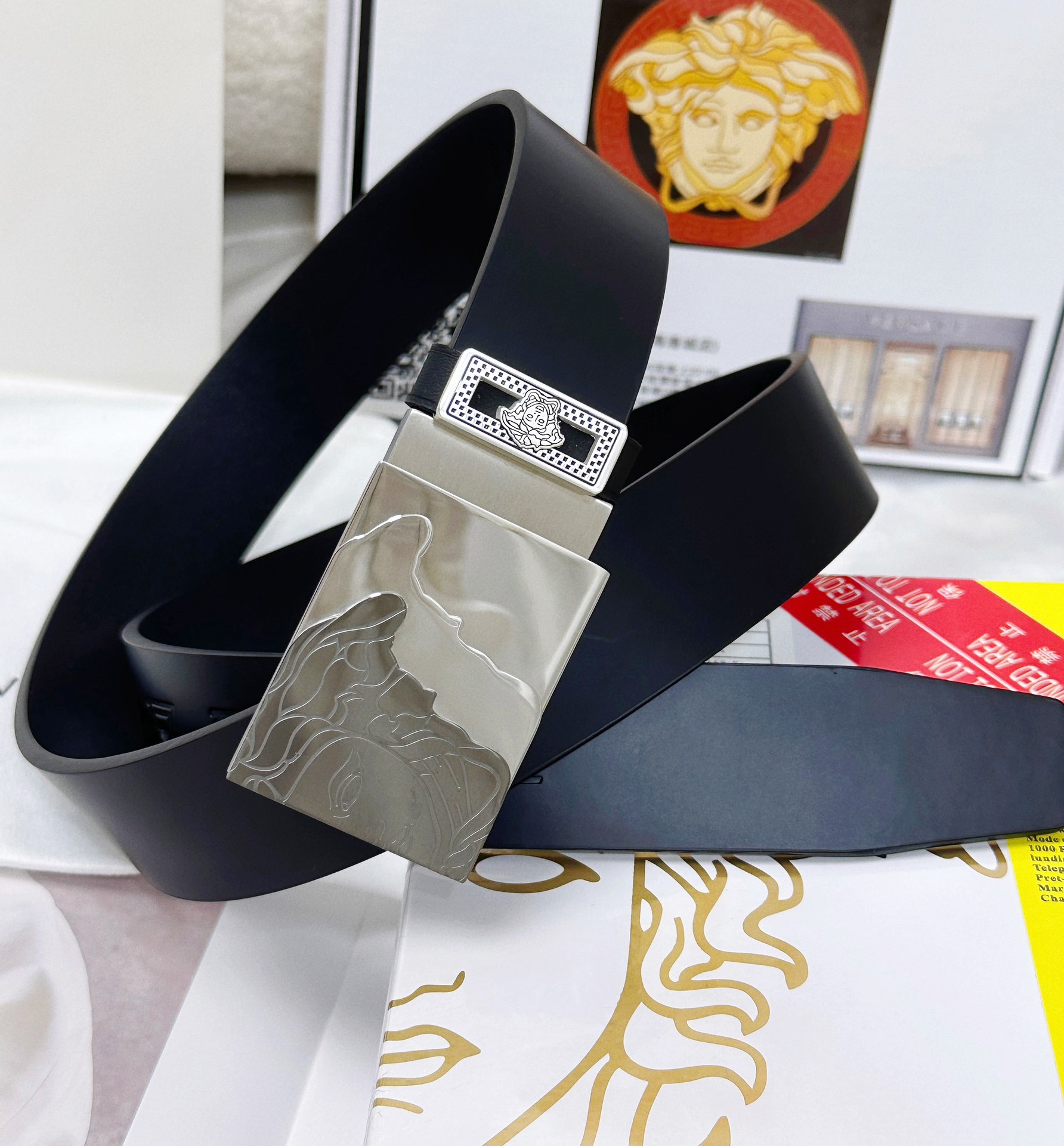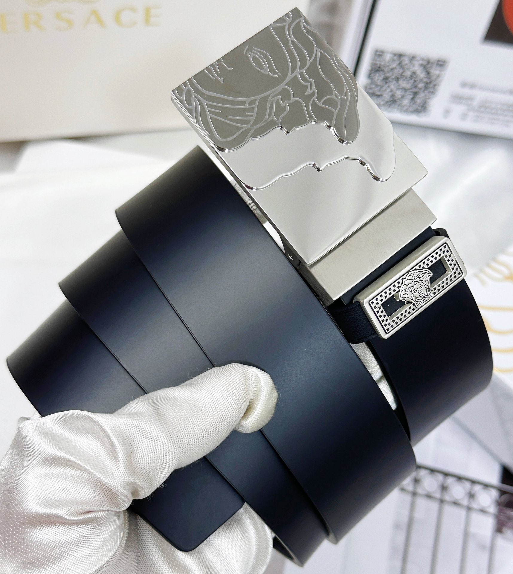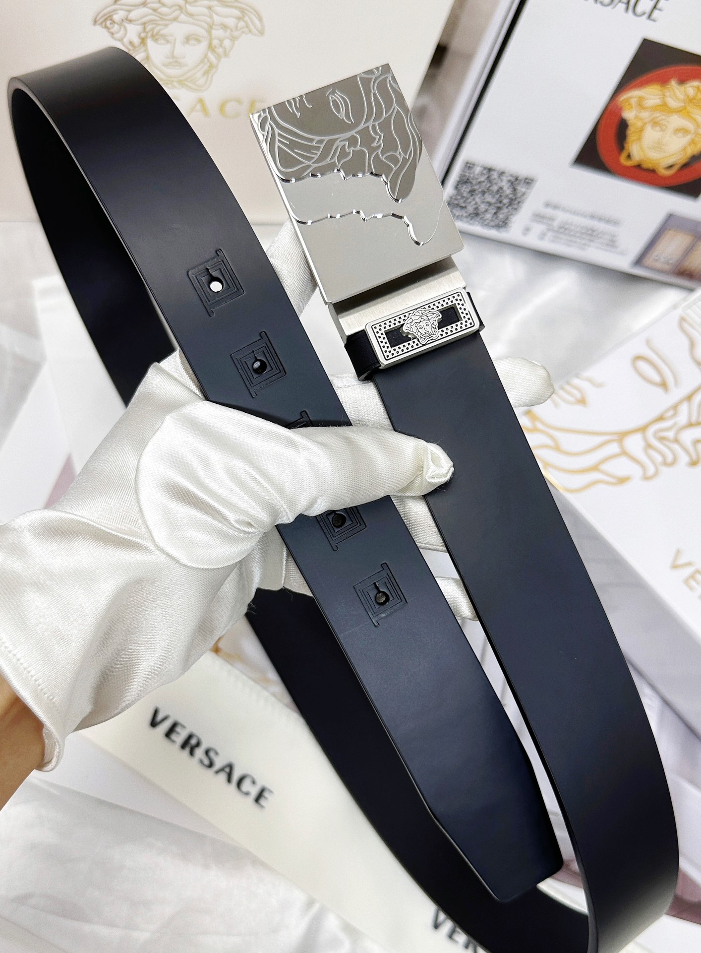 This belt is AAAAA 1:1 quality (superb). Materials used are identical to the original ones. Versace trademark marks are indistinguishable to the authentic. Photos take by actual belt, what you receive will be 100% same with our photos.
