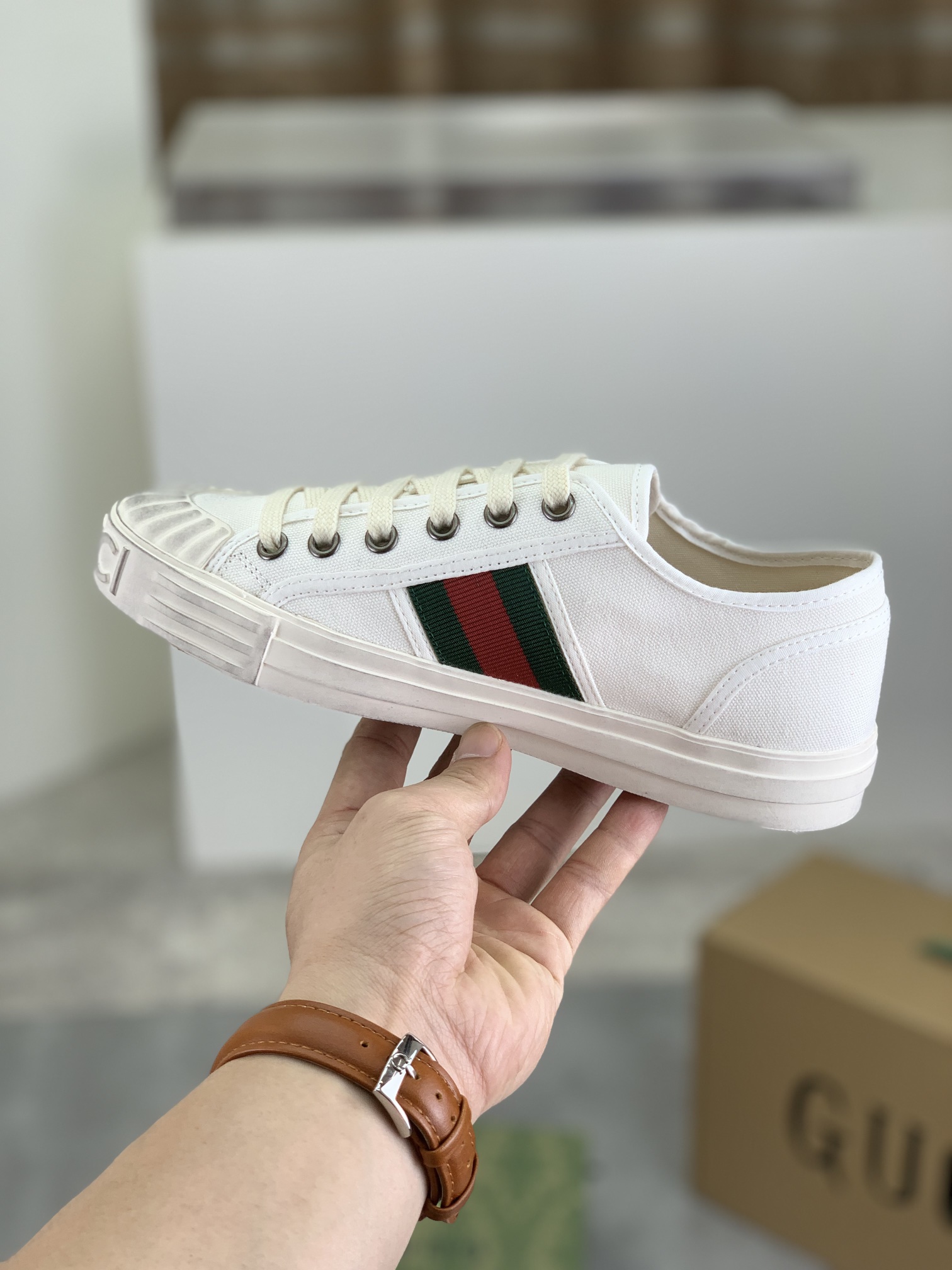 This shoes is AAAAA 1:1 quality (superb). Materials used are identical to the original ones. Gucci trademark marks are indistinguishable to the authentic. Photos take by actual shoes, what you receive will be 100% same with our photos.
