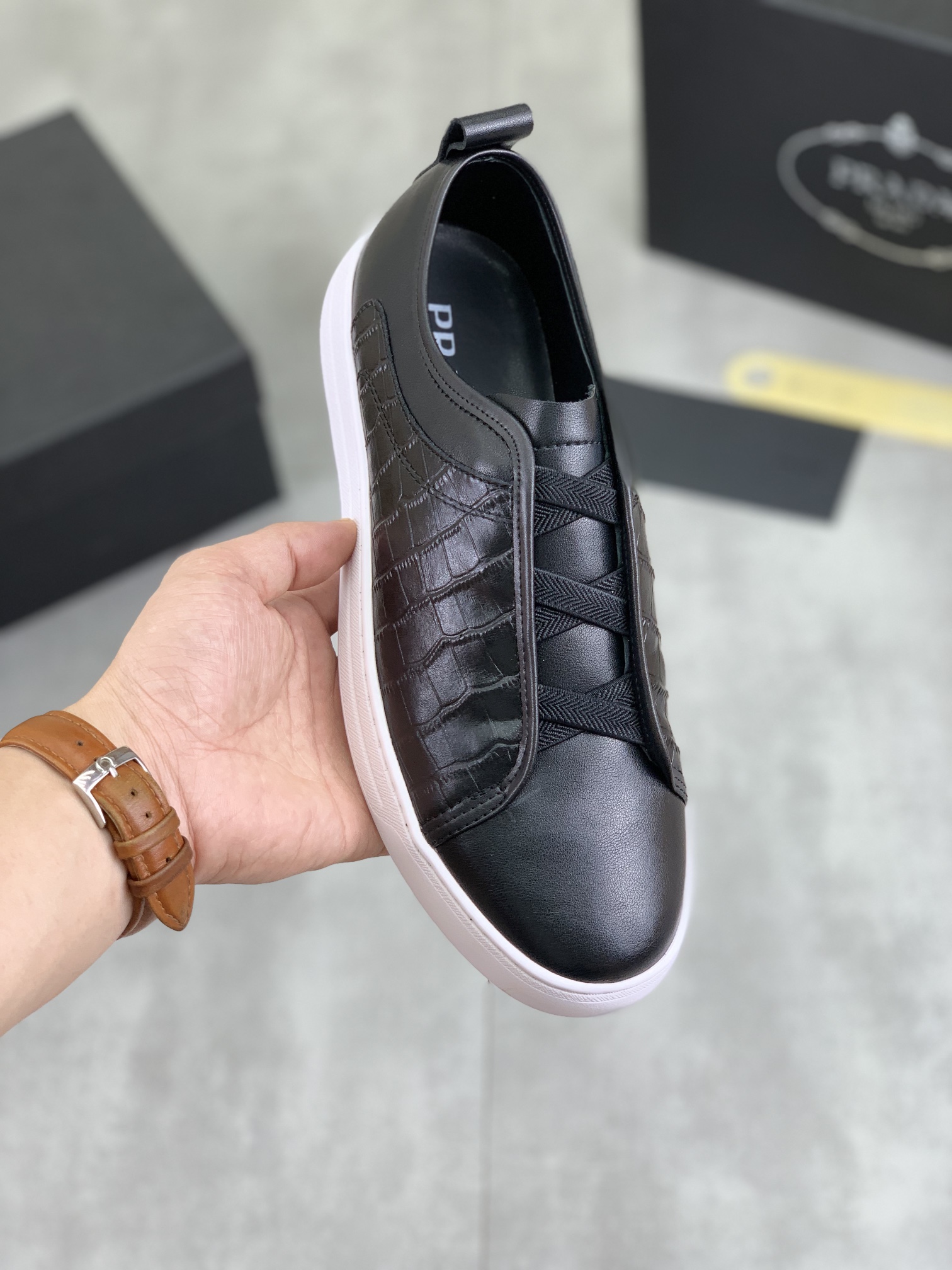 This shoes is AAAAA 1:1 quality (superb). Materials used are identical to the original ones. Prada trademark marks are indistinguishable to the authentic. Photos take by actual shoes, what you receive will be 100% same with our photos.