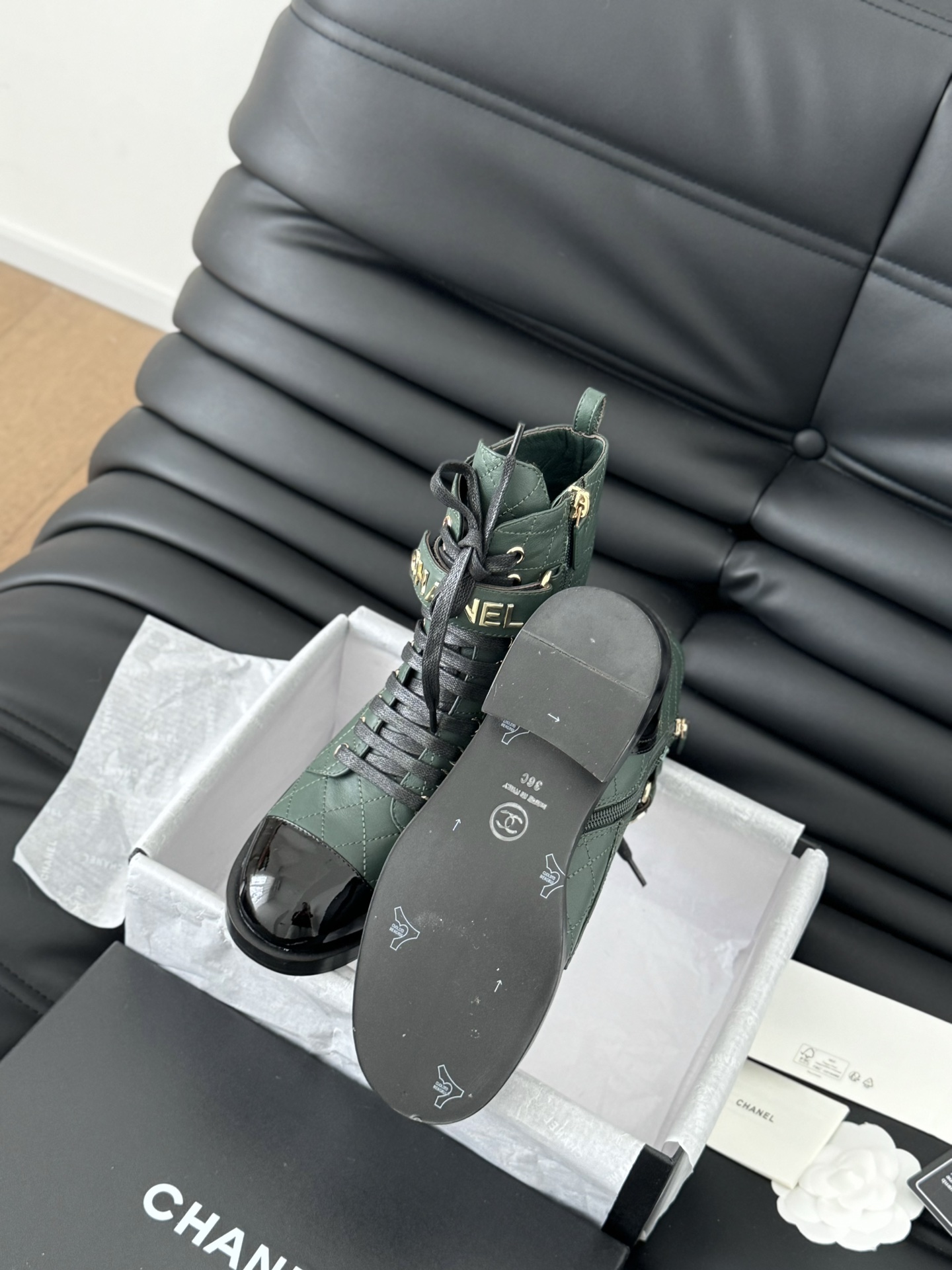 This shoes is AAAAA 1:1 quality (superb). Materials used are identical to the original ones. Chanel trademark marks are indistinguishable to the authentic. Photos take by actual shoes, what you receive will be 100% same with our photos.