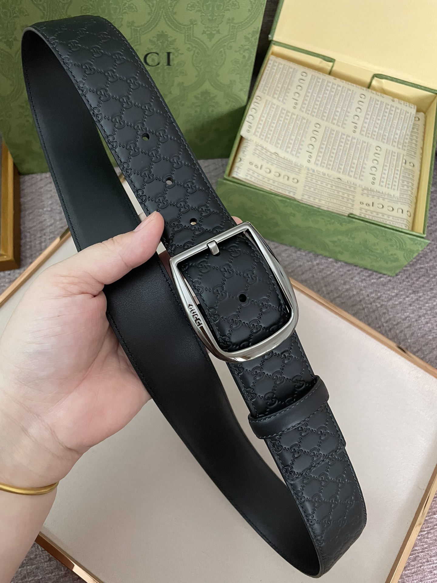 This belt is AAAAA 1:1 quality (superb). Materials used are identical to the original ones. Gucci trademark marks are indistinguishable to the authentic. Photos take by actual belt, what you receive will be 100% same with our photos.