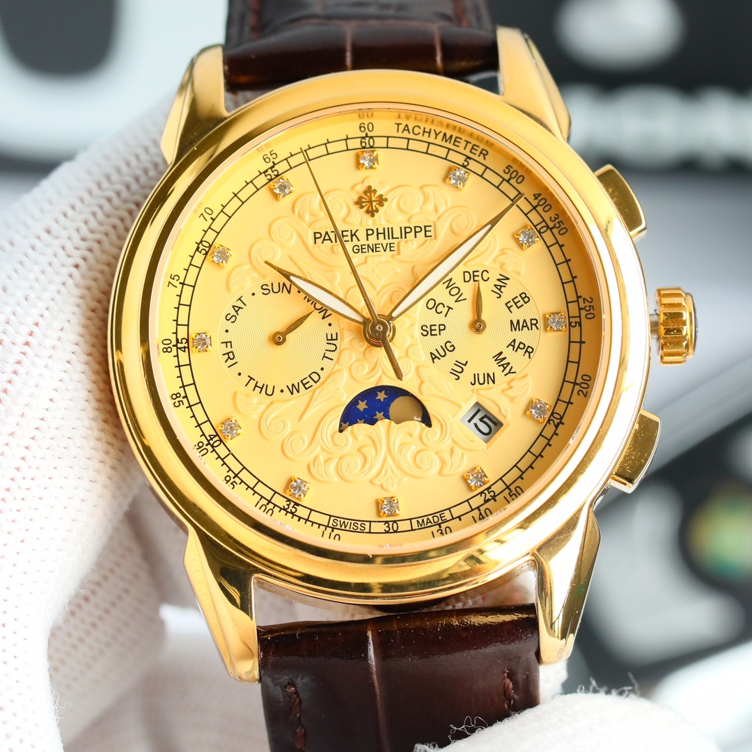 This watches is AAAAA 1:1 quality (superb). Materials used are identical to the original ones. Patek Philippe trademark marks are indistinguishable to the authentic. Photos take by actual watches, what you receive will be 100% same with our photos.