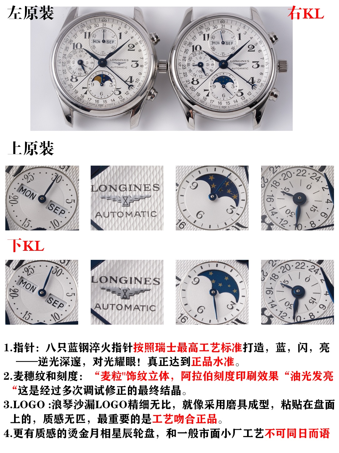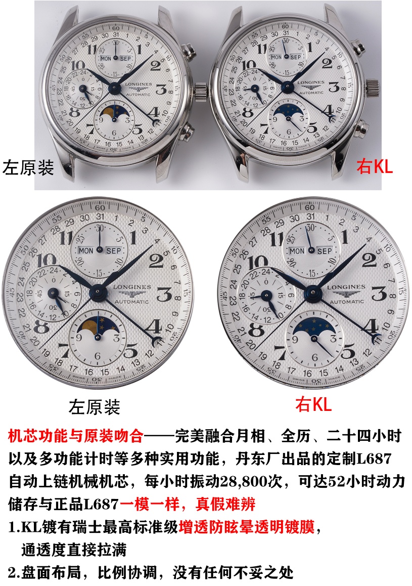 This watches is AAAAA 1:1 quality (superb). Materials used are identical to the original ones. Longines trademark marks are indistinguishable to the authentic. Photos take by actual watches, what you receive will be 100% same with our photos.