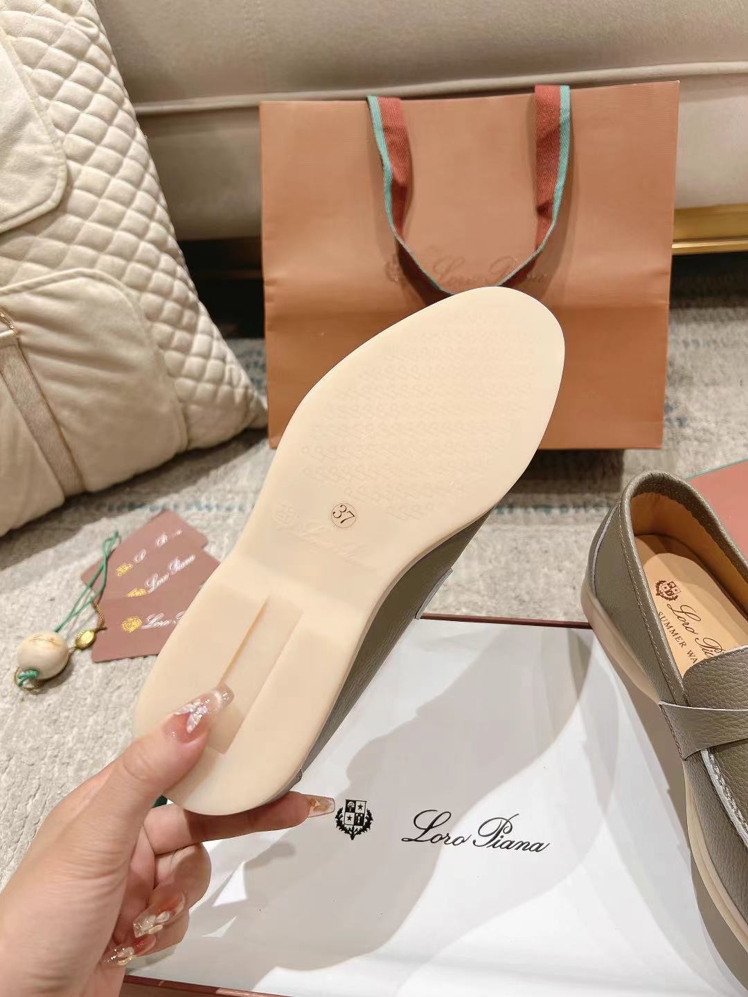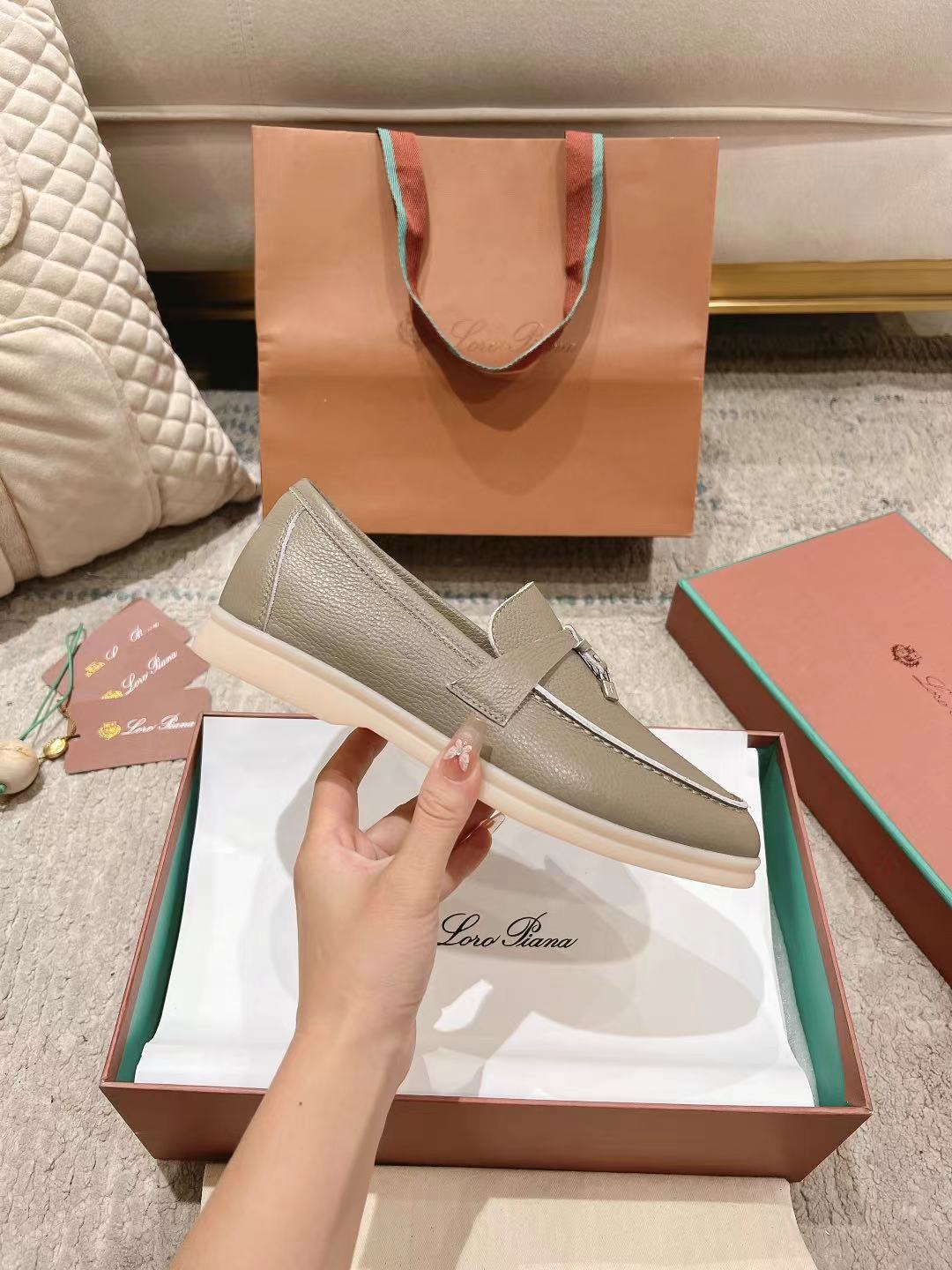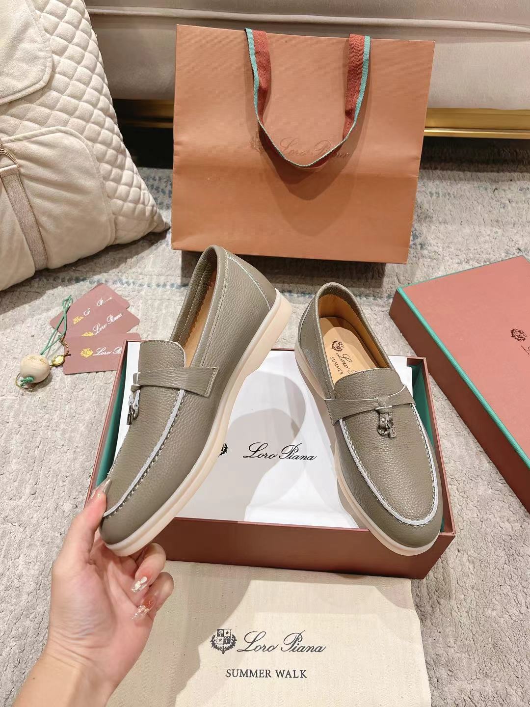 This shoes is AAAAA 1:1 quality (superb). Materials used are identical to the original ones. Loro Piana trademark marks are indistinguishable to the authentic. Photos take by actual shoes, what you receive will be 100% same with our photos.