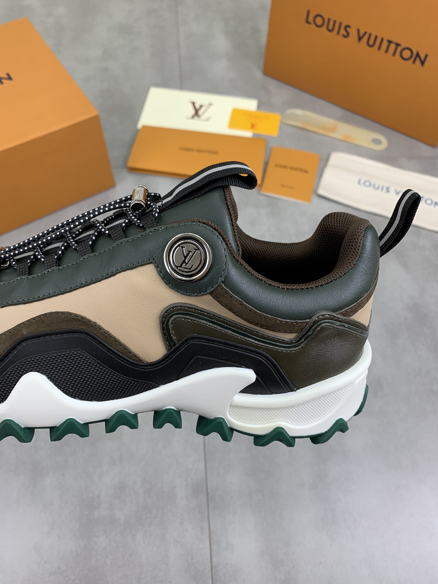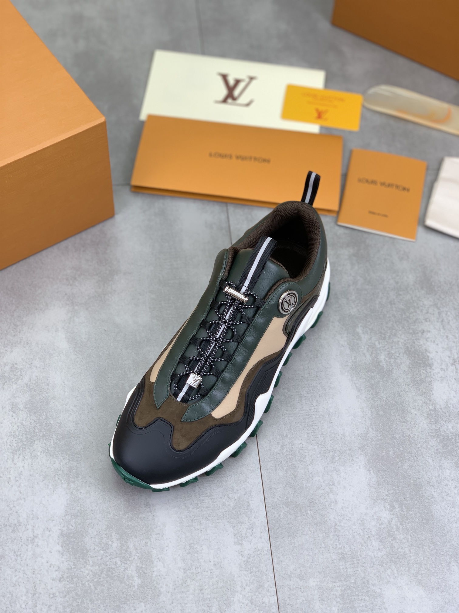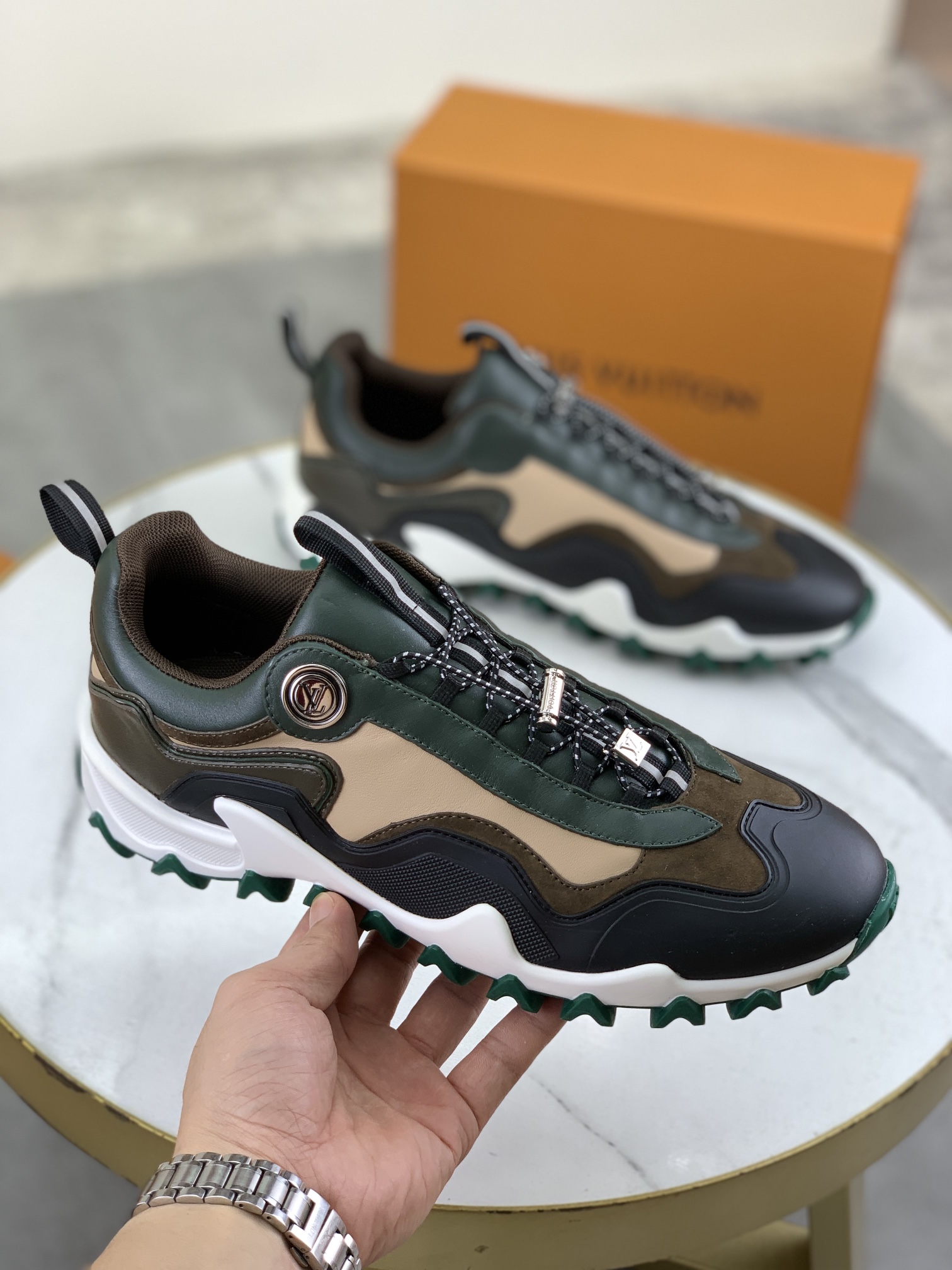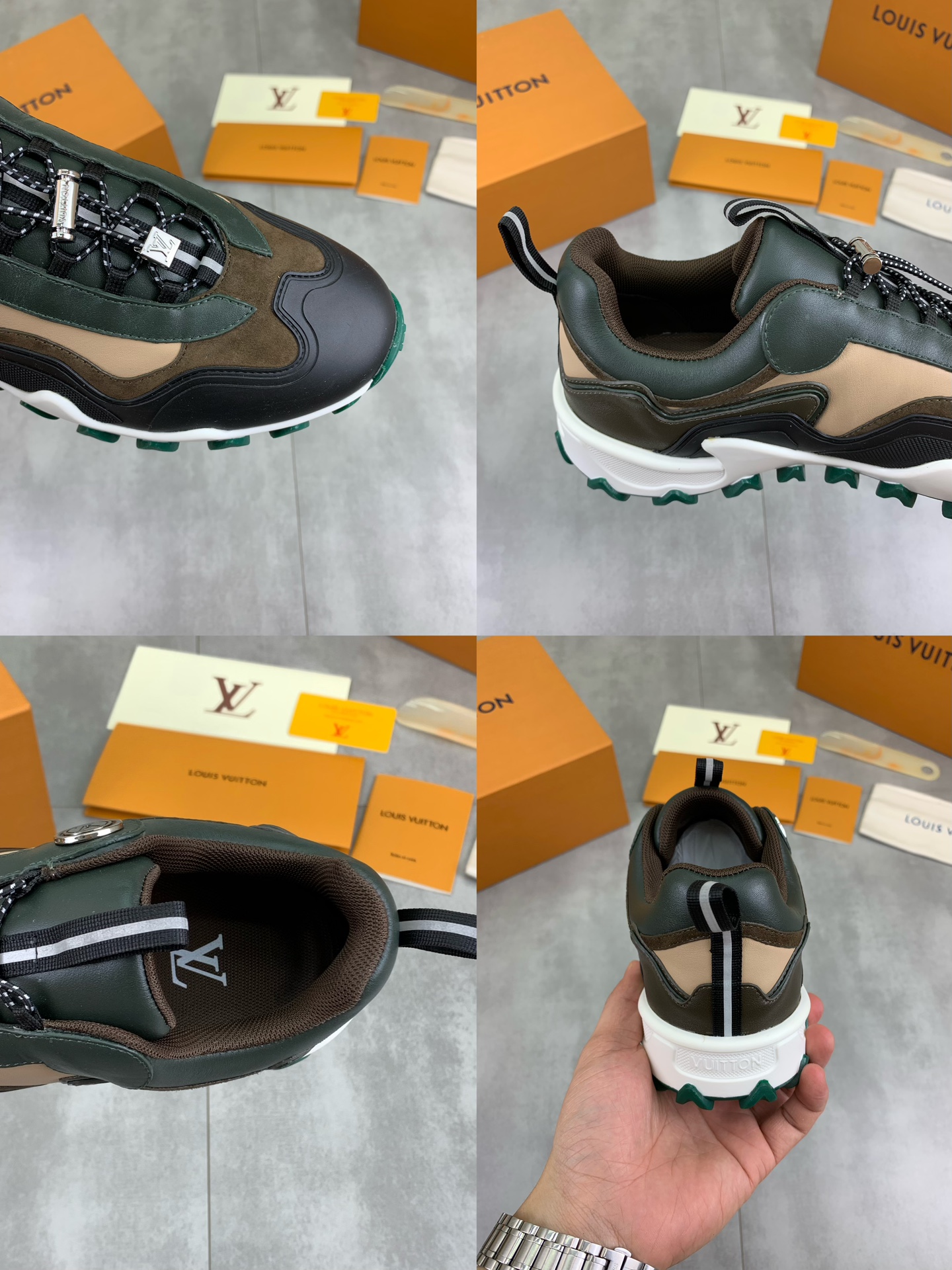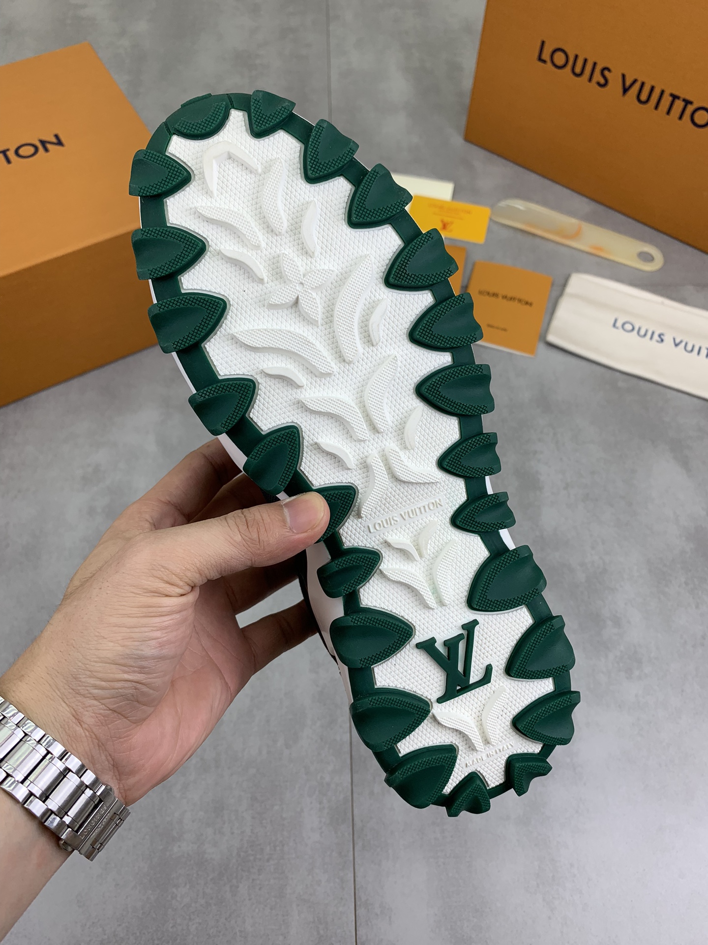 This shoes is AAAAA 1:1 quality (superb). Materials used are identical to the original ones. Louis Vuitton trademark marks are indistinguishable to the authentic. Photos take by actual shoes, what you receive will be 100% same with our photos.