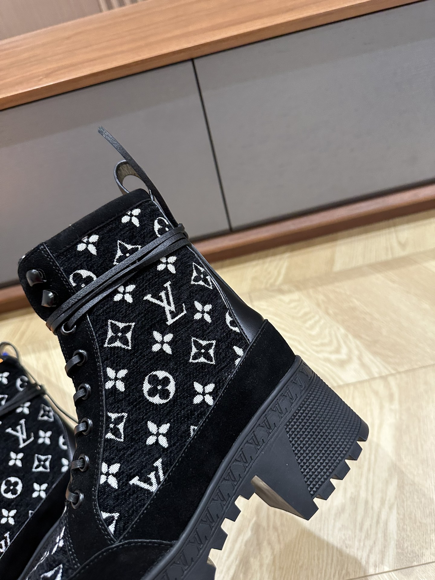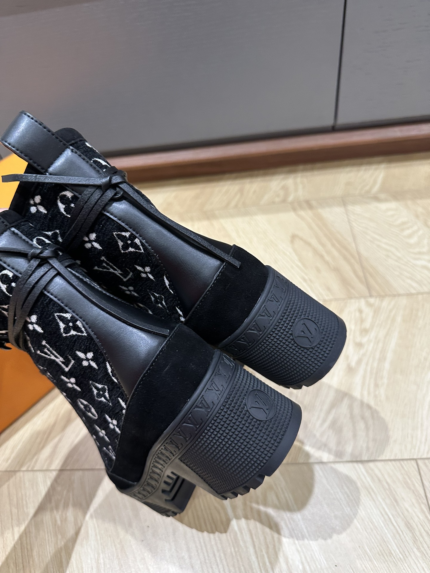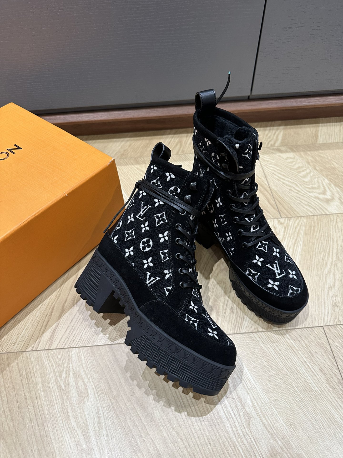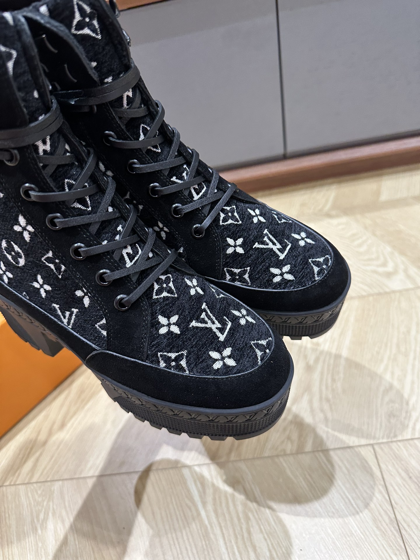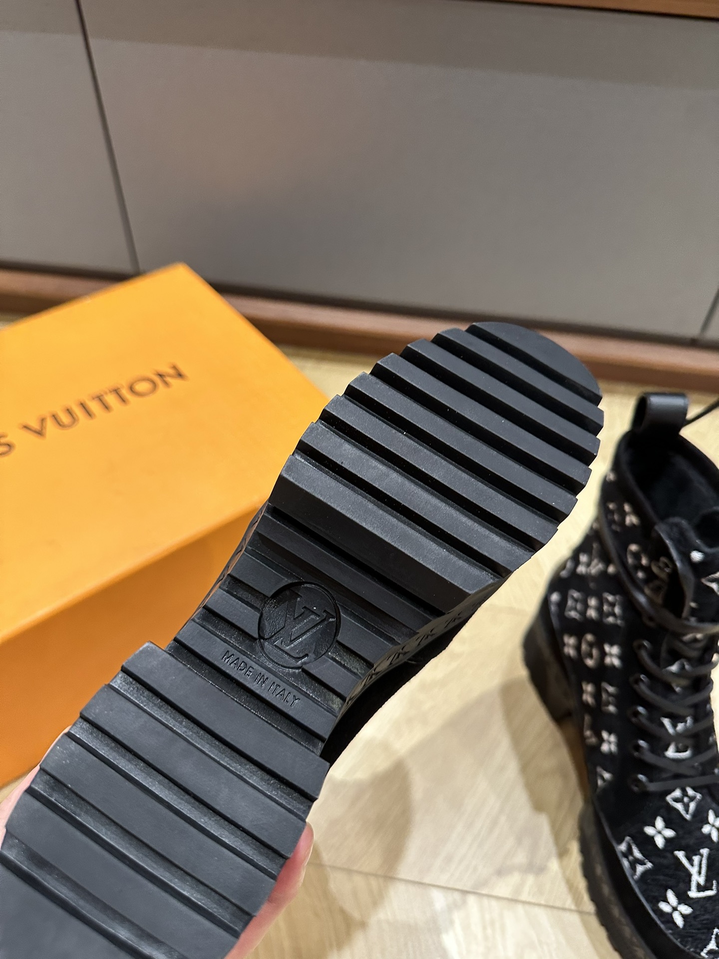 This shoes is AAAAA 1:1 quality (superb). Materials used are identical to the original ones. Louis Vuitton trademark marks are indistinguishable to the authentic. Photos take by actual shoes, what you receive will be 100% same with our photos.