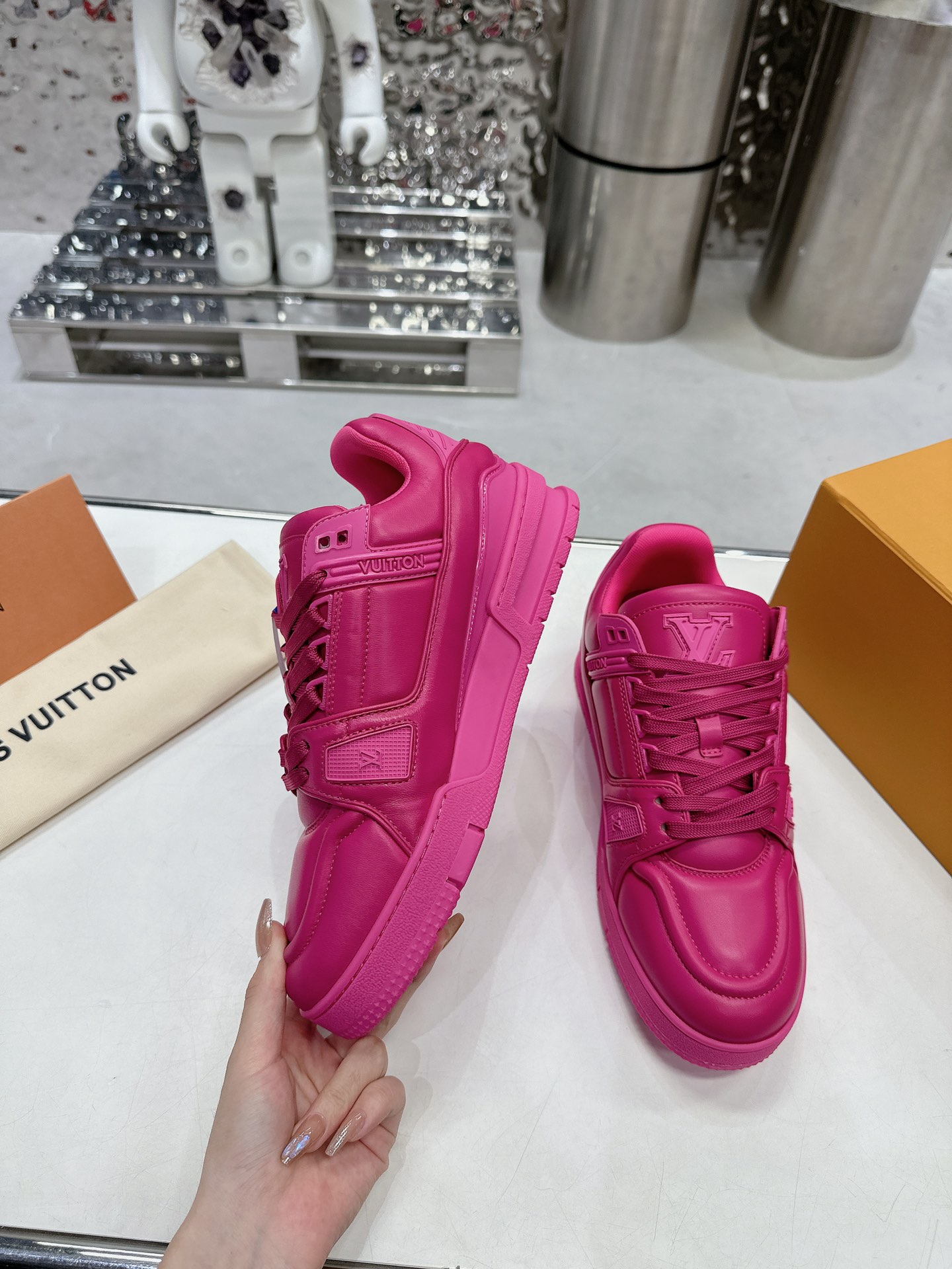 This shoes is AAAAA 1:1 quality (superb). Materials used are identical to the original ones. Louis Vuitton trademark marks are indistinguishable to the authentic. Photos take by actual shoes, what you receive will be 100% same with our photos.