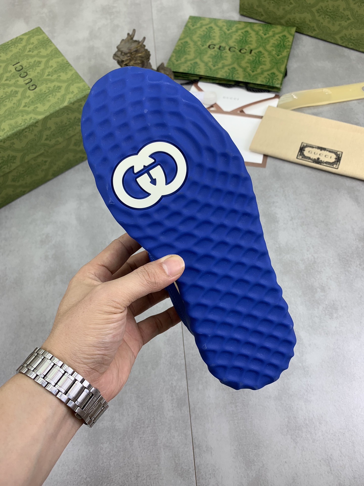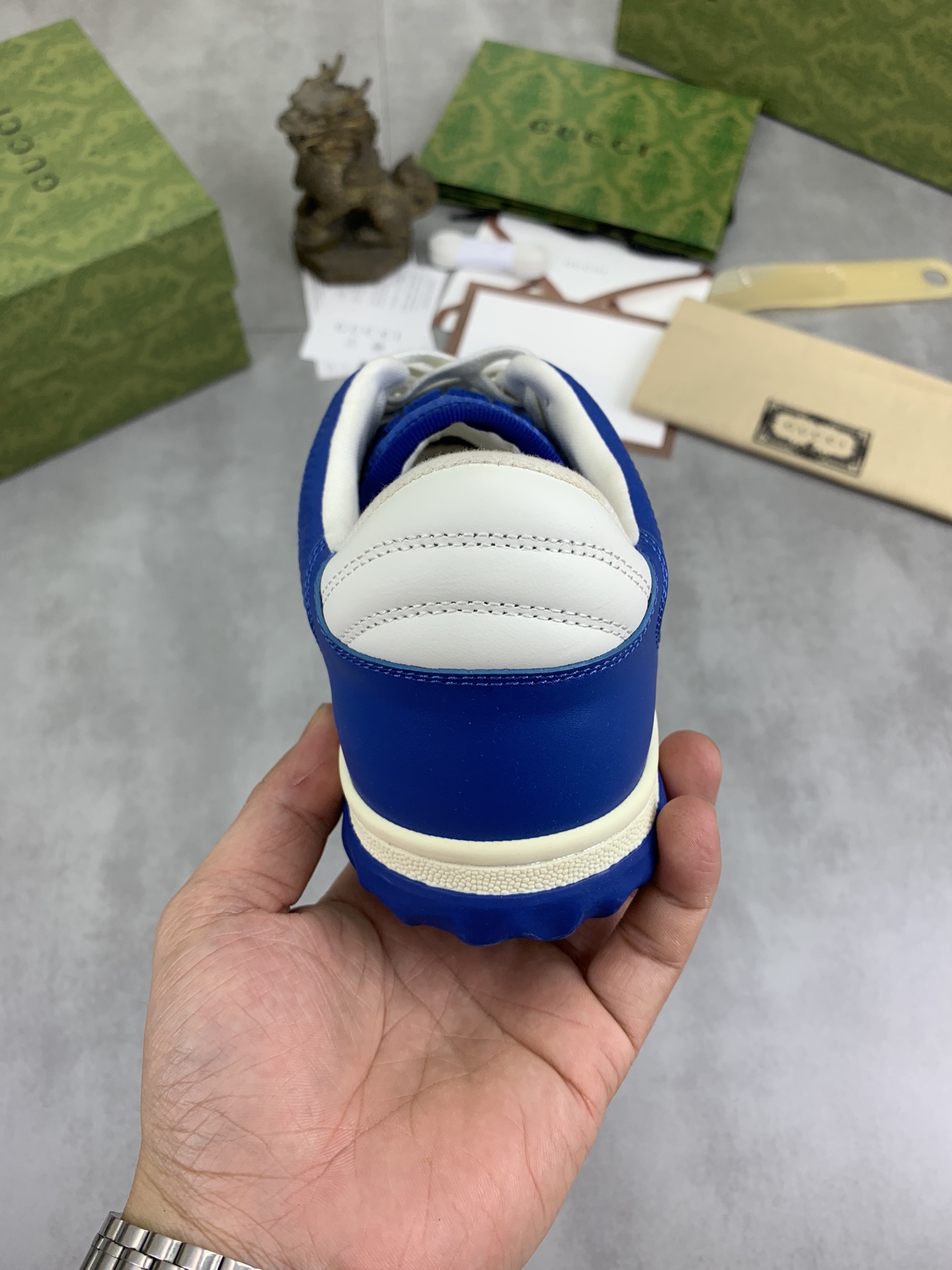 This shoes is AAAAA 1:1 quality (superb). Materials used are identical to the original ones. Gucci trademark marks are indistinguishable to the authentic. Photos take by actual shoes, what you receive will be 100% same with our photos.