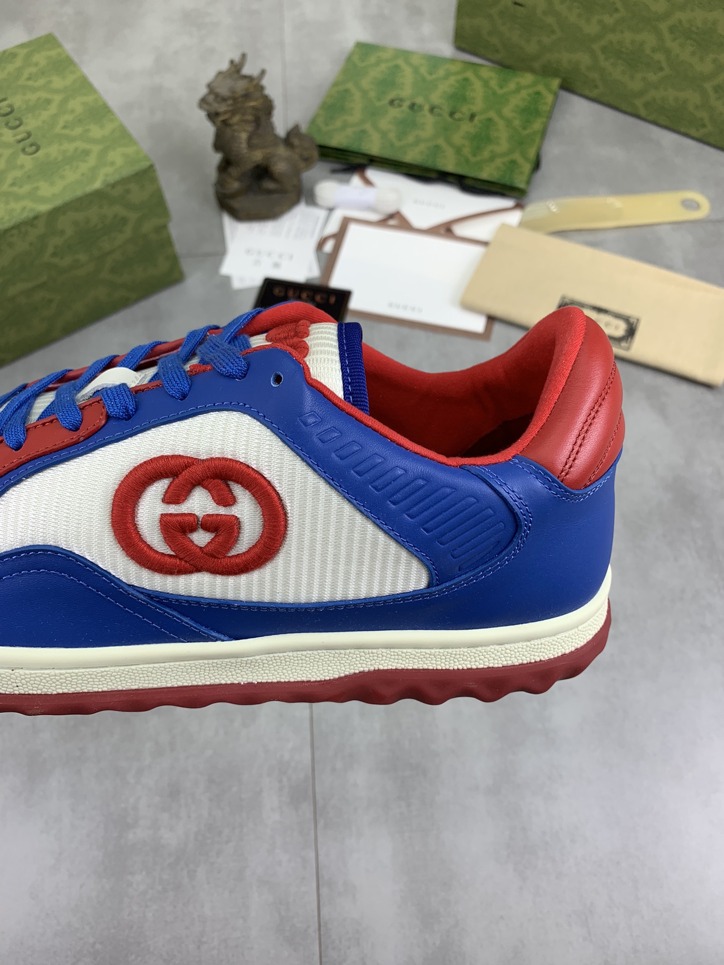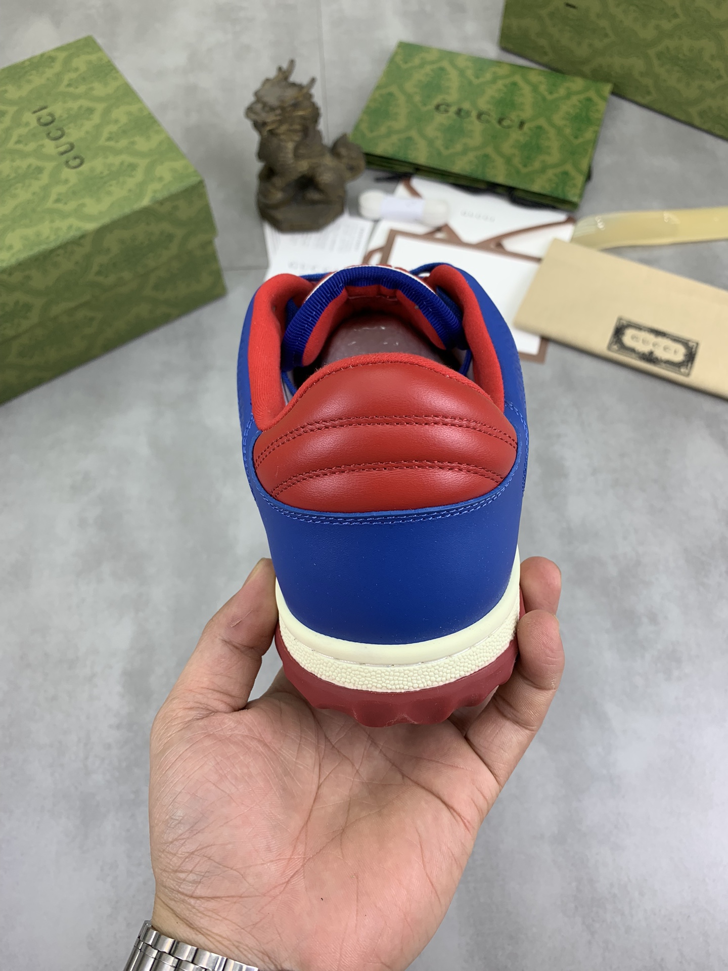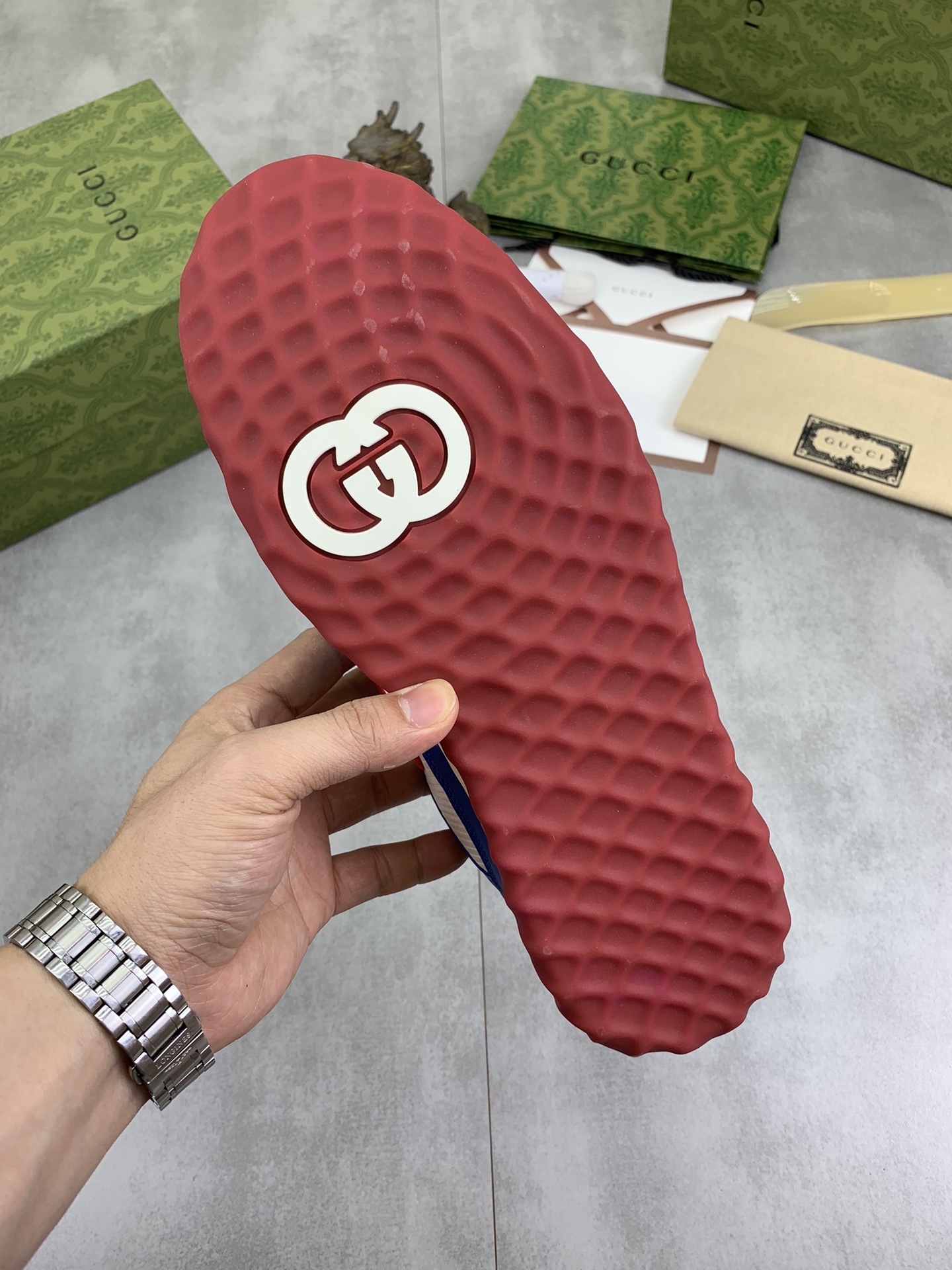 This shoes is AAAAA 1:1 quality (superb). Materials used are identical to the original ones. Gucci trademark marks are indistinguishable to the authentic. Photos take by actual shoes, what you receive will be 100% same with our photos.