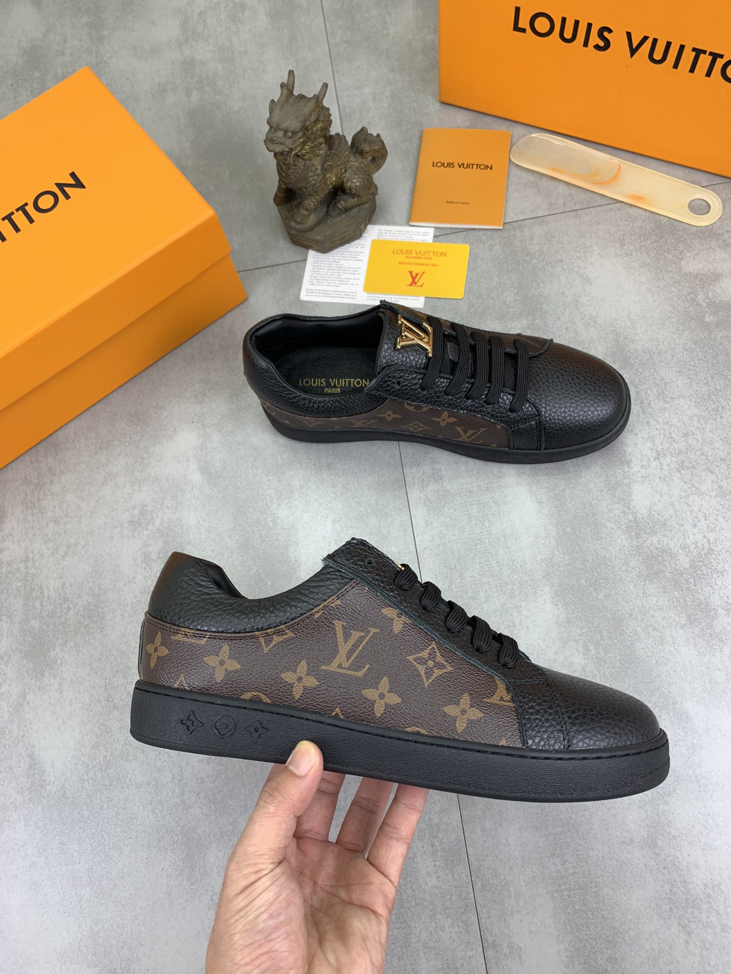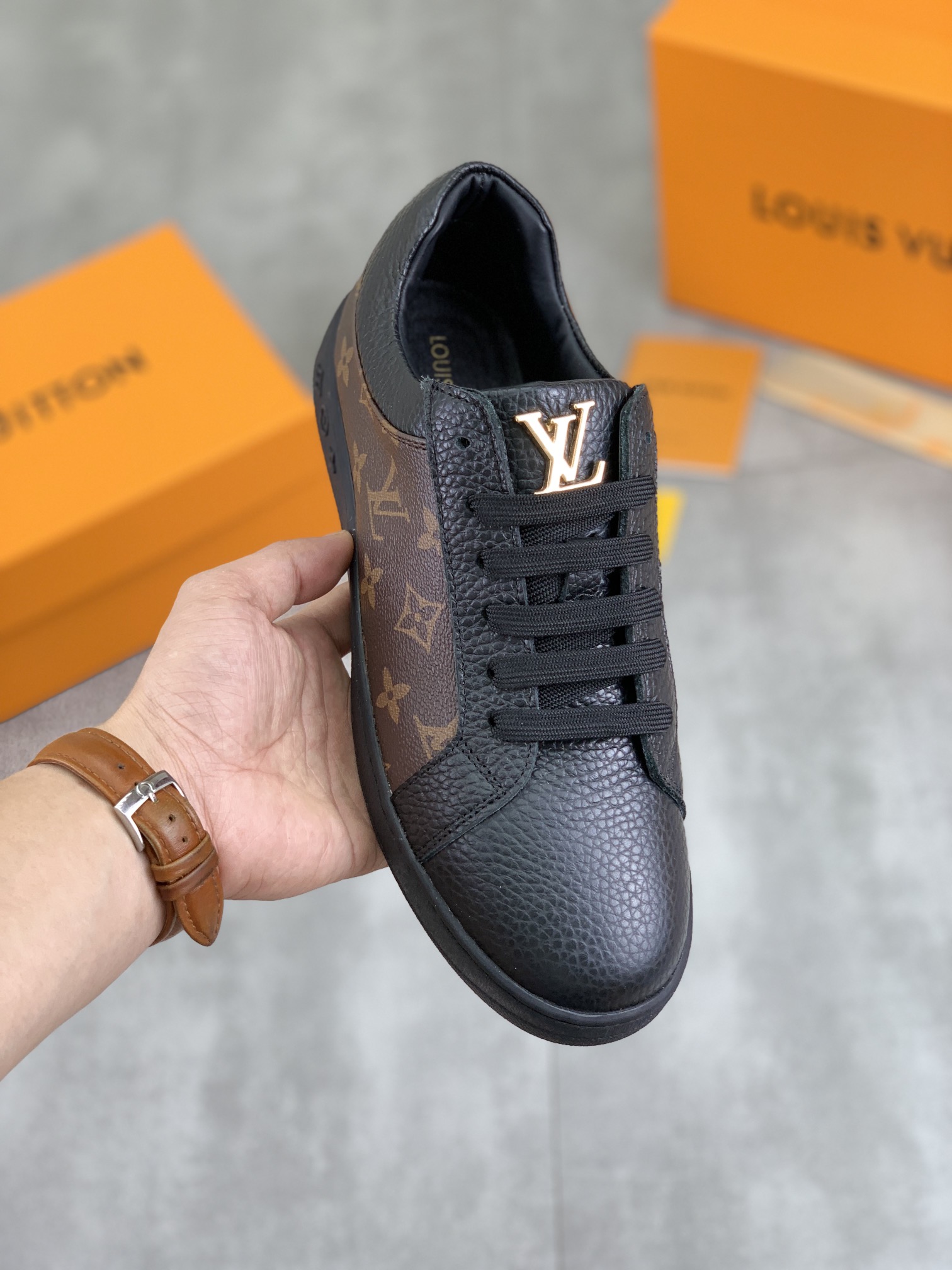 This shoes is AAAAA 1:1 quality (superb). Materials used are identical to the original ones. Louis Vuitton trademark marks are indistinguishable to the authentic. Photos take by actual shoes, what you receive will be 100% same with our photos.