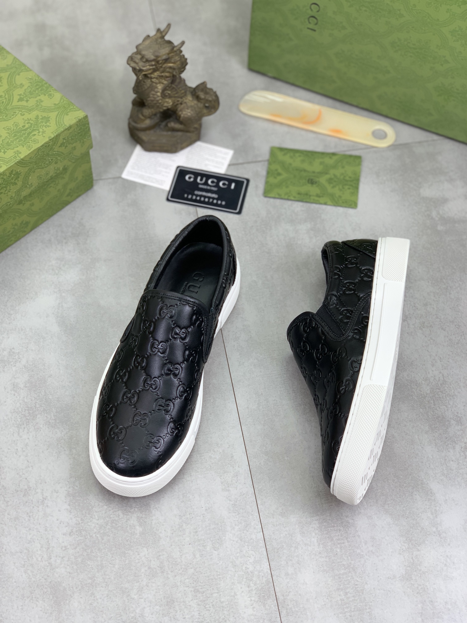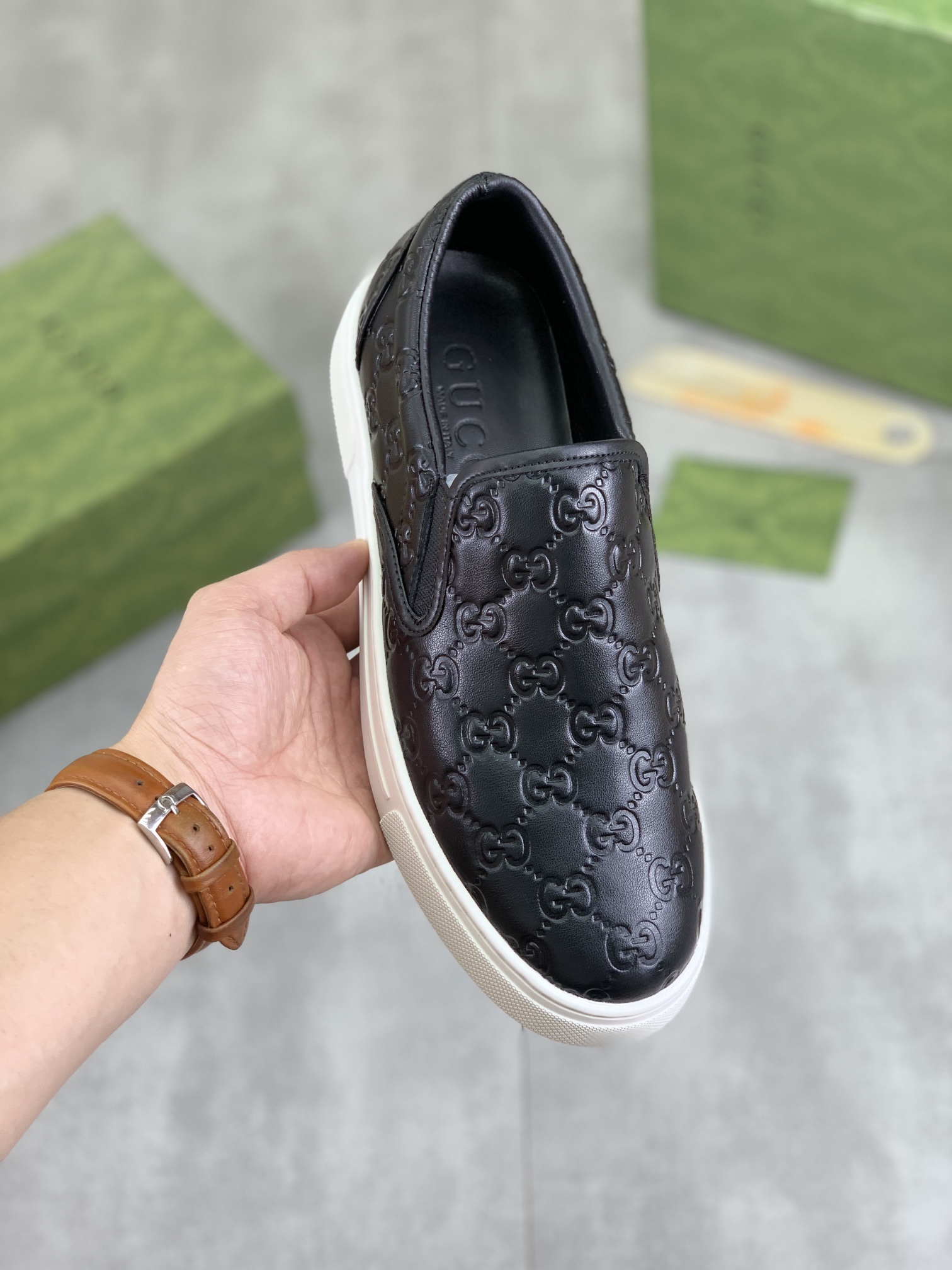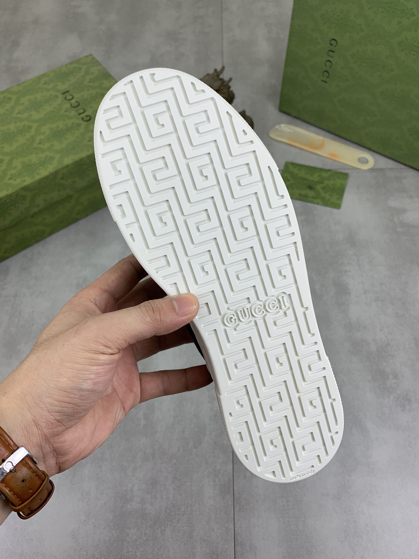 This shoes is AAAAA 1:1 quality (superb). Materials used are identical to the original ones. Gucci trademark marks are indistinguishable to the authentic. Photos take by actual shoes, what you receive will be 100% same with our photos.
