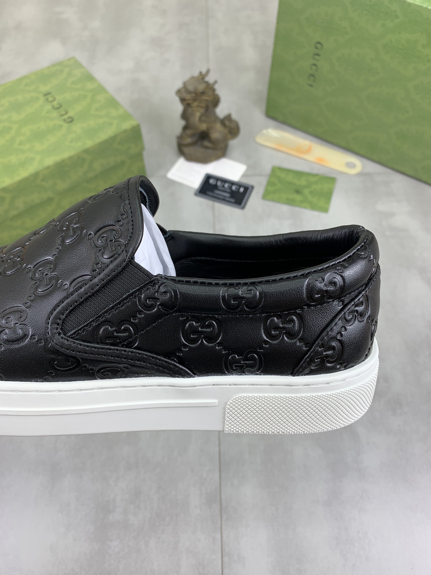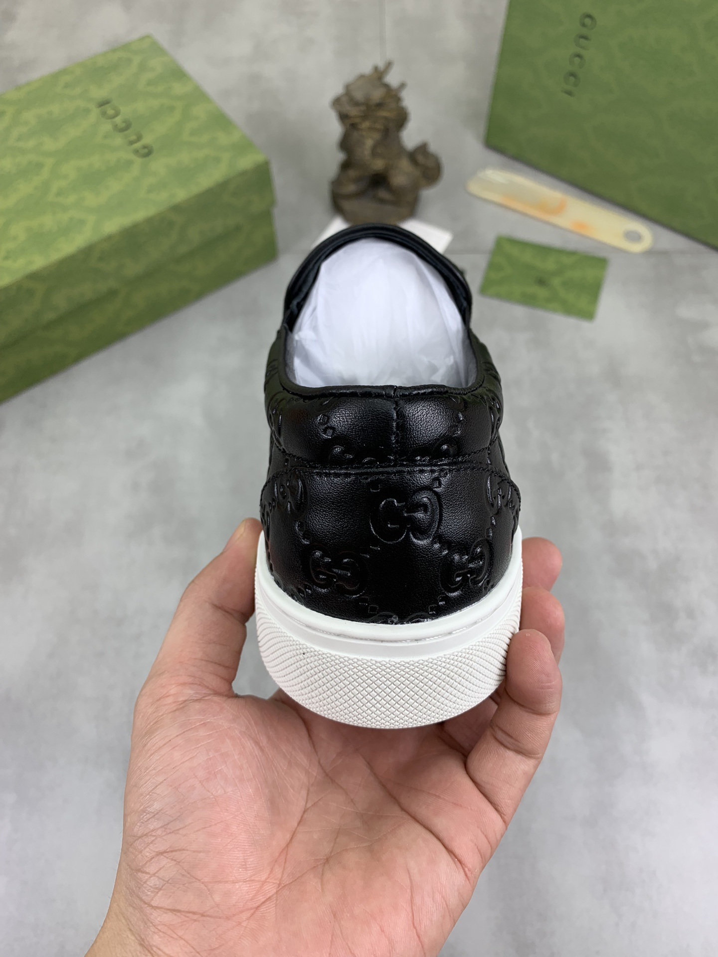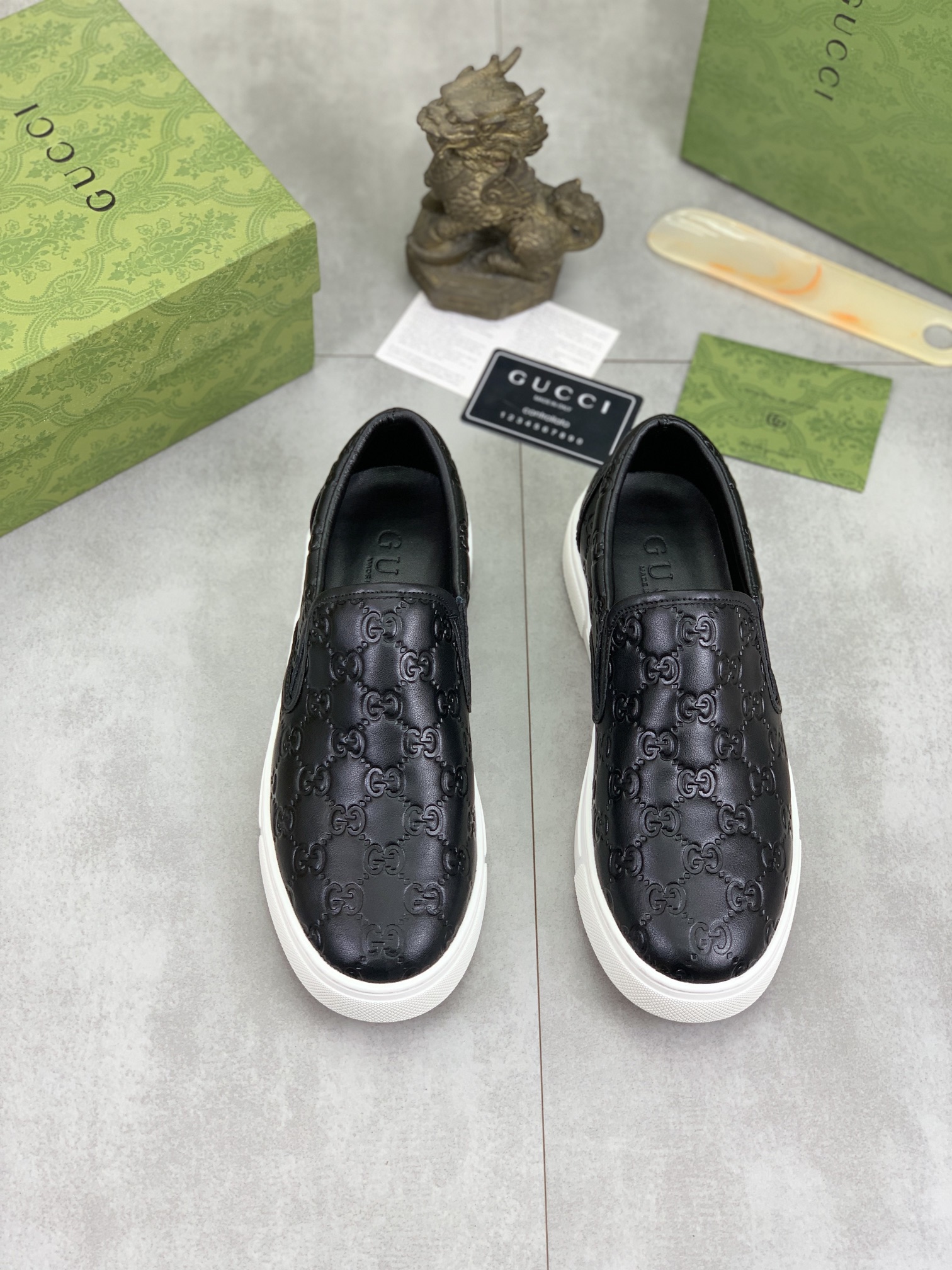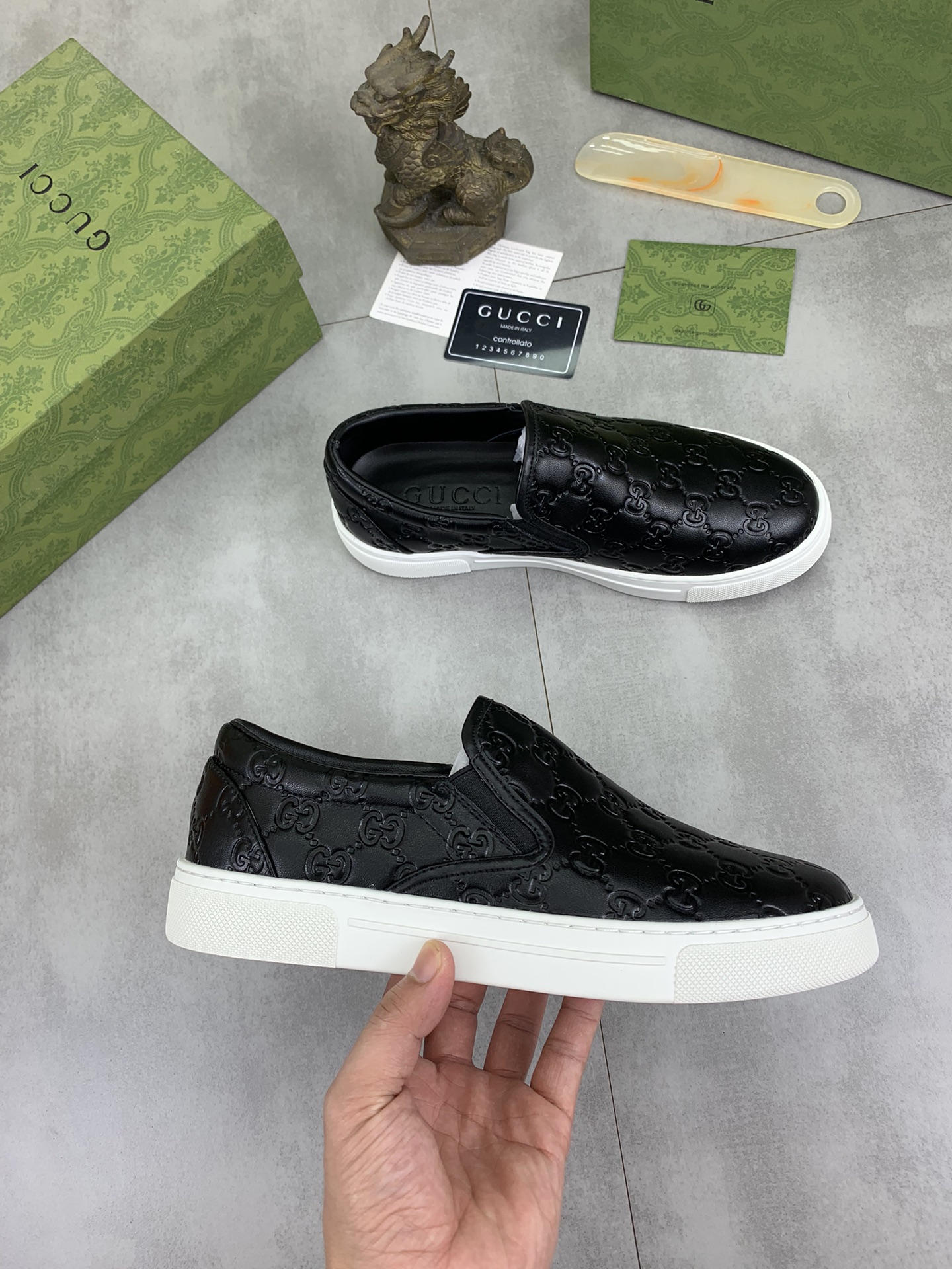 This shoes is AAAAA 1:1 quality (superb). Materials used are identical to the original ones. Gucci trademark marks are indistinguishable to the authentic. Photos take by actual shoes, what you receive will be 100% same with our photos.