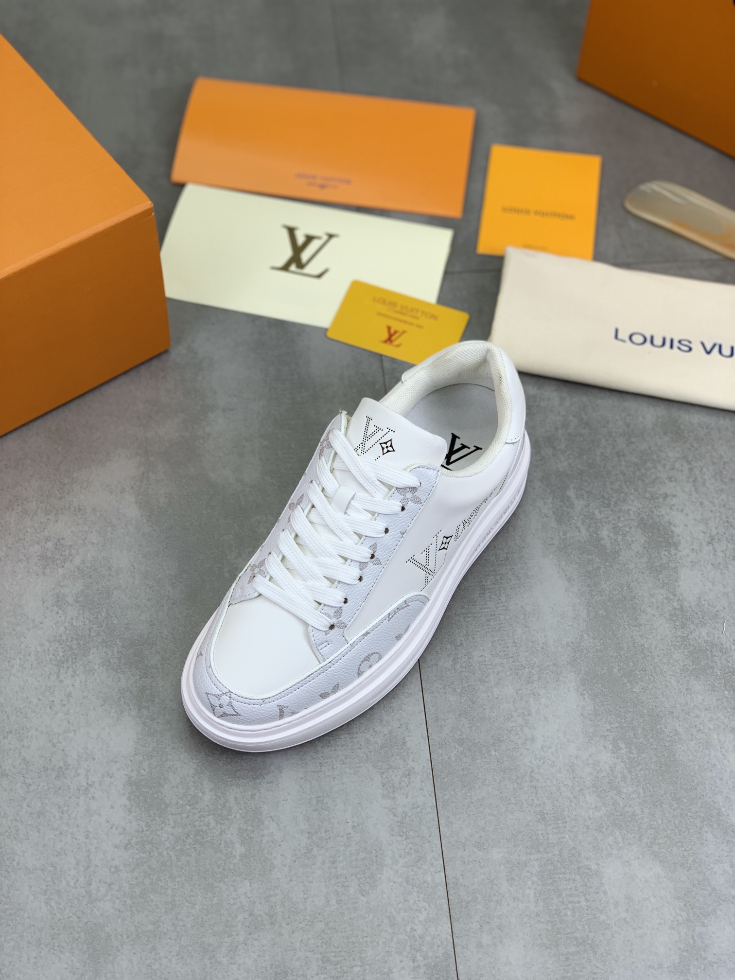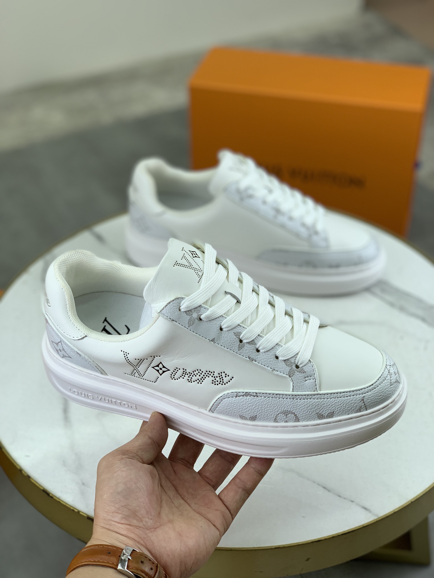This shoes is AAAAA 1:1 quality (superb). Materials used are identical to the original ones. Louis Vuitton trademark marks are indistinguishable to the authentic. Photos take by actual shoes, what you receive will be 100% same with our photos.