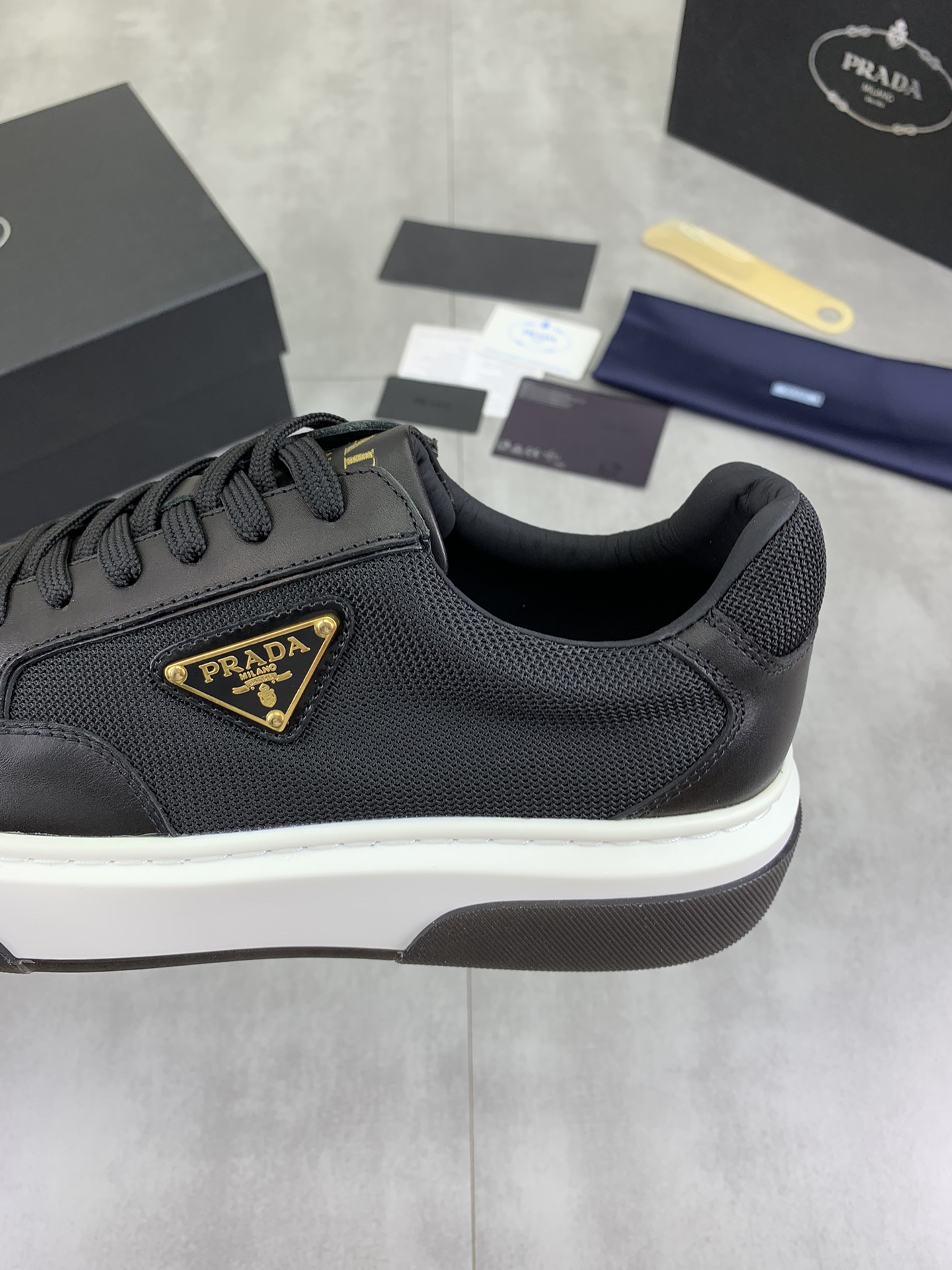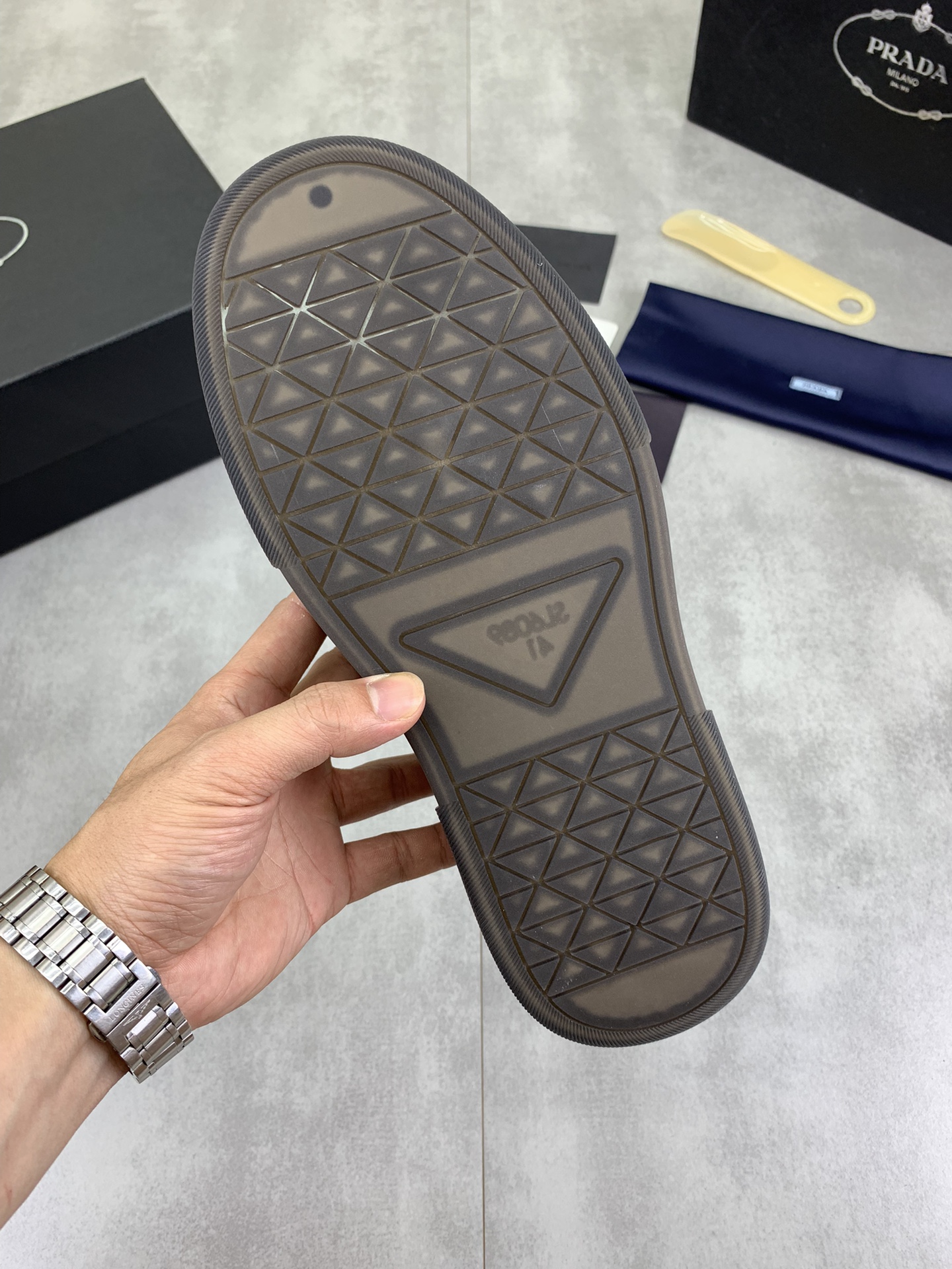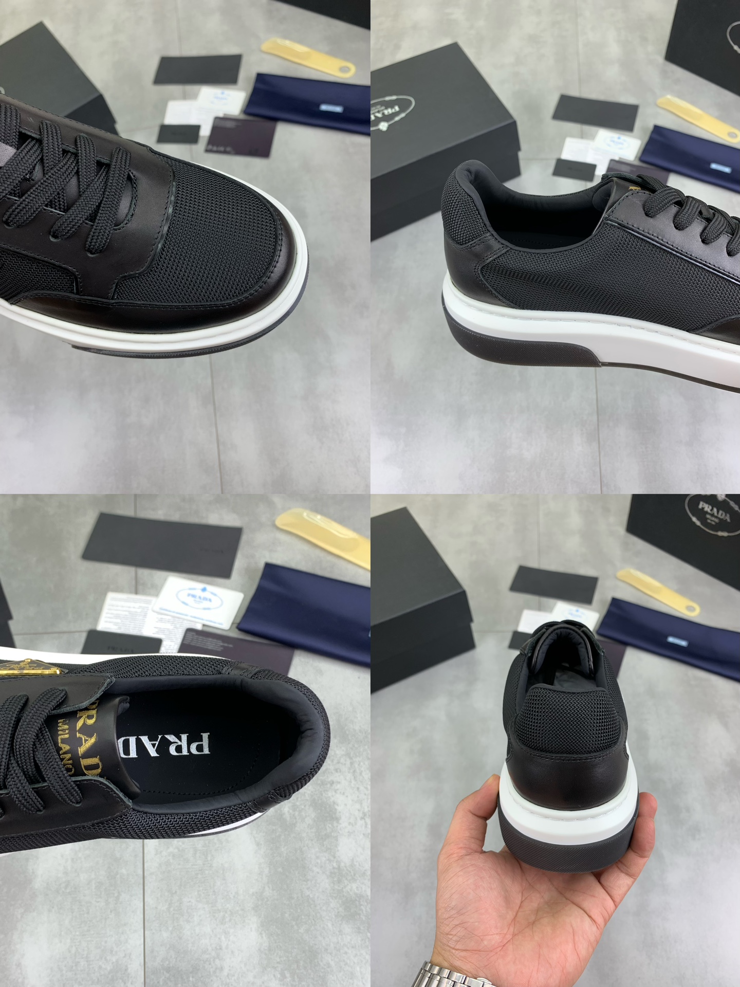 This shoes is AAAAA 1:1 quality (superb). Materials used are identical to the original ones. Prada trademark marks are indistinguishable to the authentic. Photos take by actual shoes, what you receive will be 100% same with our photos.