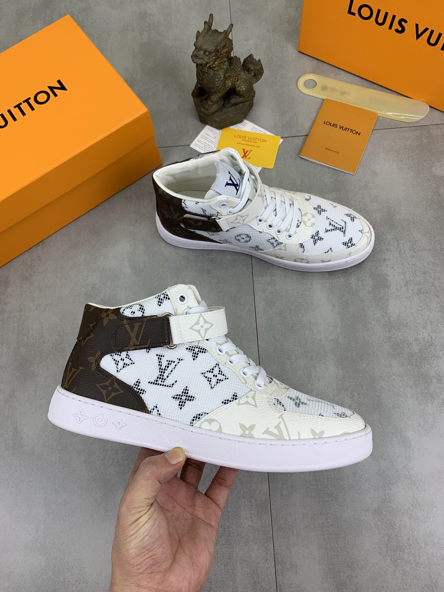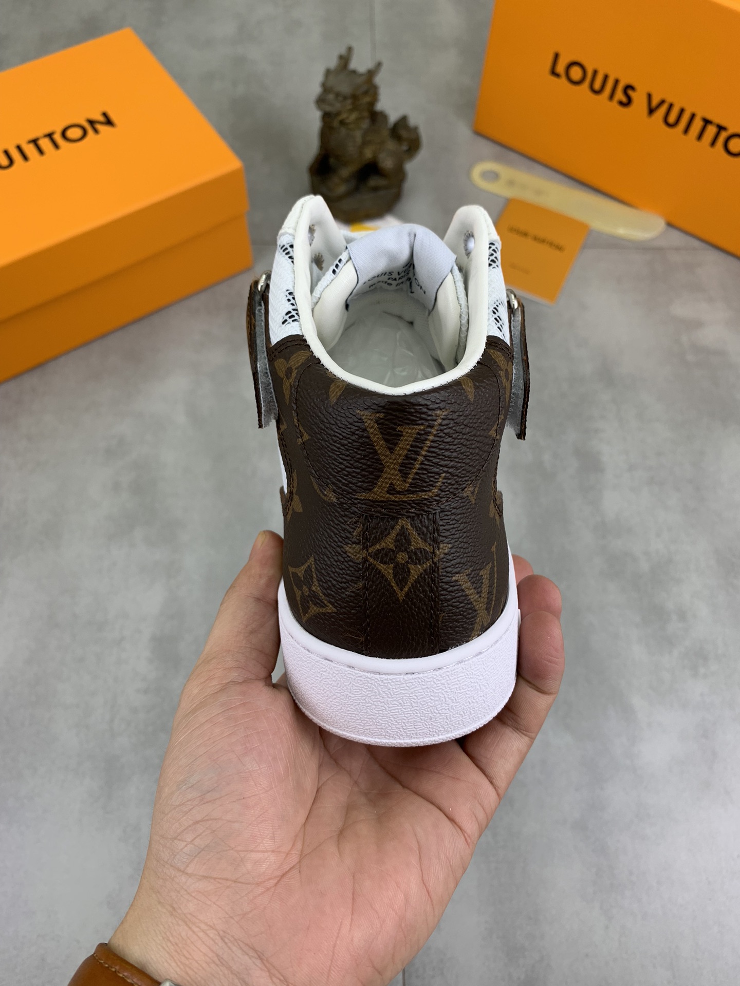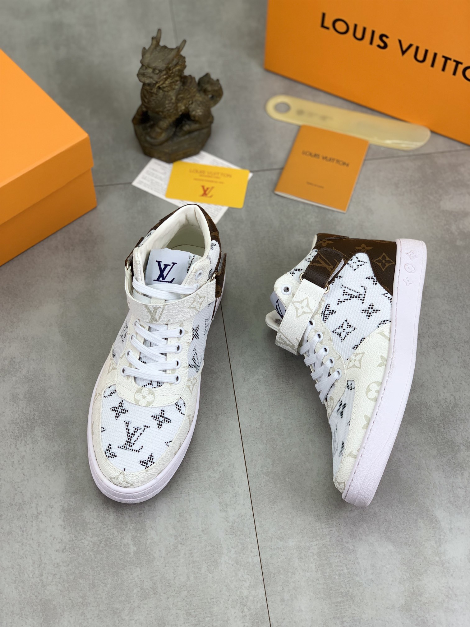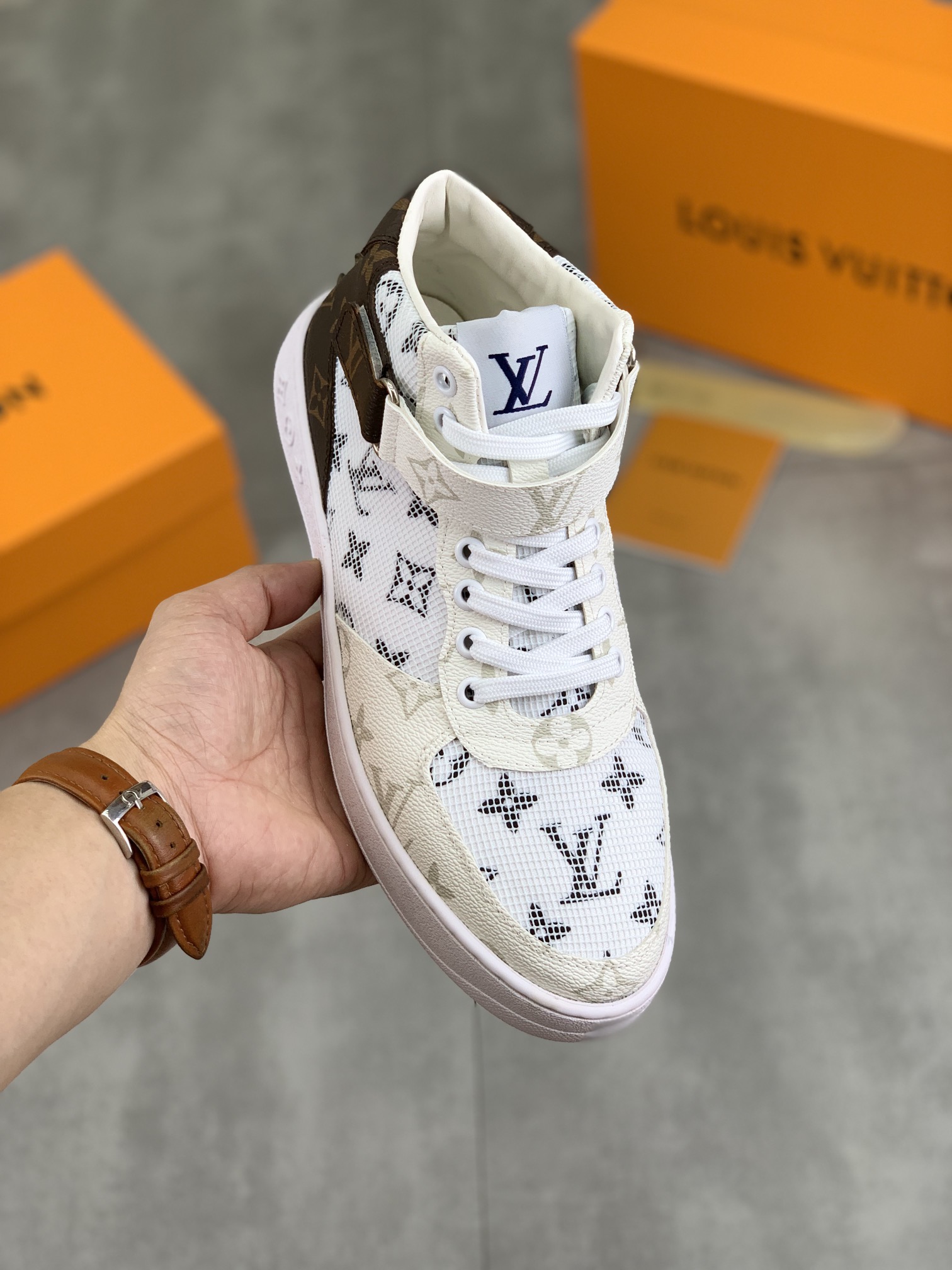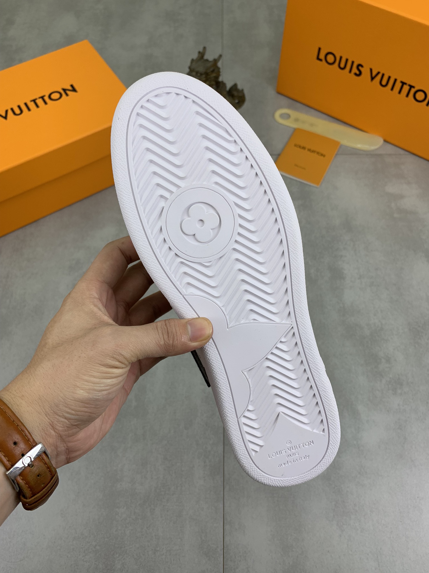 This shoes is AAAAA 1:1 quality (superb). Materials used are identical to the original ones. Louis Vuitton trademark marks are indistinguishable to the authentic. Photos take by actual shoes, what you receive will be 100% same with our photos.