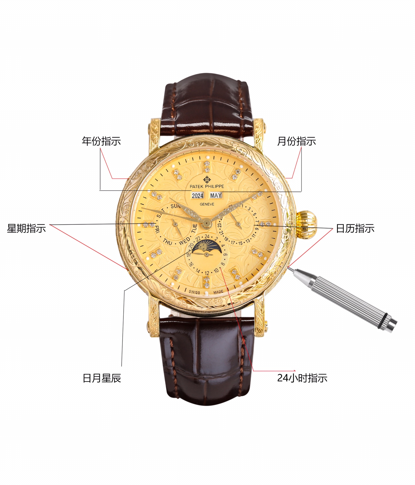 This watches is AAAAA 1:1 quality (superb). Materials used are identical to the original ones. Patek Philippe trademark marks are indistinguishable to the authentic. Photos take by actual watches, what you receive will be 100% same with our photos.