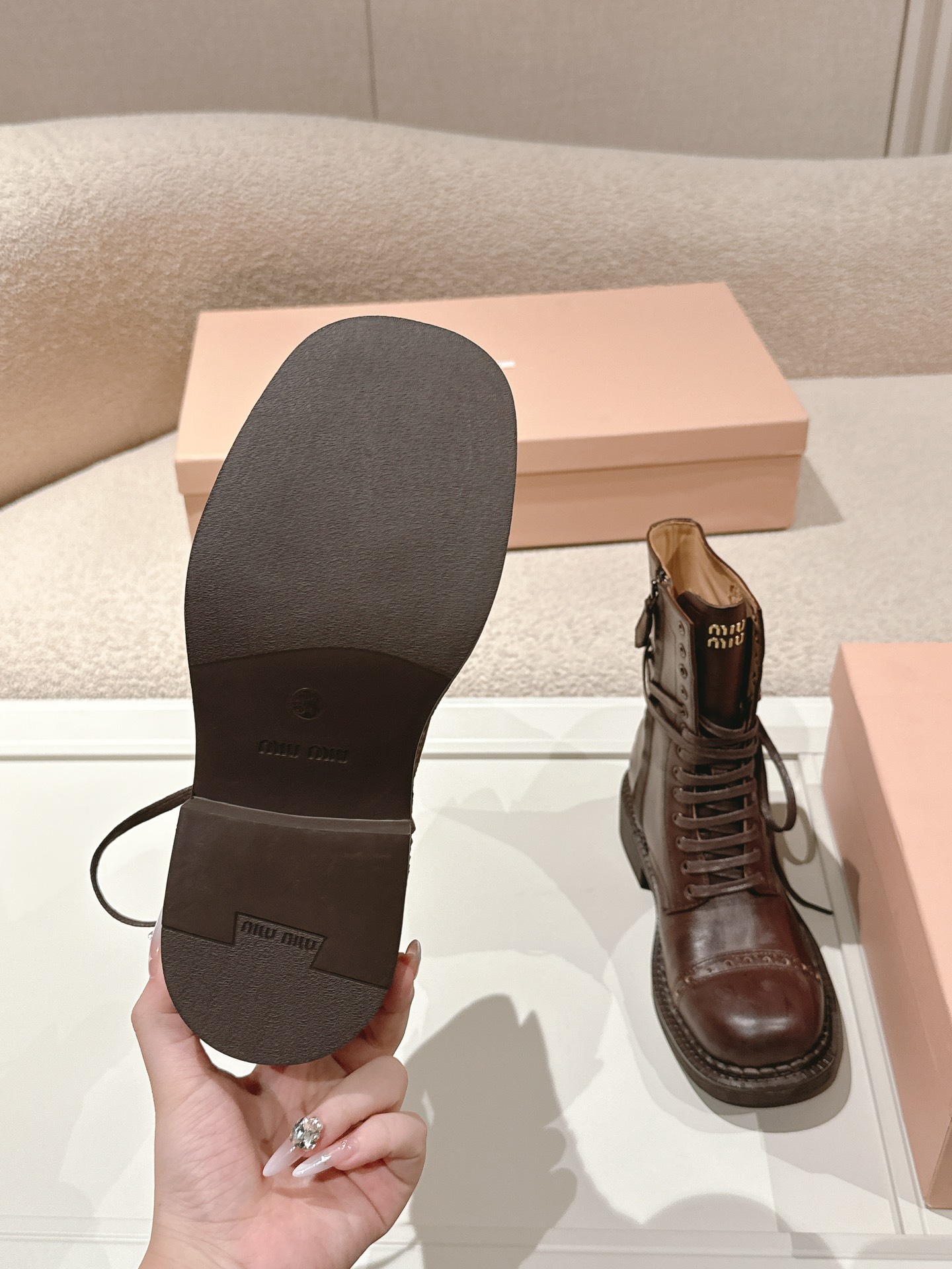 This shoes is AAAAA 1:1 quality (superb). Materials used are identical to the original ones. Miu Miu trademark marks are indistinguishable to the authentic. Photos take by actual shoes, what you receive will be 100% same with our photos.