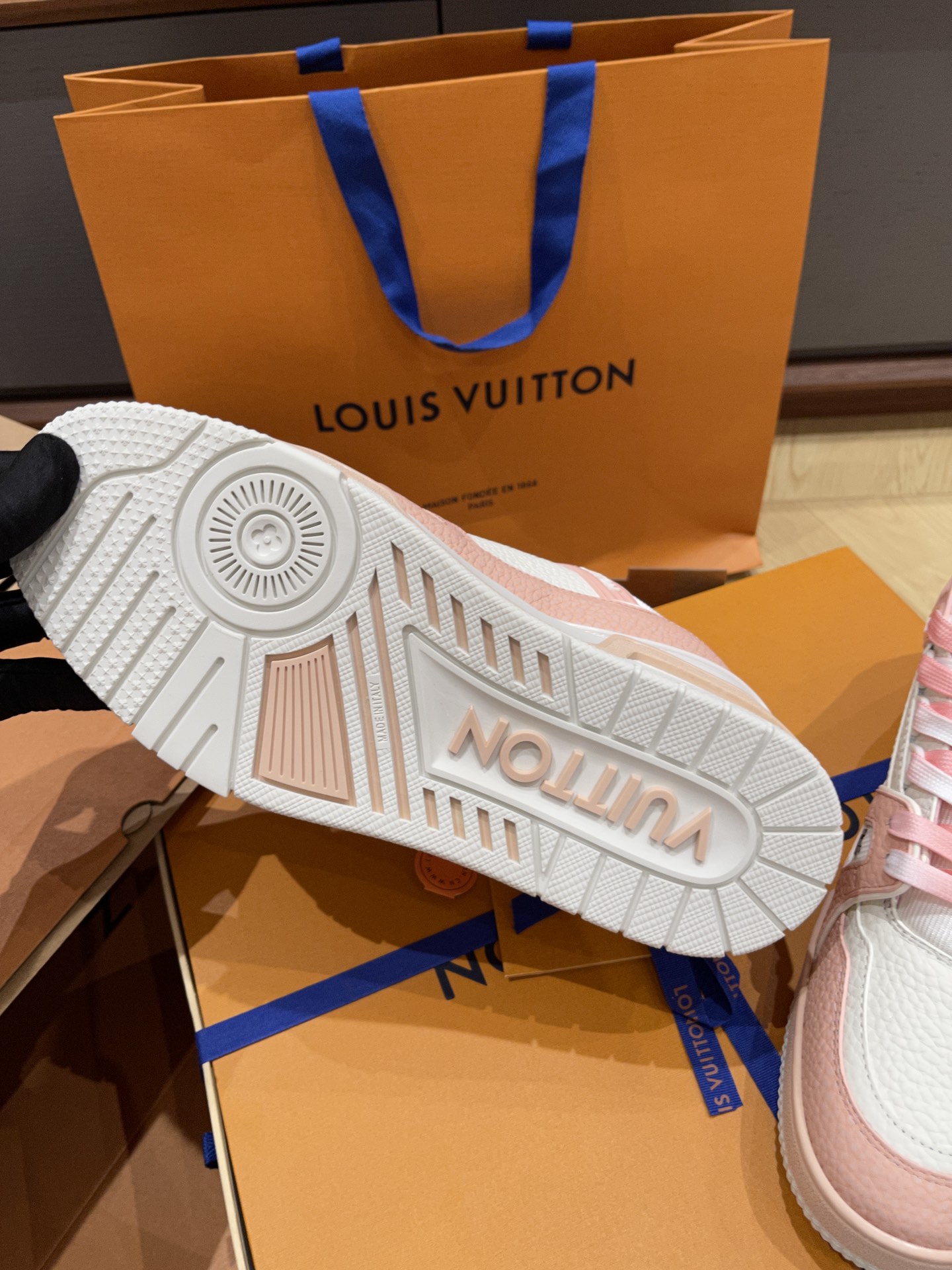This shoes is AAAAA 1:1 quality (superb). Materials used are identical to the original ones. Louis Vuitton trademark marks are indistinguishable to the authentic. Photos take by actual shoes, what you receive will be 100% same with our photos.