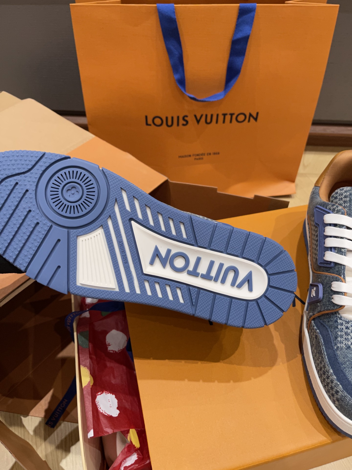 This shoes is AAAAA 1:1 quality (superb). Materials used are identical to the original ones. Louis Vuitton trademark marks are indistinguishable to the authentic. Photos take by actual shoes, what you receive will be 100% same with our photos.