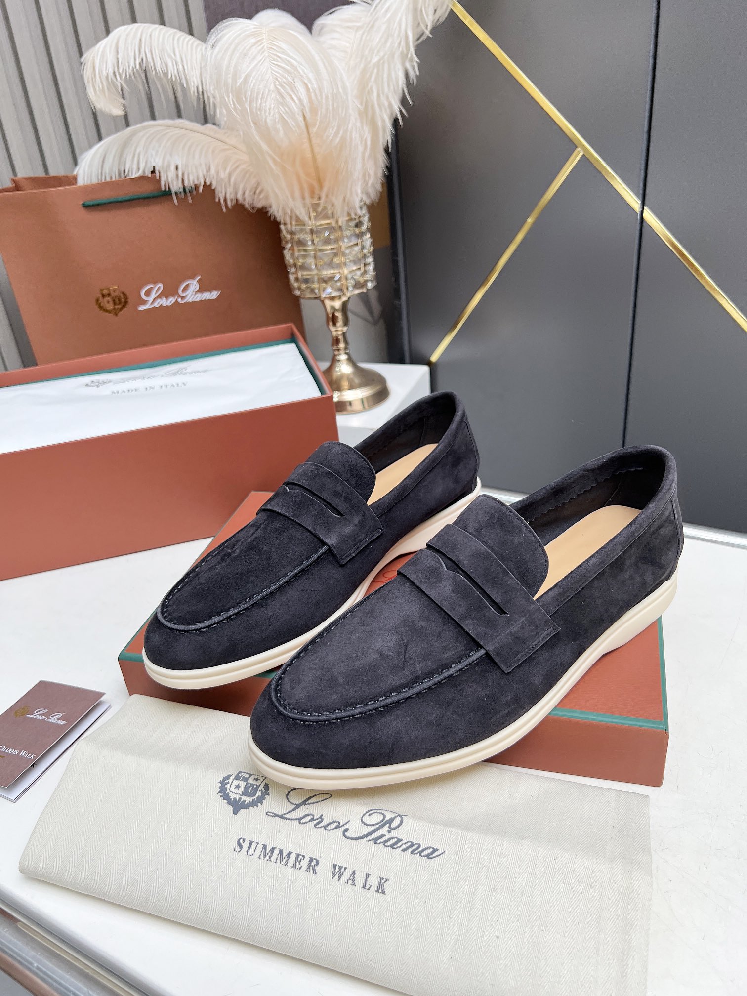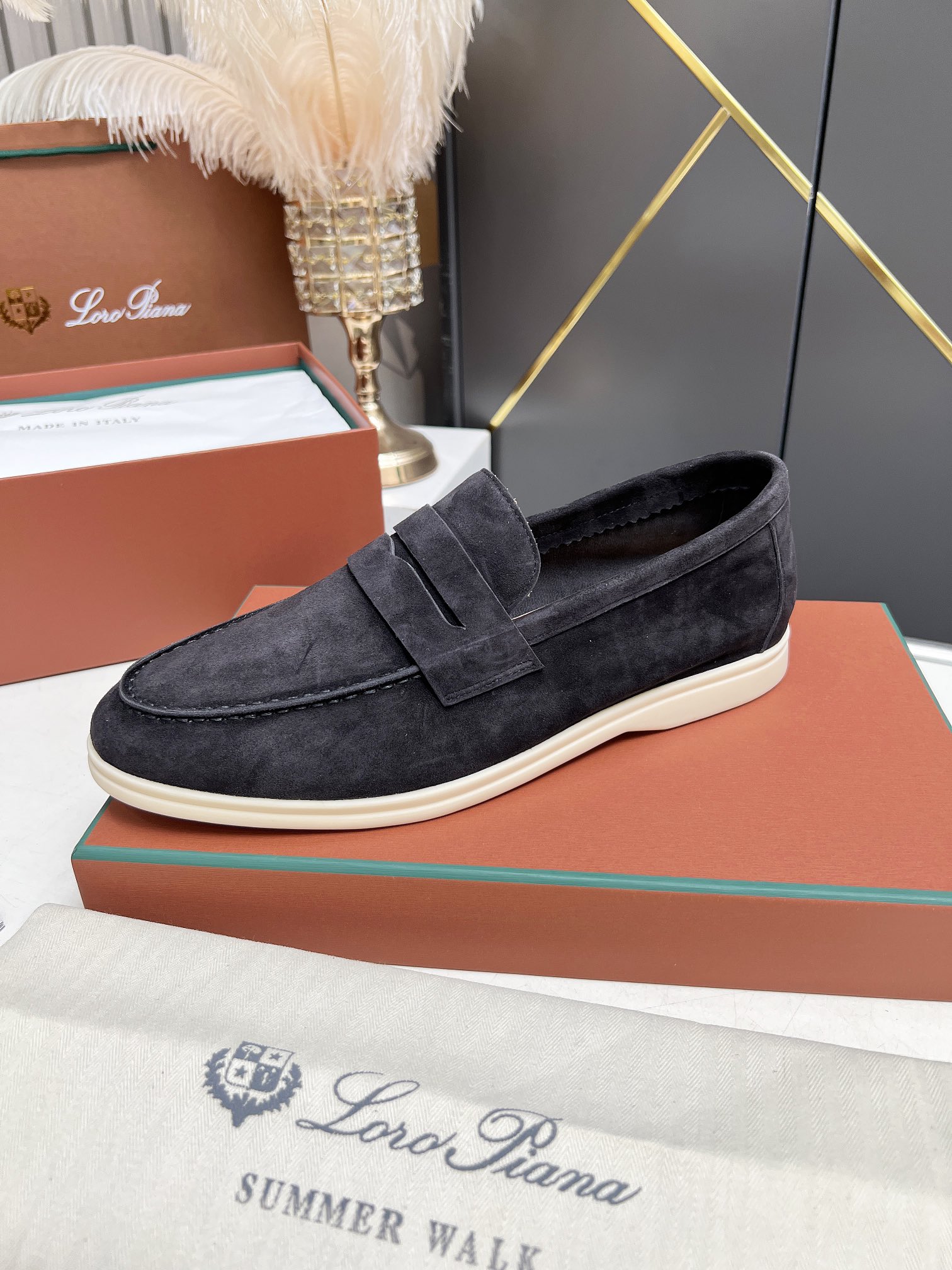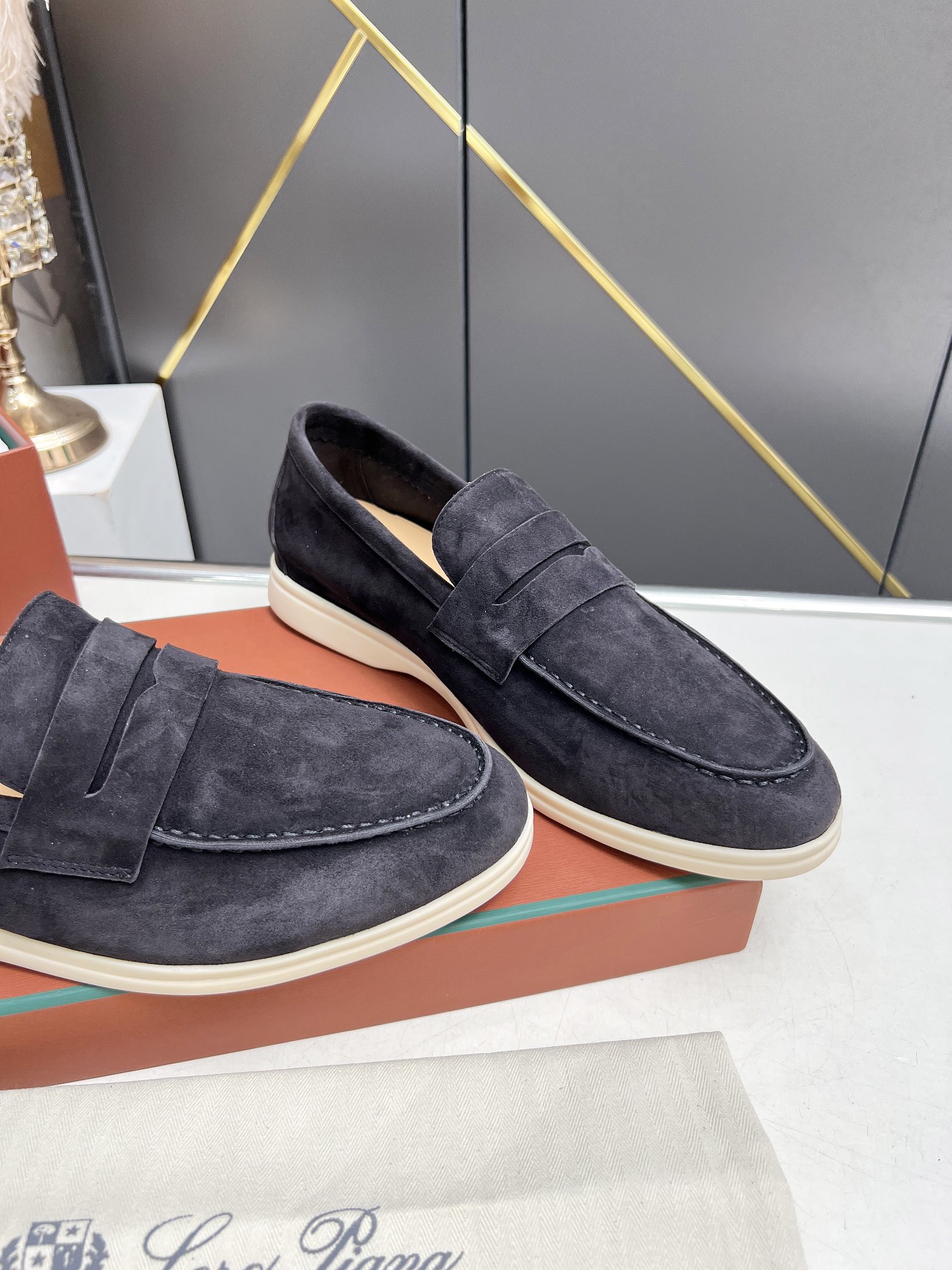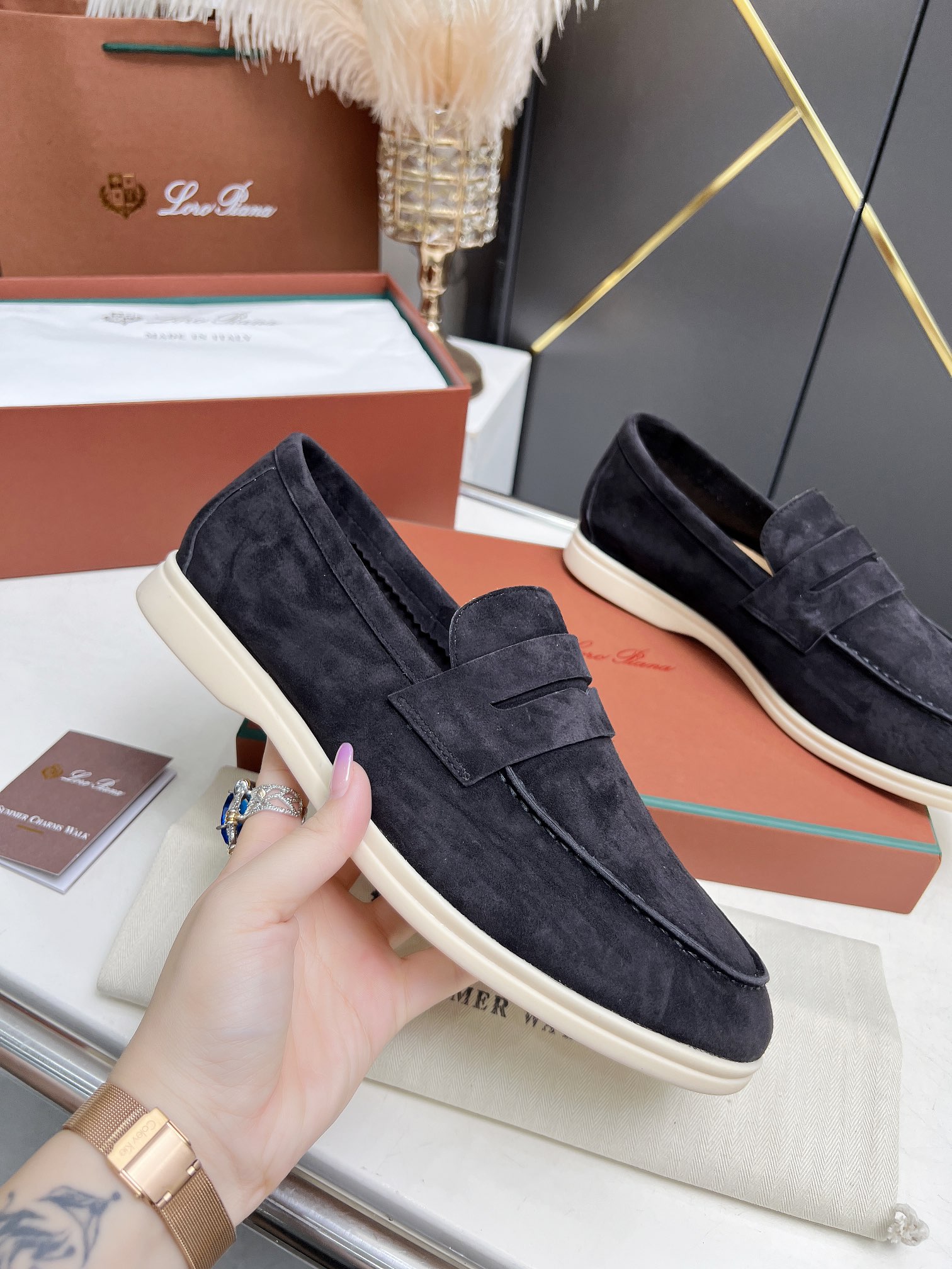 This shoes is AAAAA 1:1 quality (superb). Materials used are identical to the original ones. Loro Piana trademark marks are indistinguishable to the authentic. Photos take by actual shoes, what you receive will be 100% same with our photos.