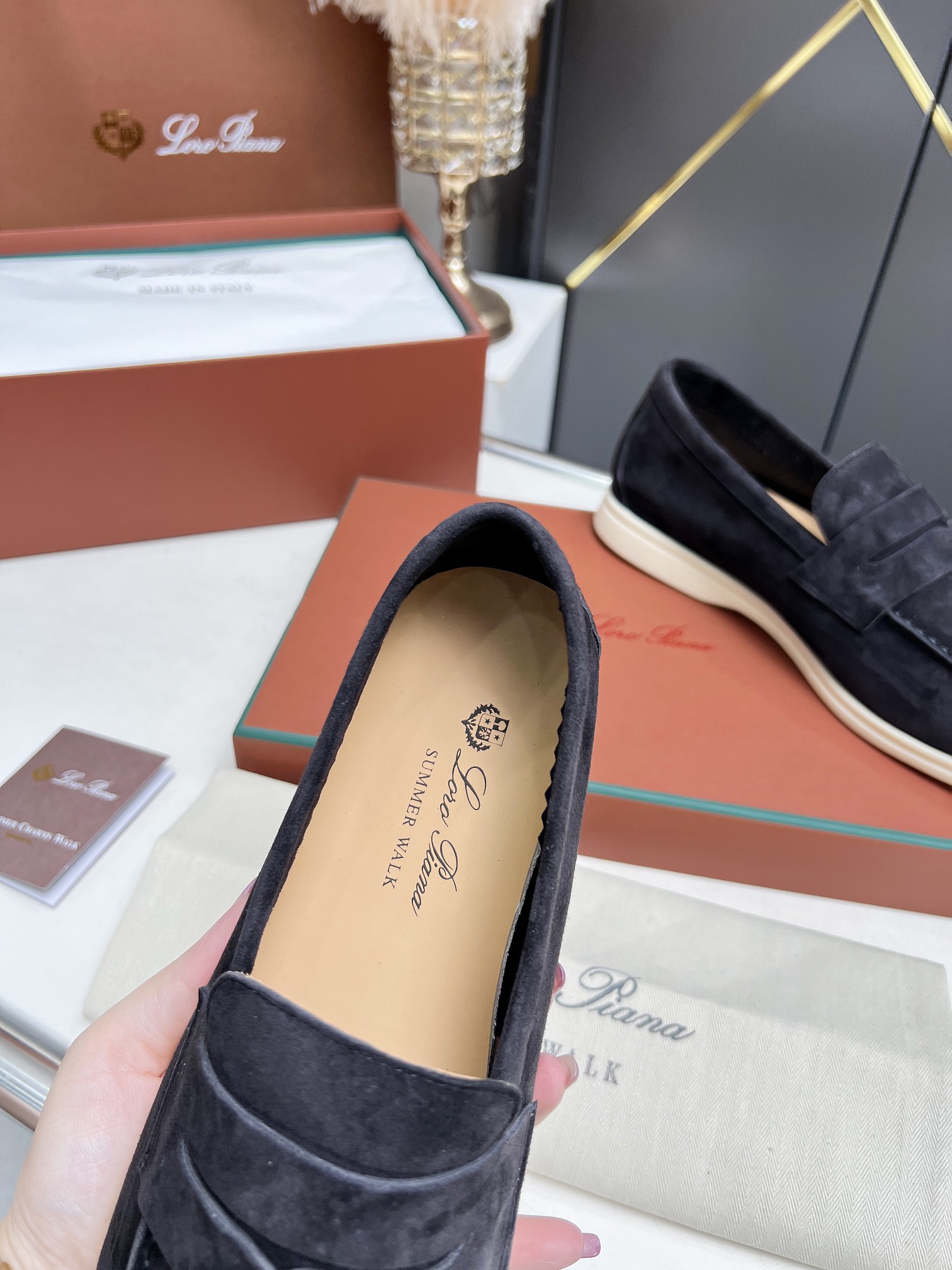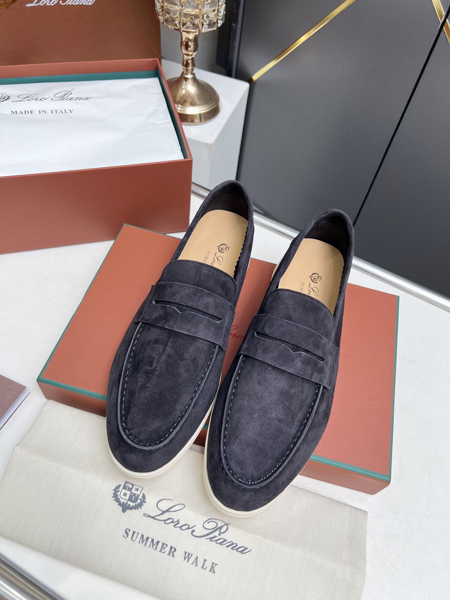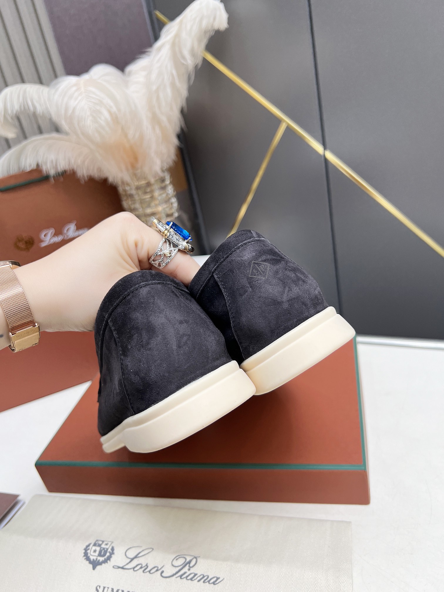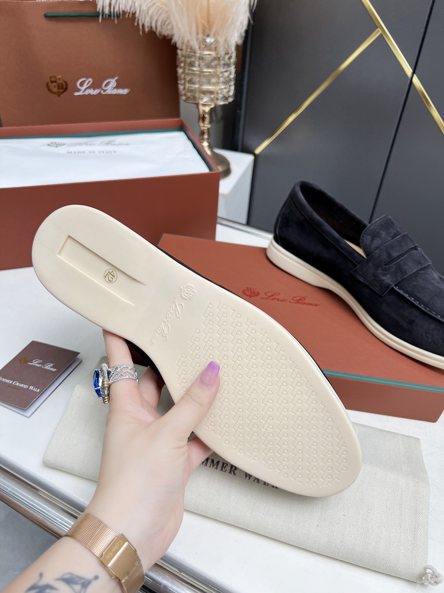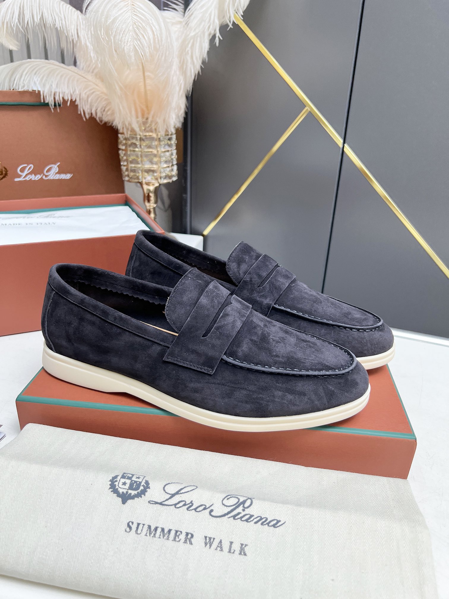 This shoes is AAAAA 1:1 quality (superb). Materials used are identical to the original ones. Loro Piana trademark marks are indistinguishable to the authentic. Photos take by actual shoes, what you receive will be 100% same with our photos.
