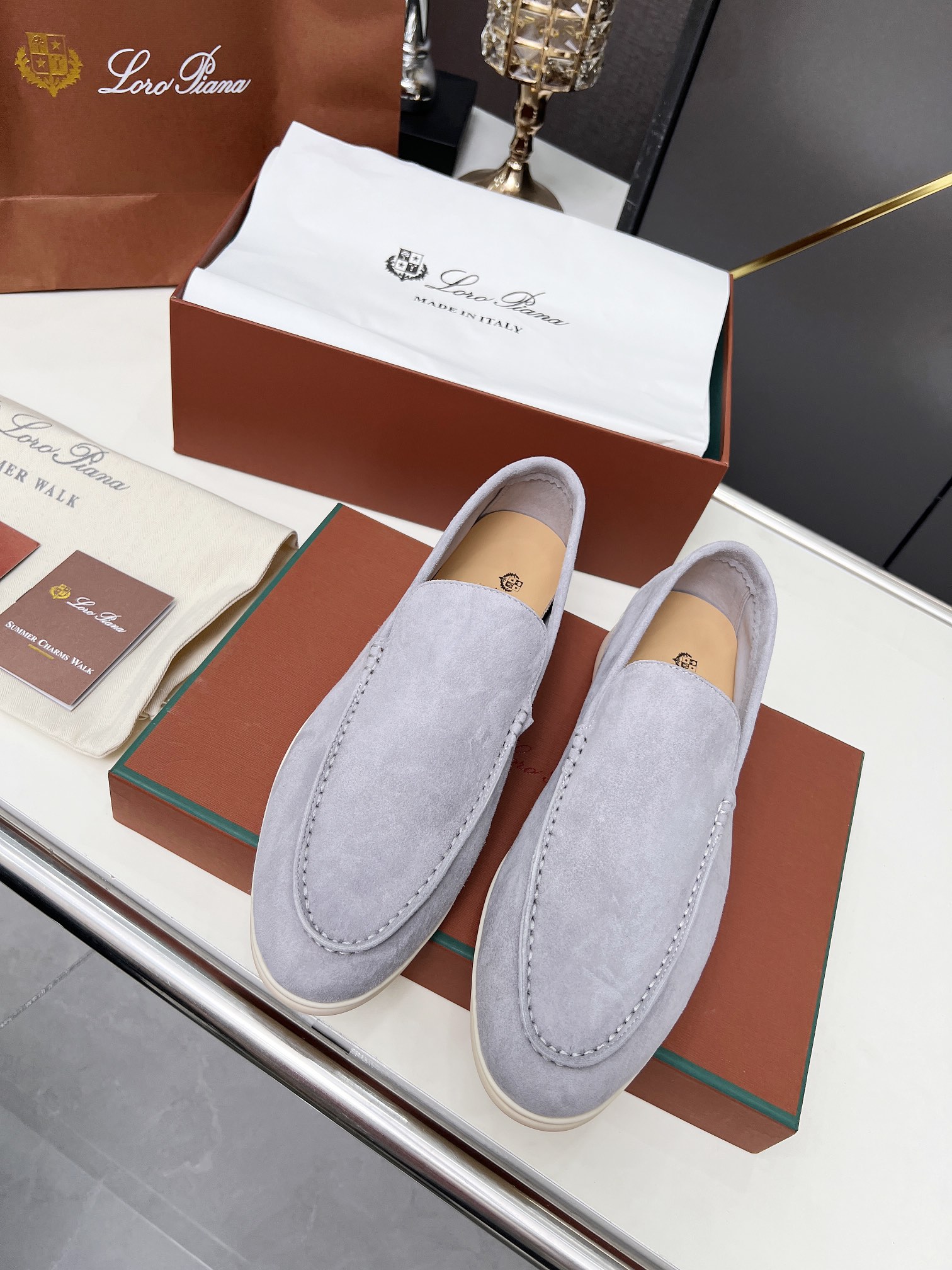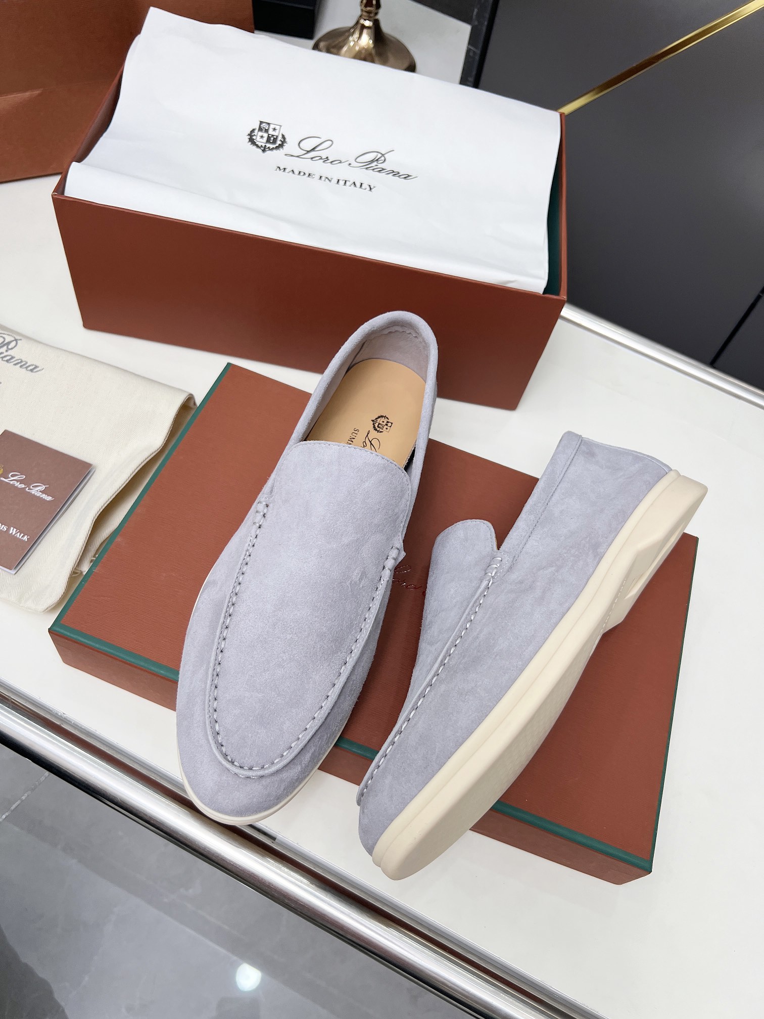 This shoes is AAAAA 1:1 quality (superb). Materials used are identical to the original ones. Loro Piana trademark marks are indistinguishable to the authentic. Photos take by actual shoes, what you receive will be 100% same with our photos.