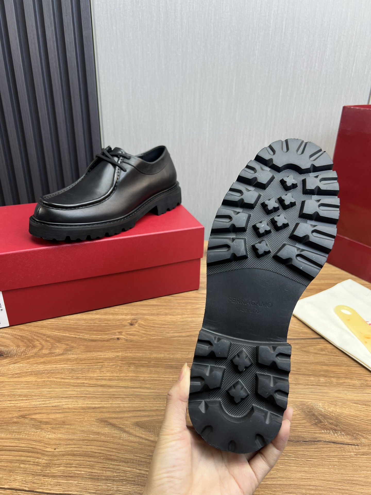 This shoes is AAAAA 1:1 quality (superb). Materials used are identical to the original ones. Salvatore Ferragamo trademark marks are indistinguishable to the authentic. Photos take by actual shoes, what you receive will be 100% same with our photos.