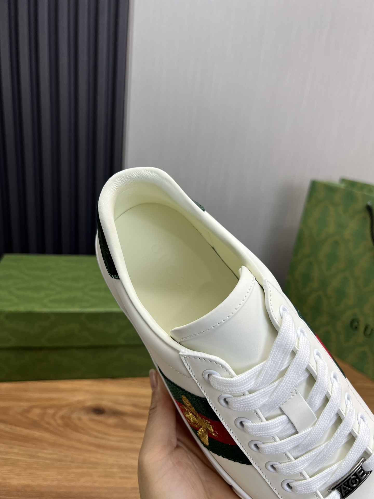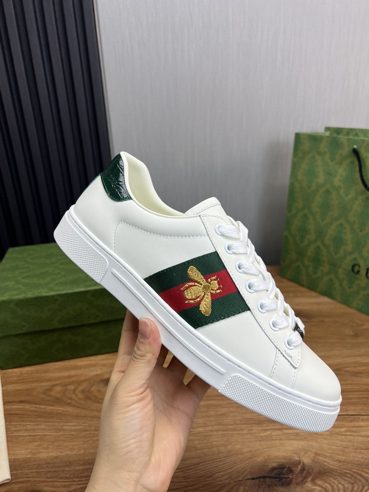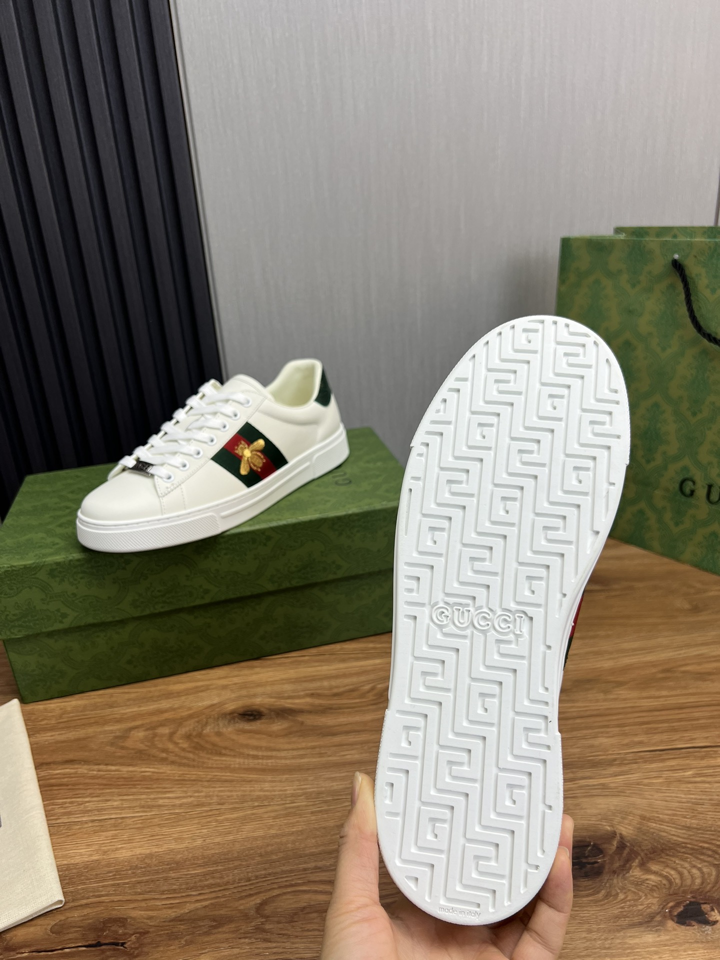 This shoes is AAAAA 1:1 quality (superb). Materials used are identical to the original ones. Gucci trademark marks are indistinguishable to the authentic. Photos take by actual shoes, what you receive will be 100% same with our photos.