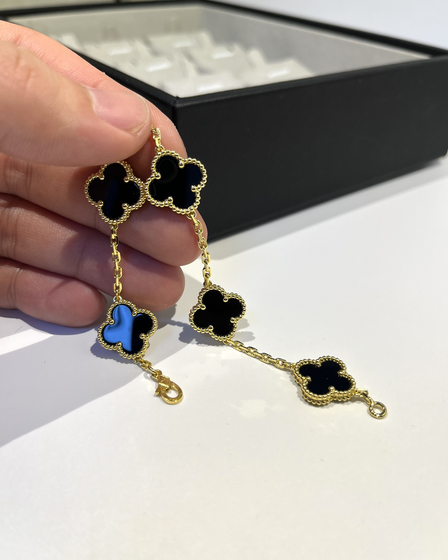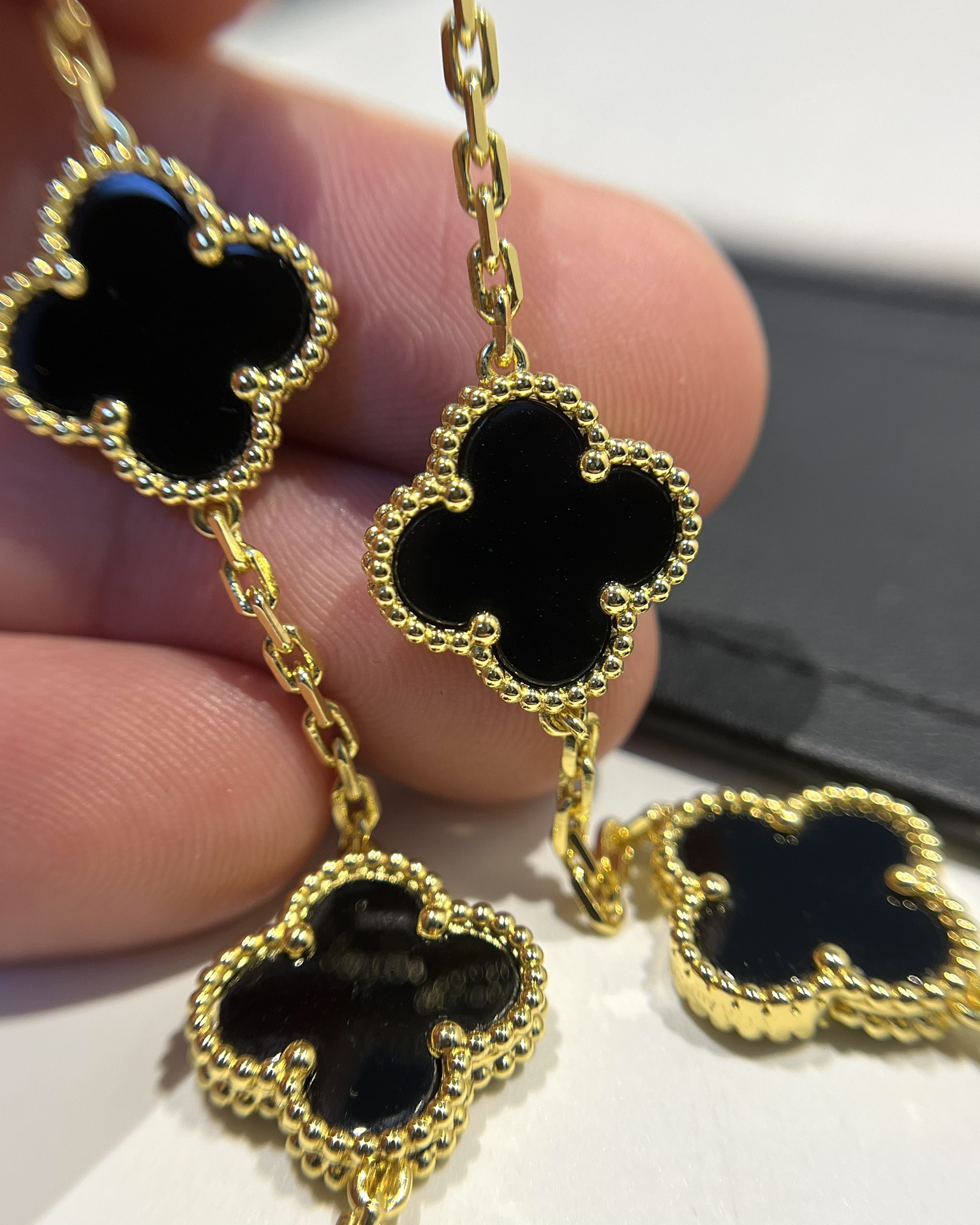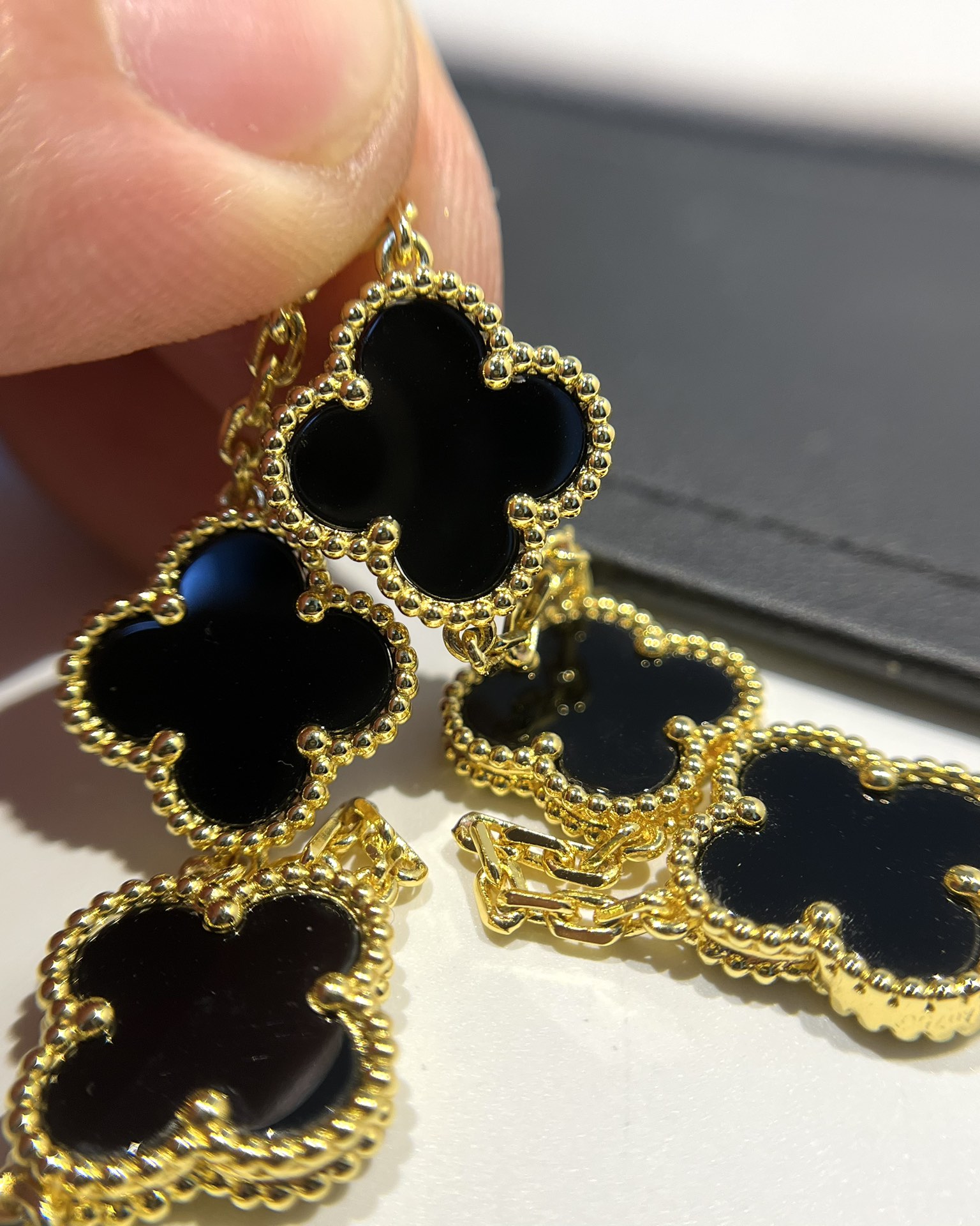 This jewelry is AAAAA 1:1 quality (superb). Materials used are identical to the original ones. Van Cleef & Arpels trademark marks are indistinguishable to the authentic. Photos take by actual jewelry, what you receive will be 100% same with our photos.