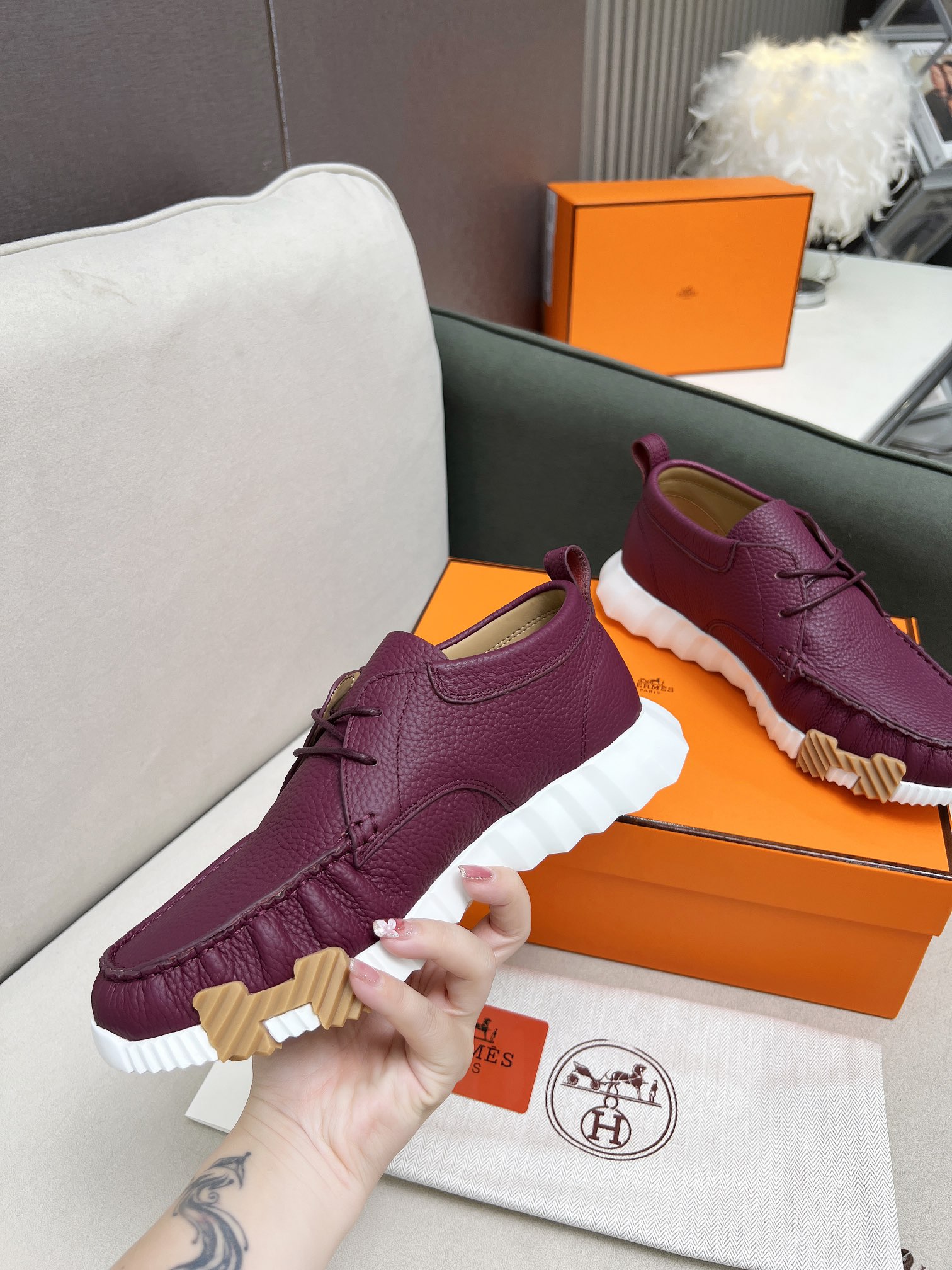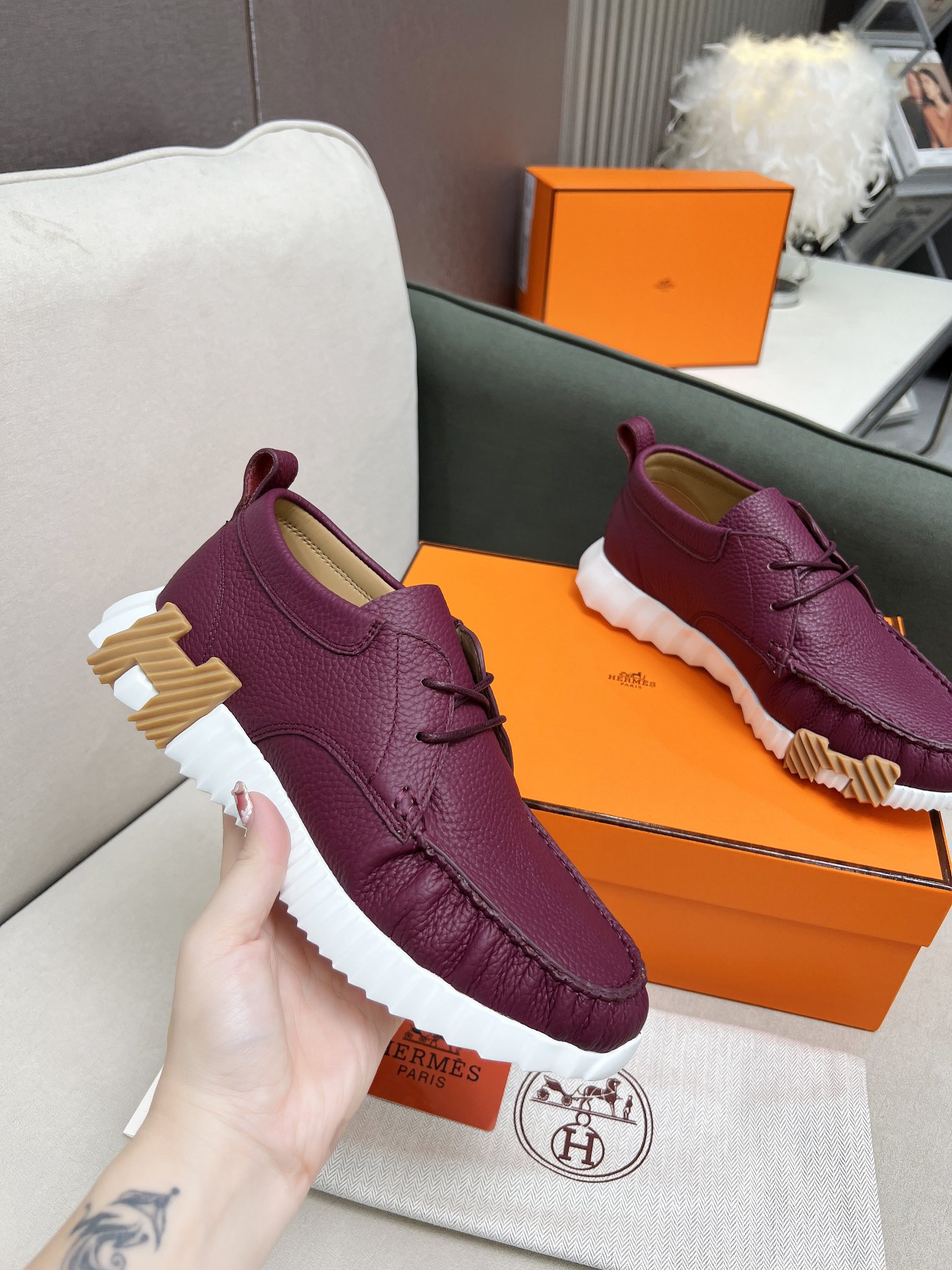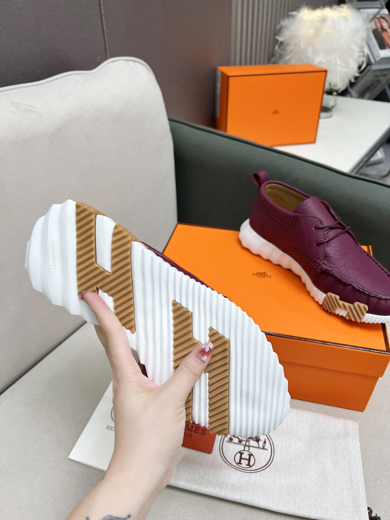 This shoes is AAAAA 1:1 quality (superb). Materials used are identical to the original ones. Hermes trademark marks are indistinguishable to the authentic. Photos take by actual shoes, what you receive will be 100% same with our photos.